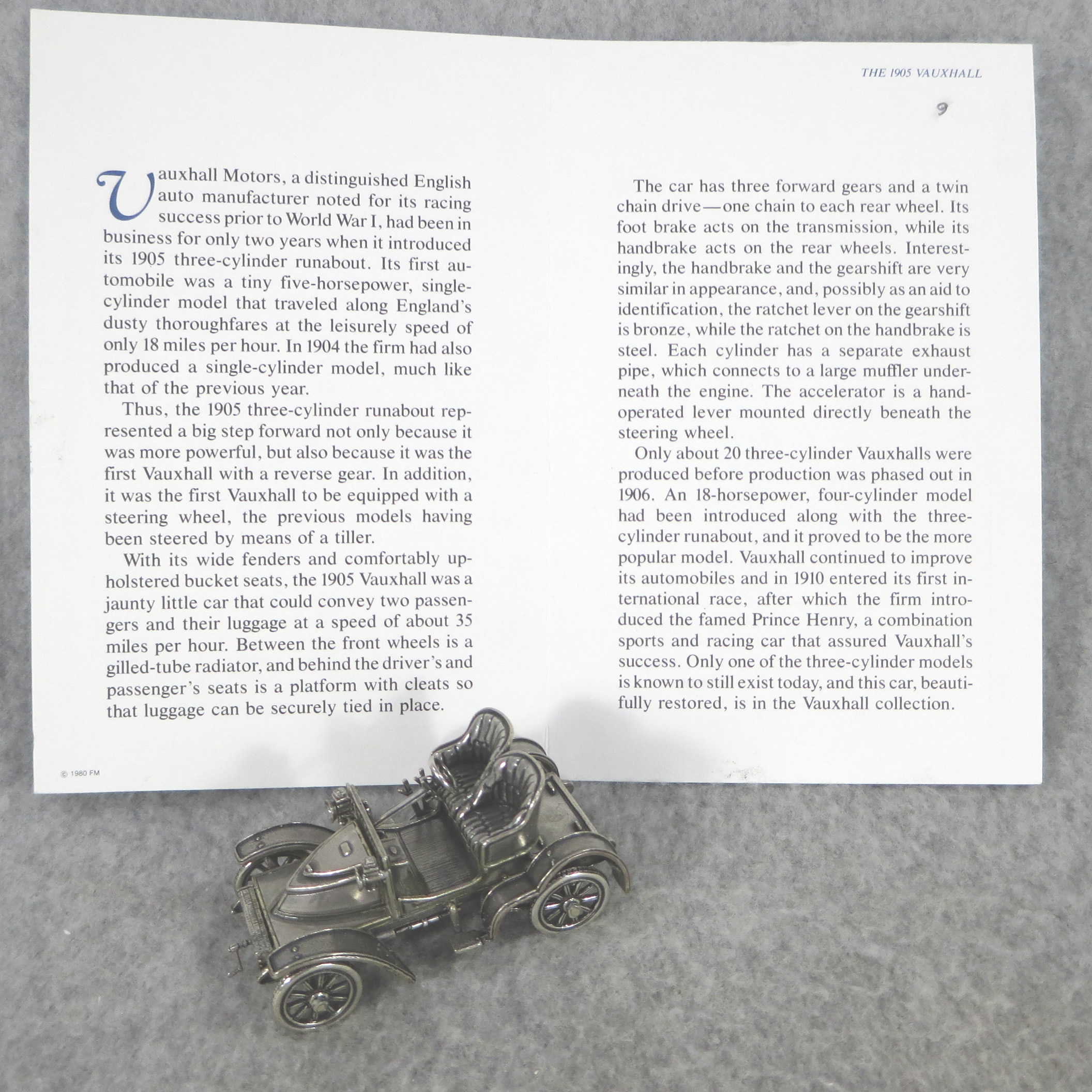 1977 Franklin Mint 1905 Vauxhall Sterling Silver Miniature Car Replica