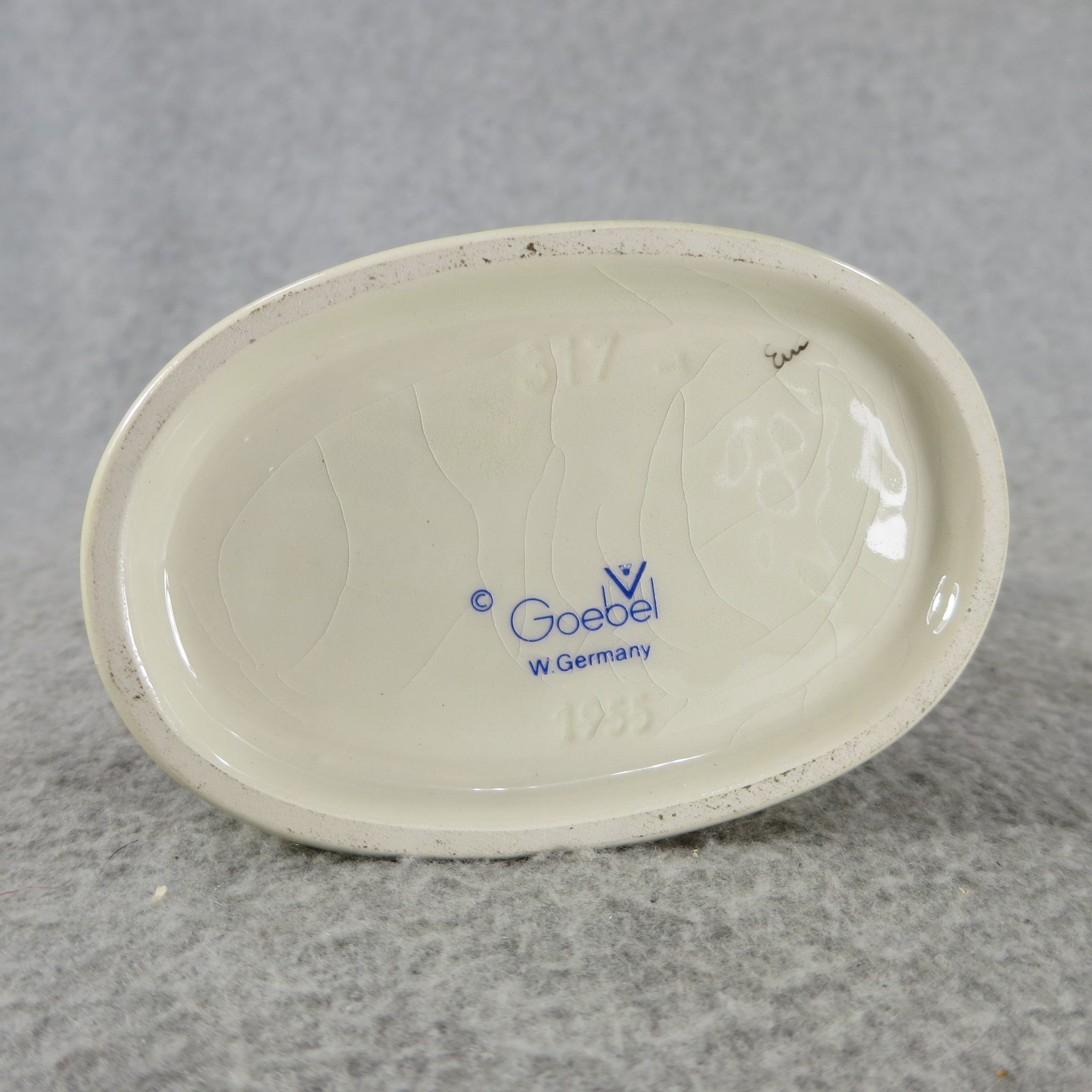 February 03, 2026 - 5-3/4 inches tall. Base is incised 317 and 1955. Goebel TMK 5 trademark imprinted in blue on bottom of base. Painter hand-initialed in black ink on bottom of base.