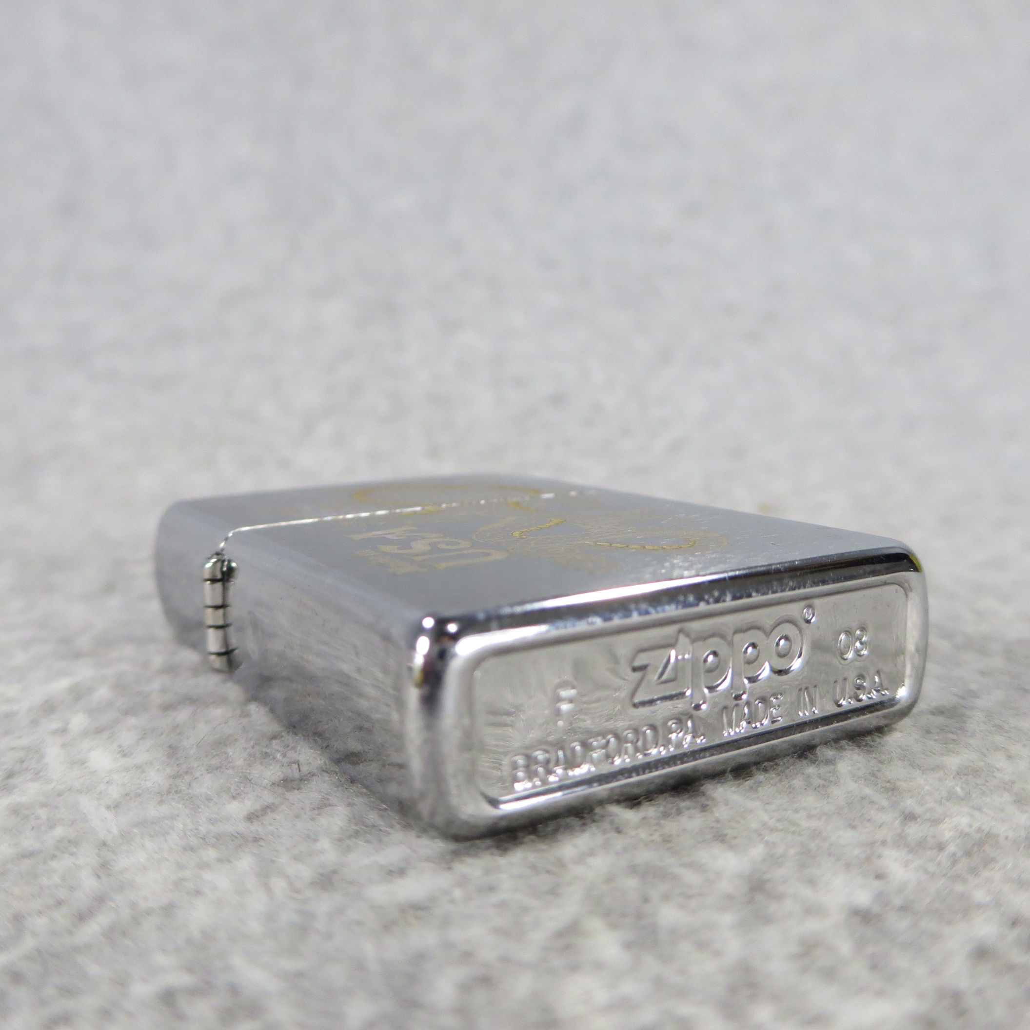 October 28, 2025 - ZIPPO Chinese Dragon Lighter circa 2008. #6336. Brushed Chrome finish over Brass. Standard size 1-7/16 inches wide by 2-1/4 inches high. Bottom of lighter reads: Zippo F 08 Bradford, PA. Made in U.S.A.