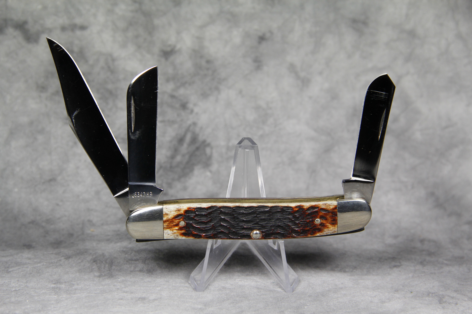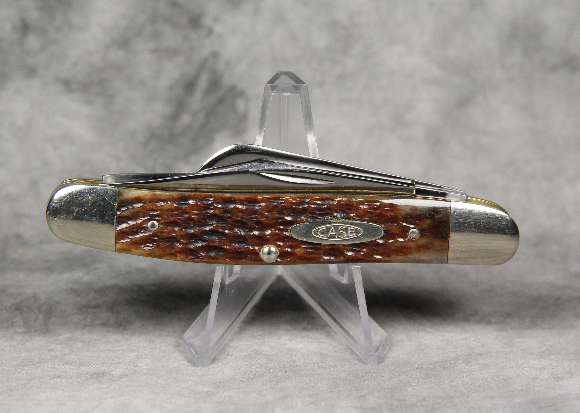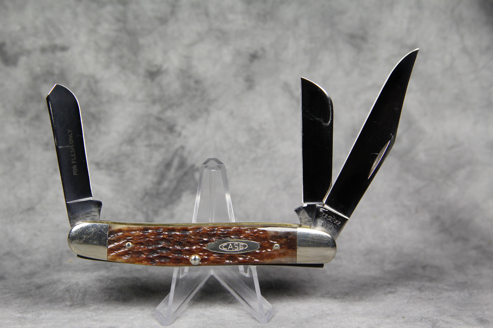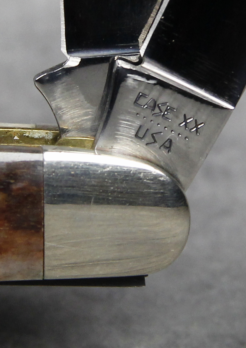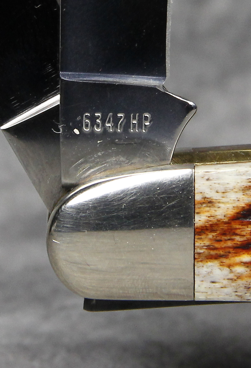 December 04, 2025 - 3-7/8 inches closed. 6-3/4 inches open. Made in USA. "CASE XX  ********  USA" (8 dot with lightning bolt S) and "6347 HP" tang stamps. Double Oval 'Open C' Case shield. Chrome Vanadium blades. Jigged Bone handle. Nickel Silver bolsters. Brass liner.