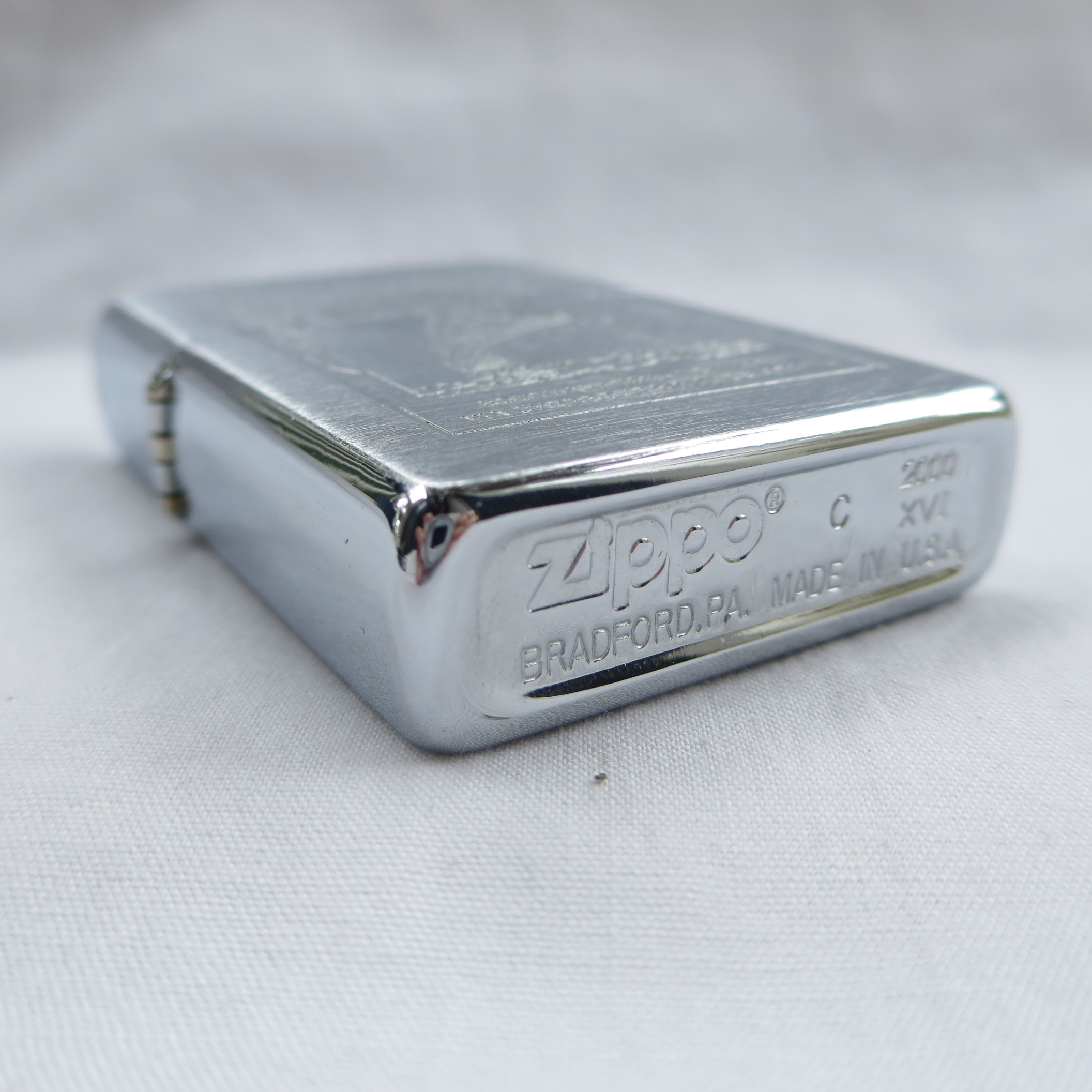 February 03, 2026 - ZIPPO Titanic White Star Line Lighter circa 2000. Brushed Chrome over Brass. Standard size 1-7/16 inches wide by 2-1/4 inches high. Bottom of lighter reads: Zippo C 2000 XVI Bradford, PA. Made in U.S.A.