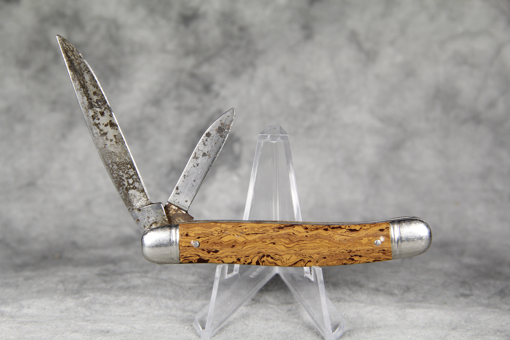 You have: 1956-1988 IMPERIAL Chocolate Swirl Diamond Edge Serpentine Jack Knife