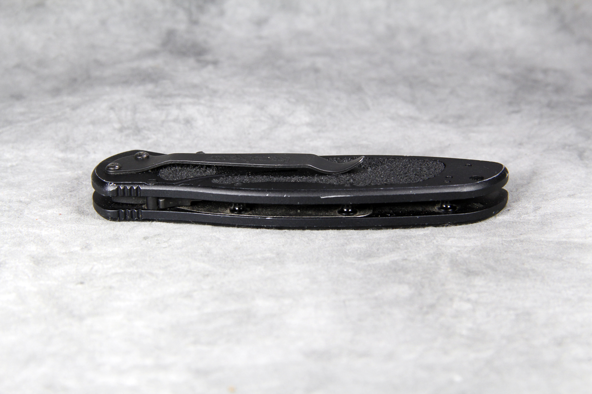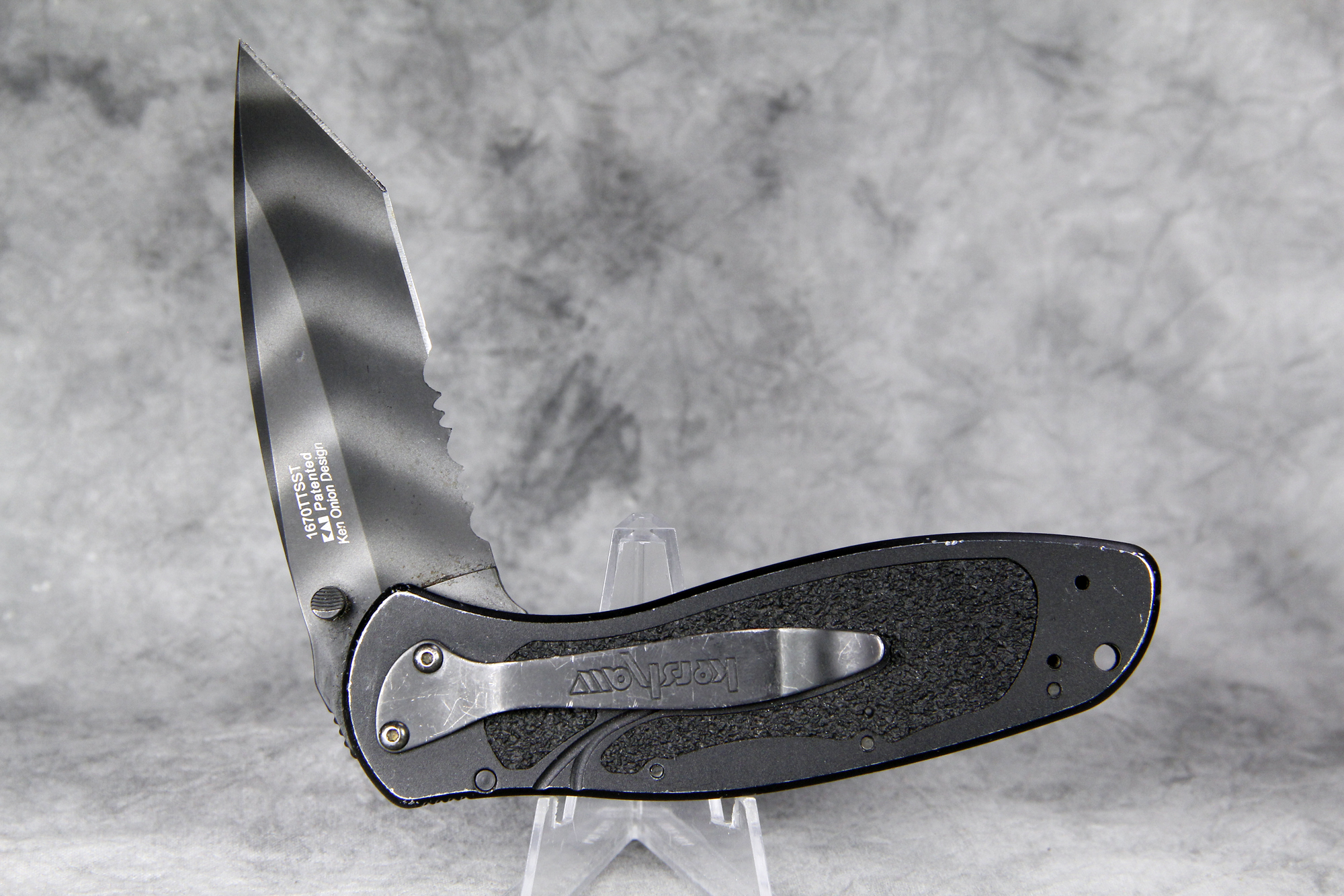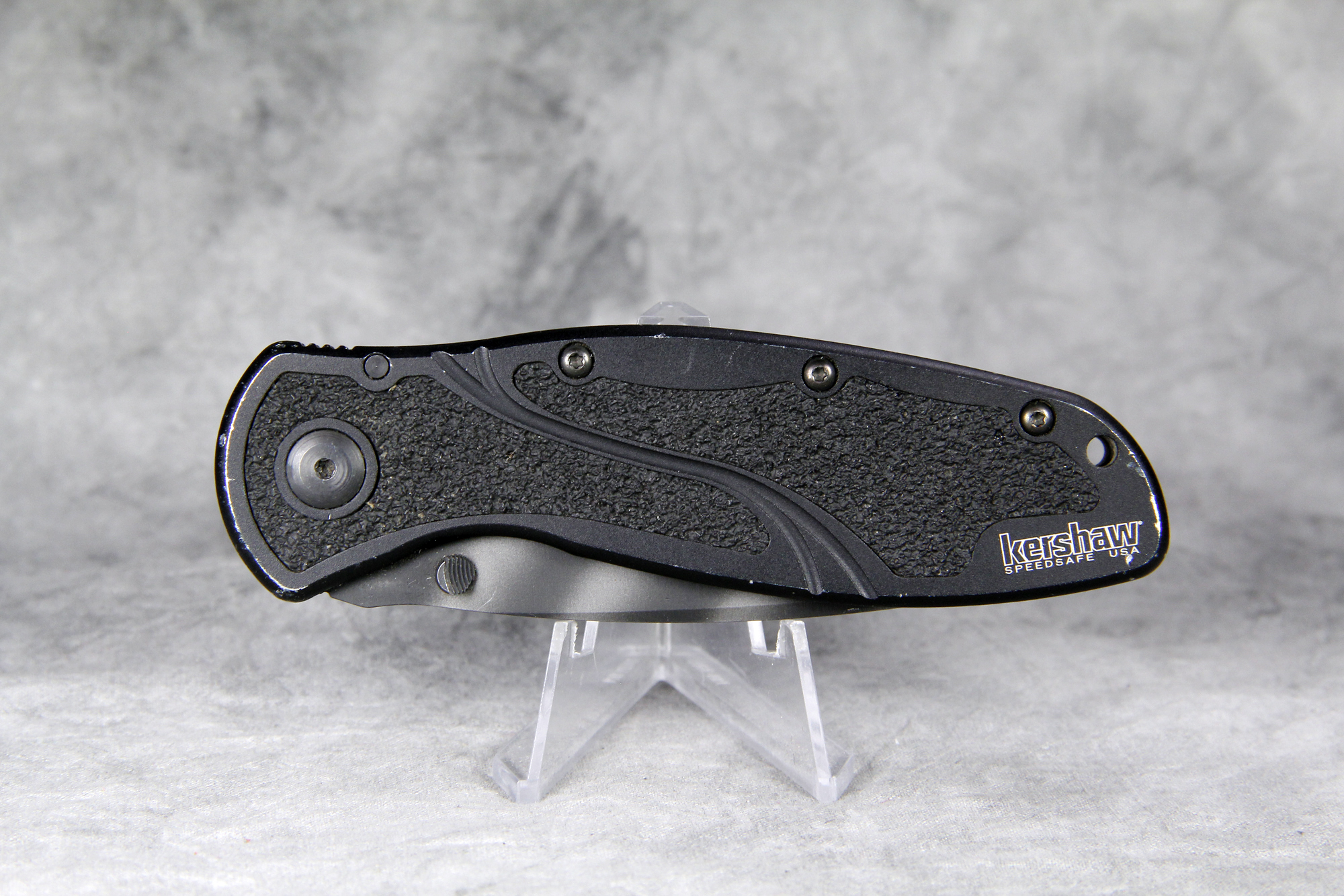 March 15, 2026 - Designed by Ken Onion. Made in USA. 4-1/2 inches closed. 7-3/4 inches open. Handle etched "kershaw SPEEDSAFE USA". Black finish stainless steel clip deep etched "kershaw". Black finish 420 stainless steel frames with Trac-Tec inserts for an all-weather grip. Black finish stainless steel blade etched "1670TTSST KAI Patented Ken Onion Design". Ambidextrous thumb studs for one-handed opening.