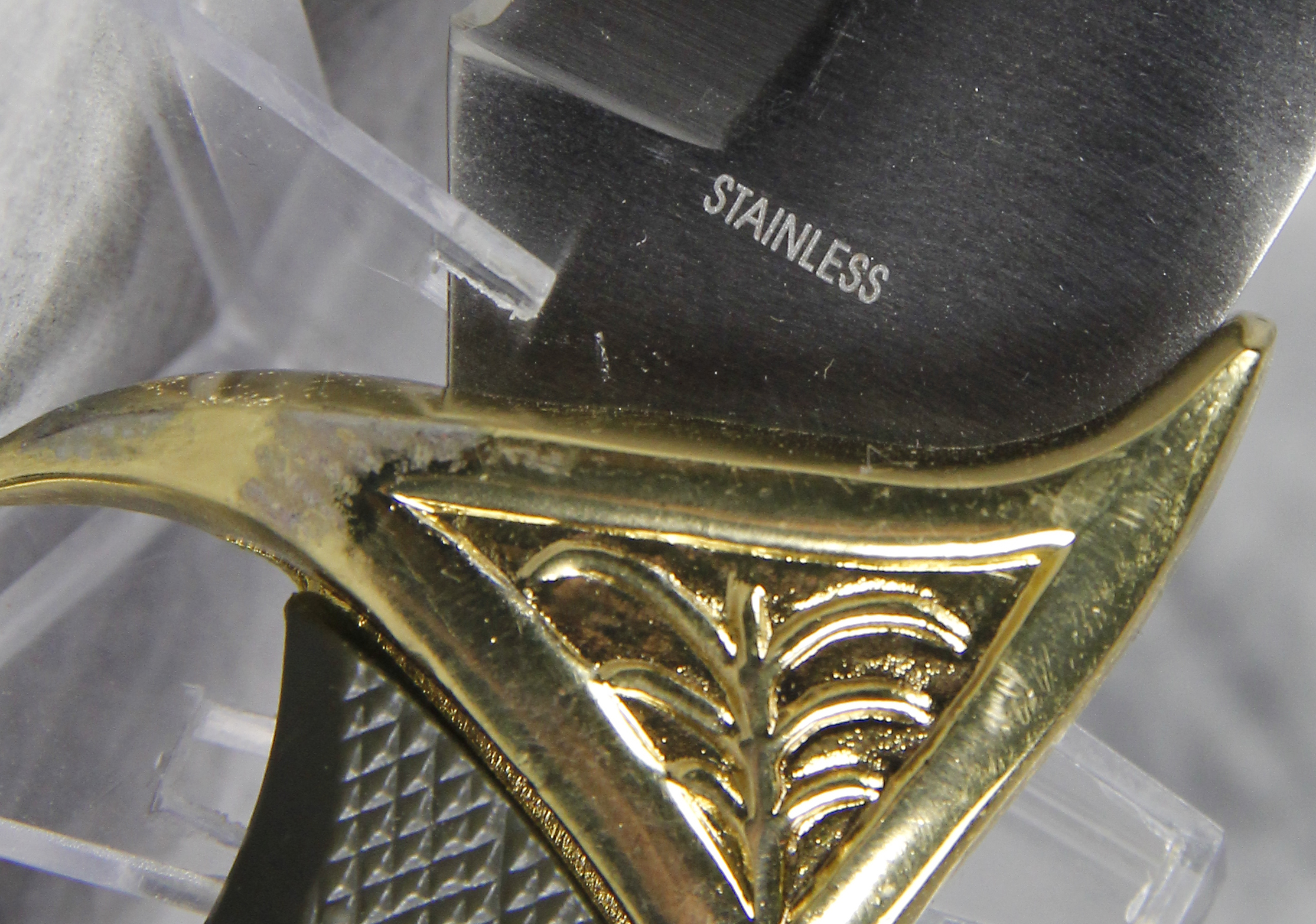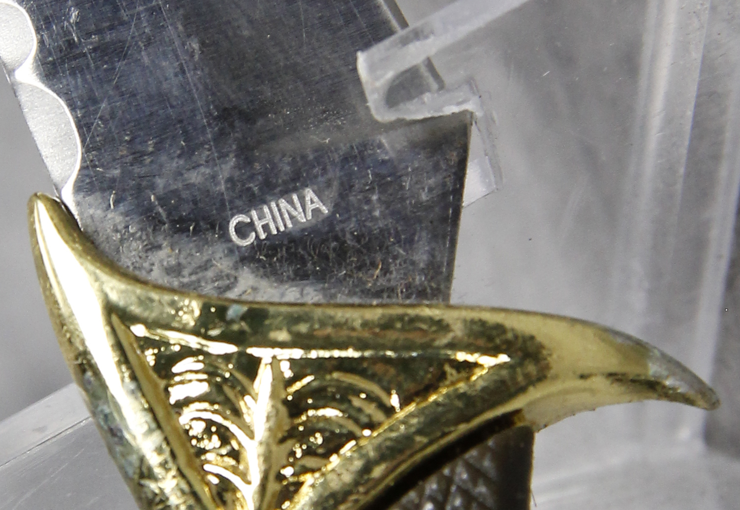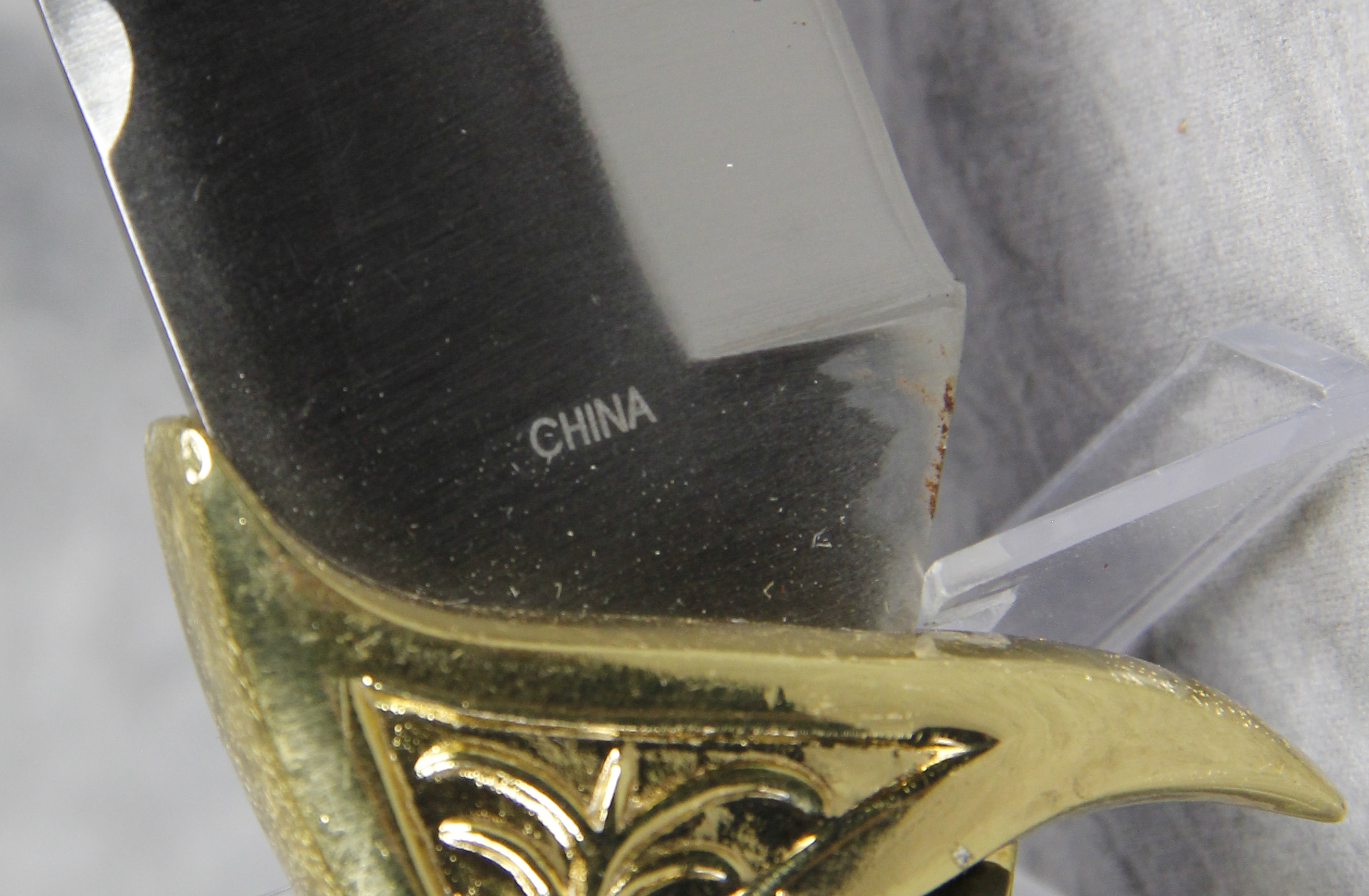 March 15, 2026 - Set of 2 Fixed Blade Hunting Knives. 11-1/2 inches long and 6-1/4 inches long. Made in China. Stainless steel blades both etched with images of Elk. "CHINA" and "STAINLESS" tang stamps. Black rubber handles. With original box and rubber-lined black nylon sheath.