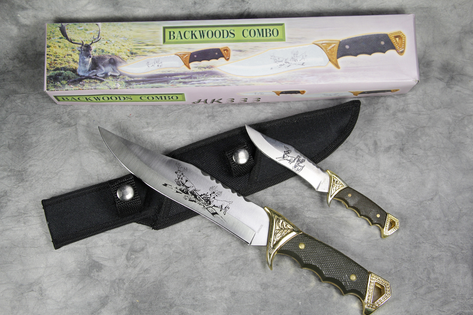 BACKWOODS COMBO HK333 2-Piece Bowie Knife Set with Sheath