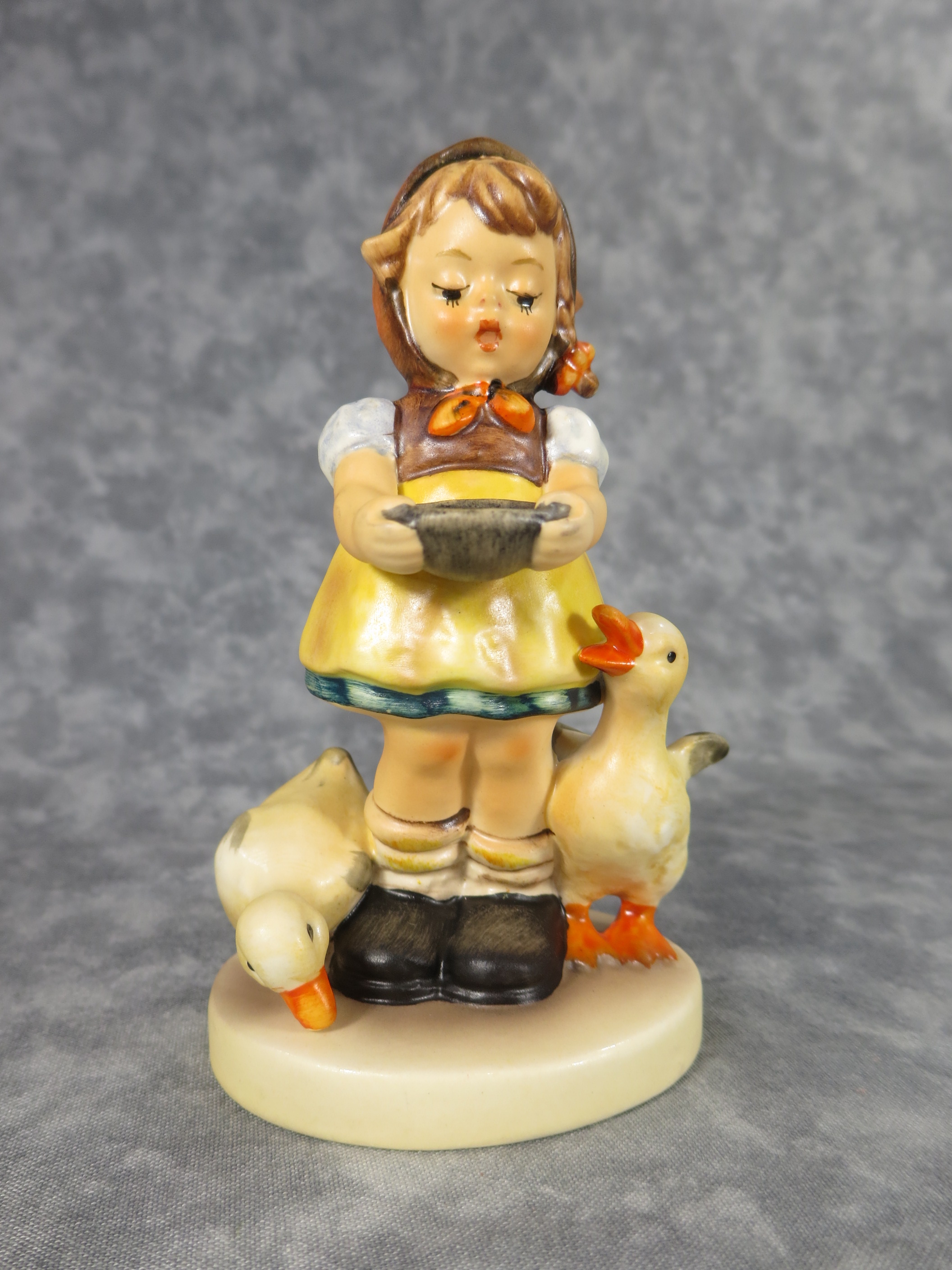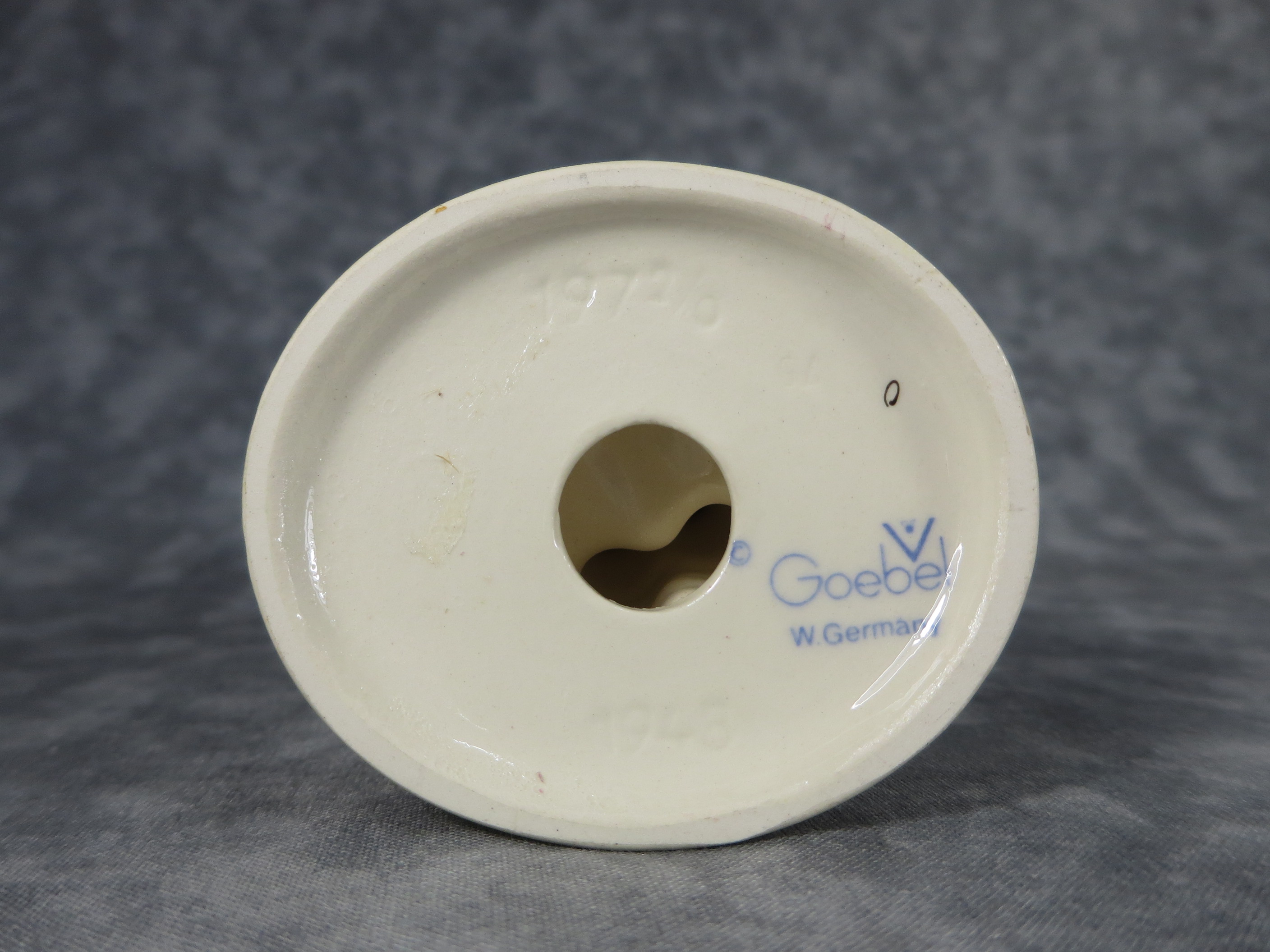 February 03, 2026 - 4-1/2 inches tall. Base is incised 197 2/0 and 1948. Goebel TMK 5 trademark imprinted in blue on bottom of base. Painter hand-initialed in black ink on bottom of base.