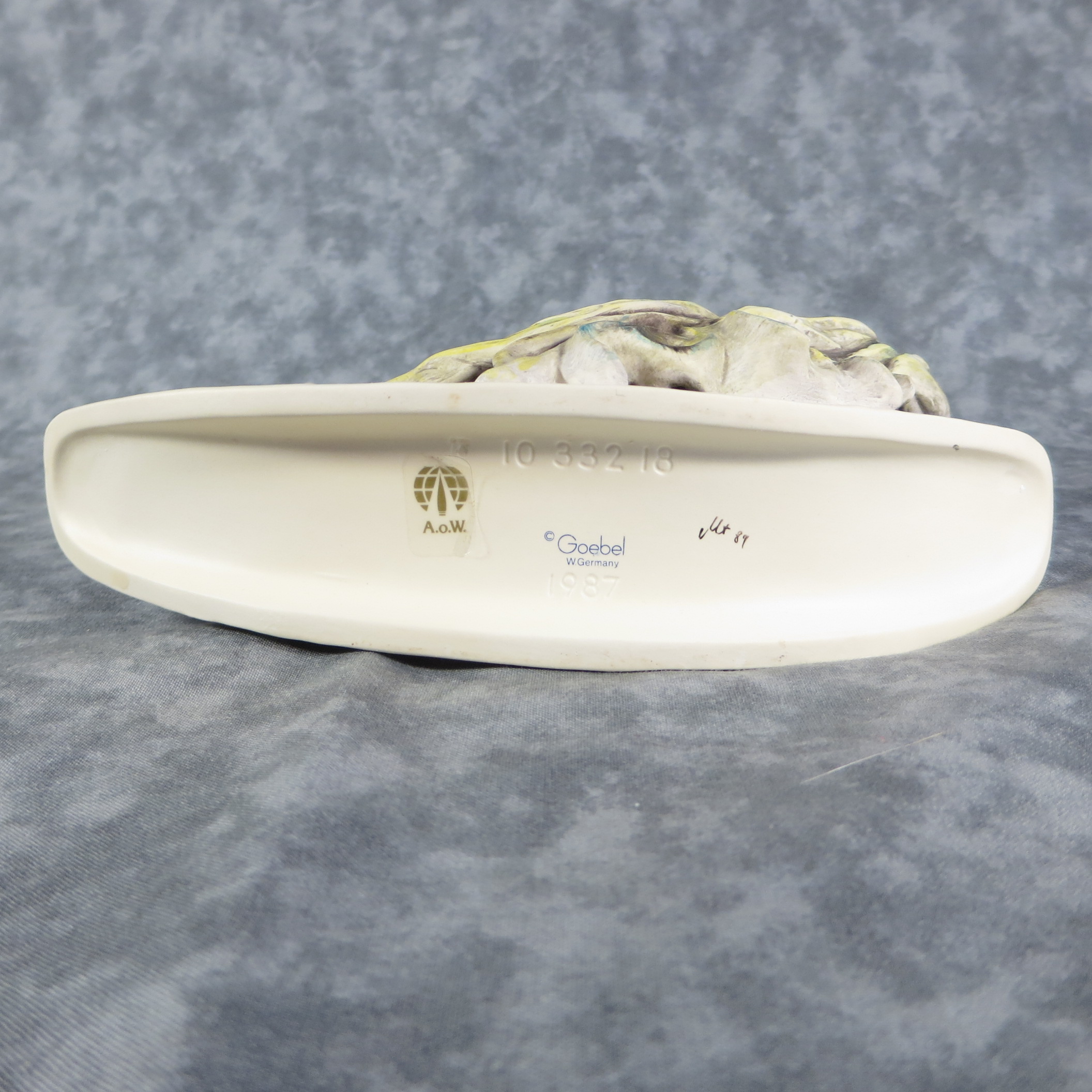 February 03, 2026 - 7-1/2 inches tall, 8 inches wide. Base is incised 10 332 18 and 1987. Goebel TMK 6 trademark imprinted in blue on bottom. Painter hand-initialed and dated in black ink on bottom.