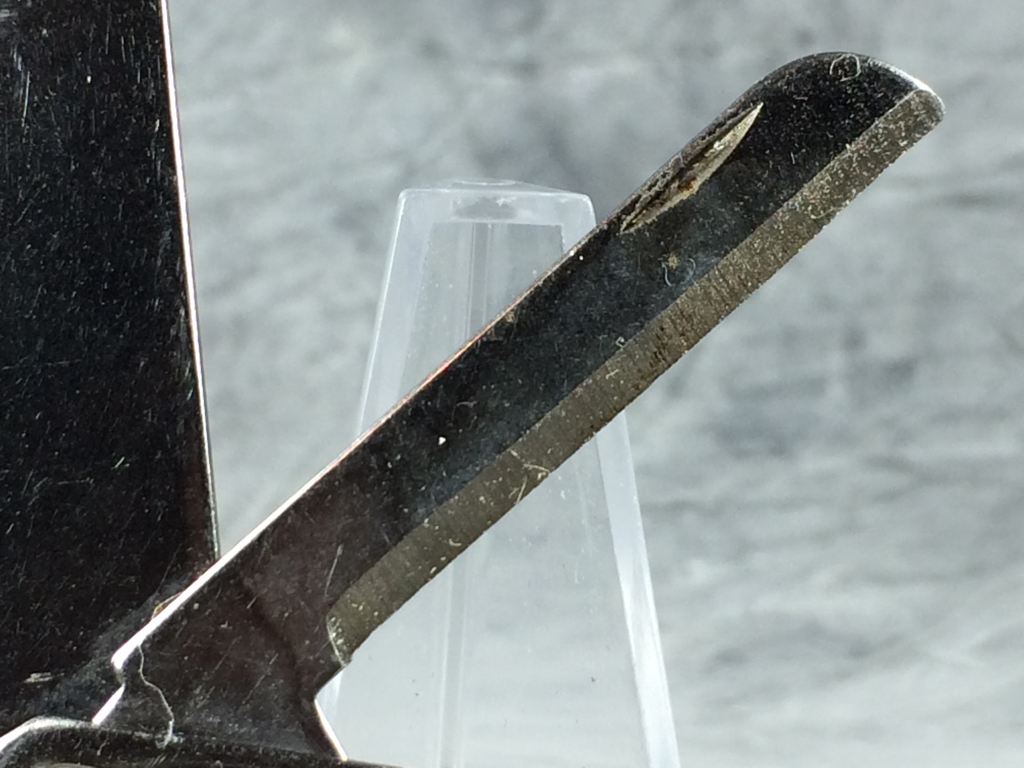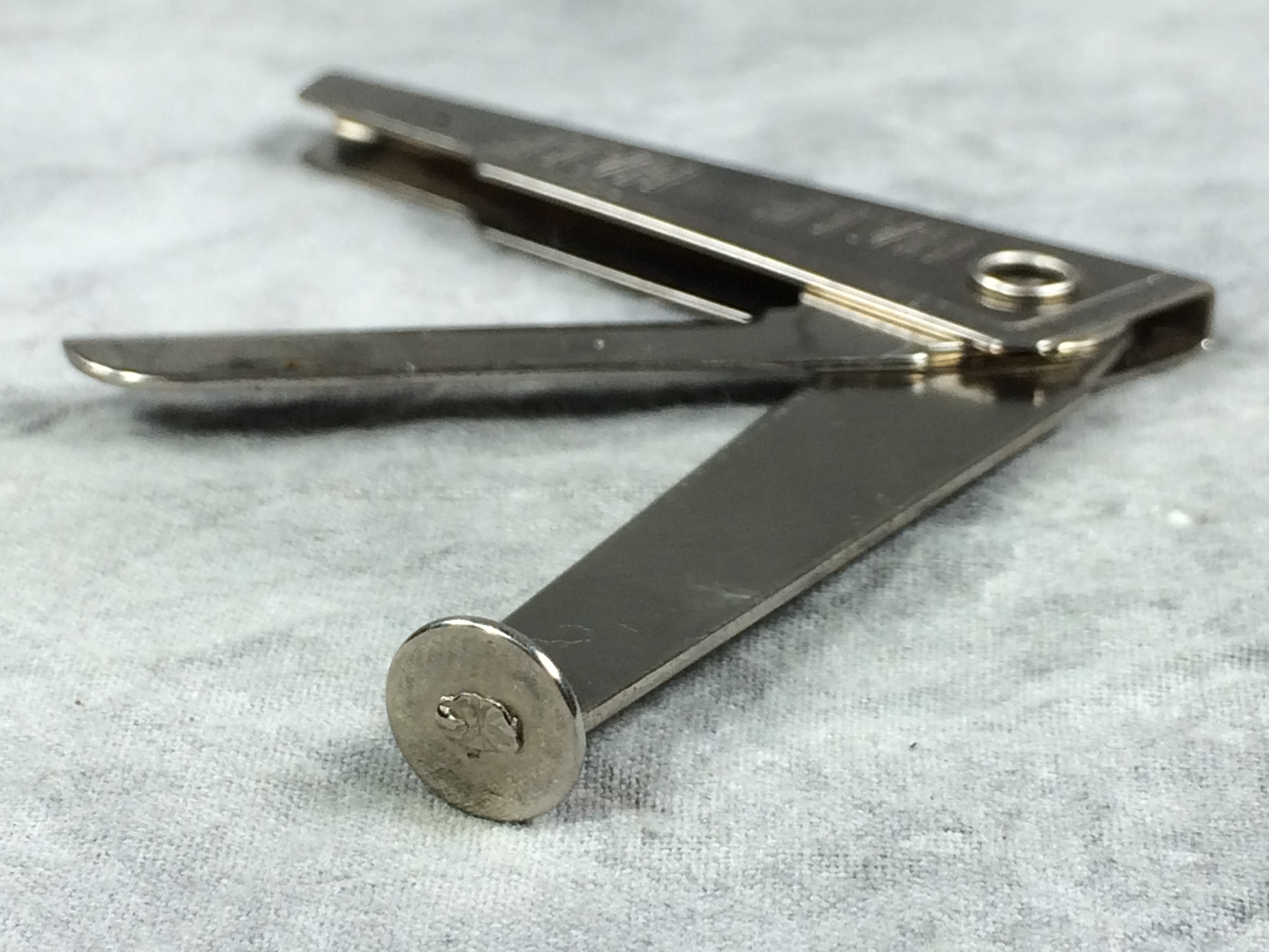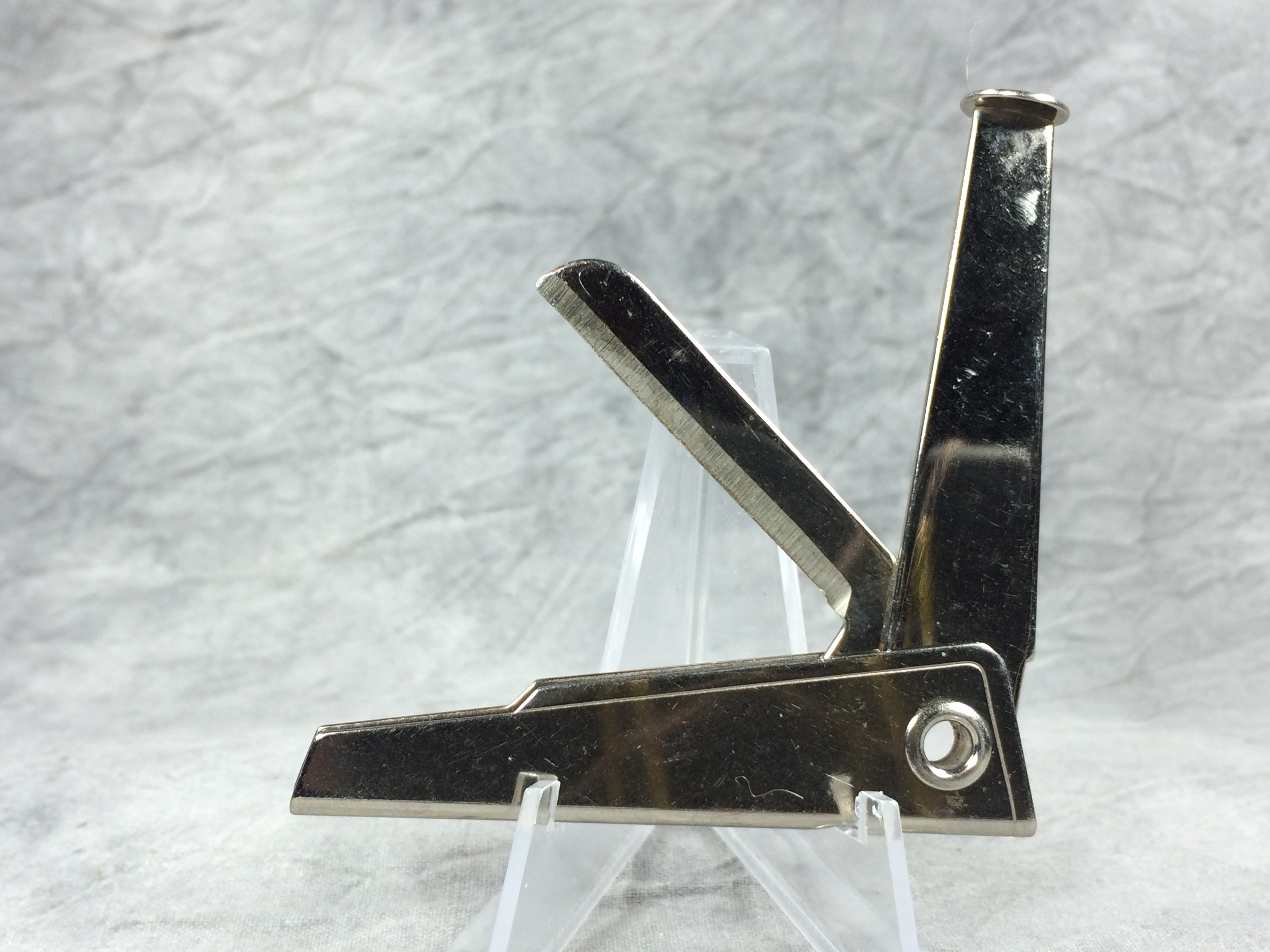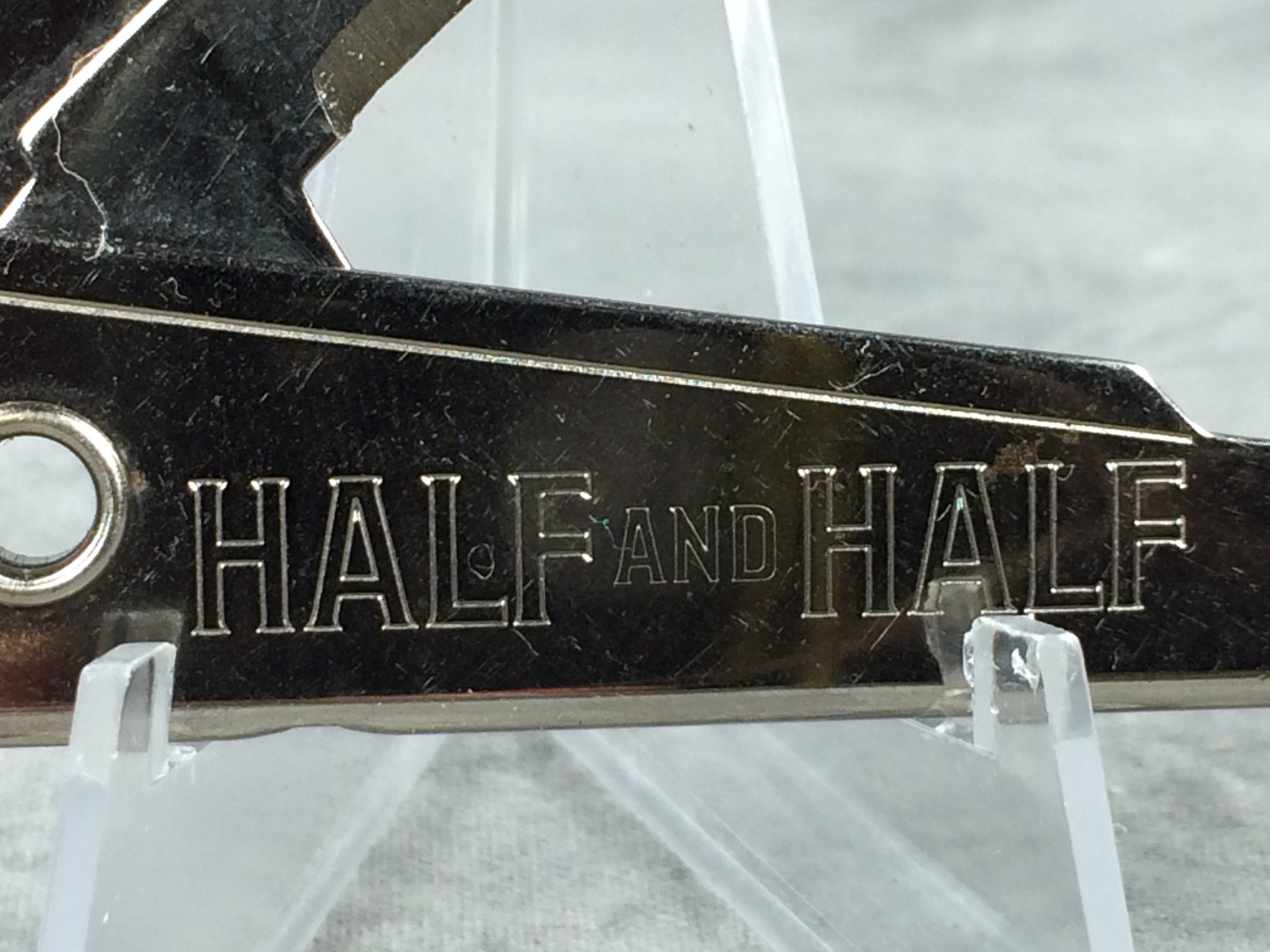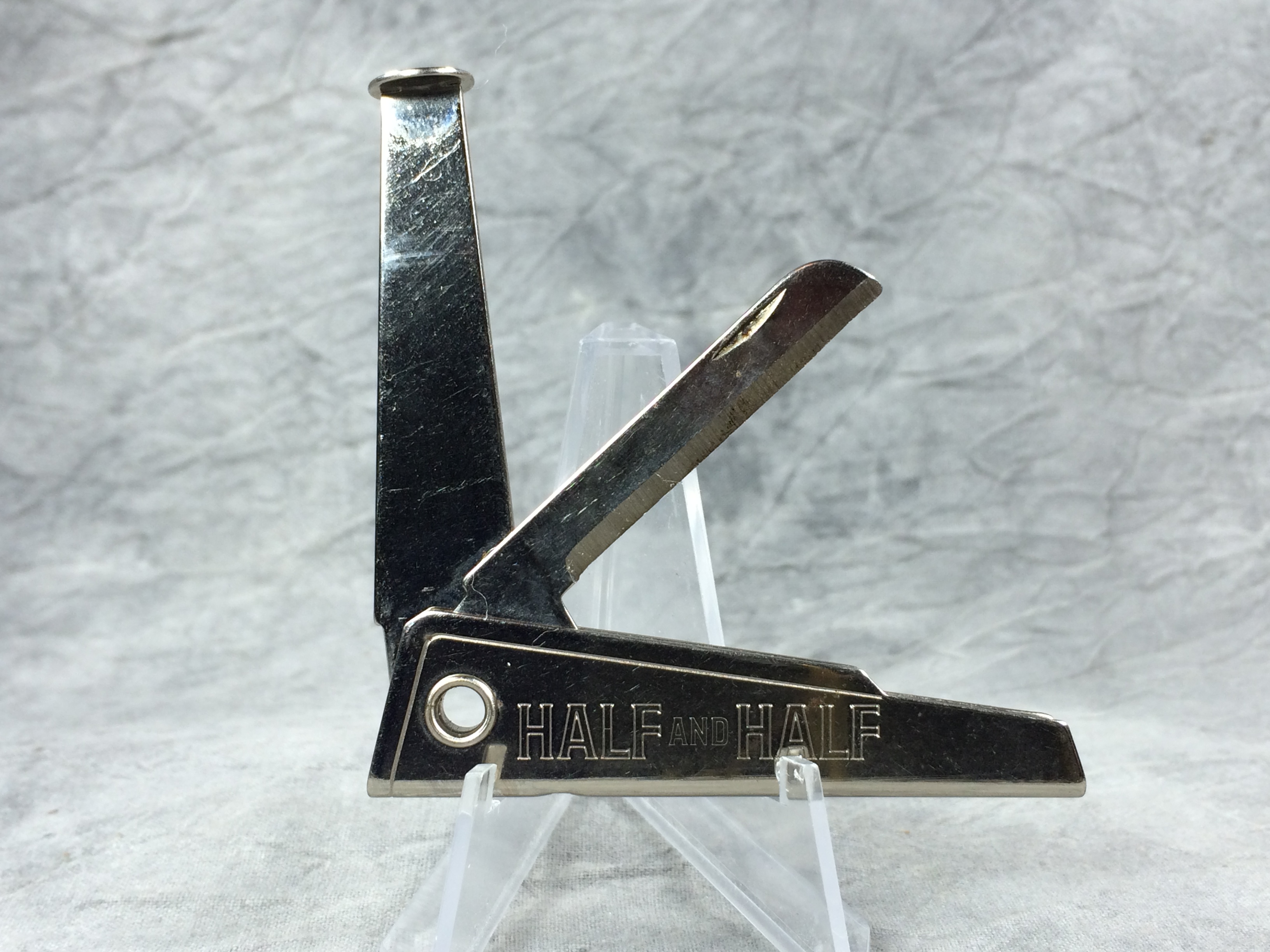 April 05, 2026 - 2-1/2 inches closed. 4-3/8 inches open. Stainless Steel handle etched "HALF AND HALF". With lanyard hole.