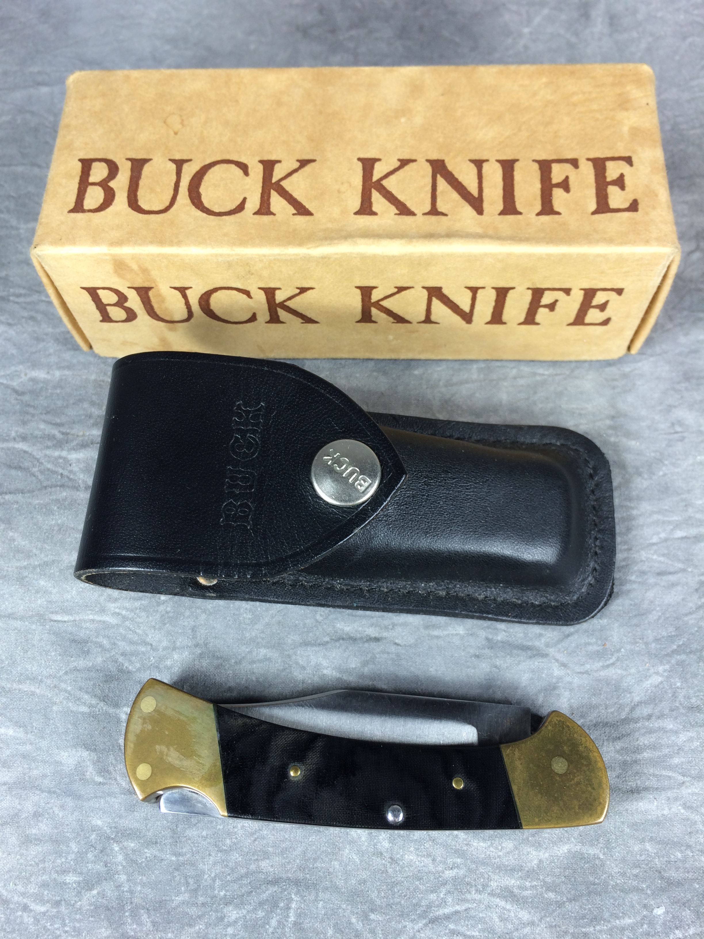 BUCK 112 Black Micarta Ranger Lockback Knife with Sheath & Box