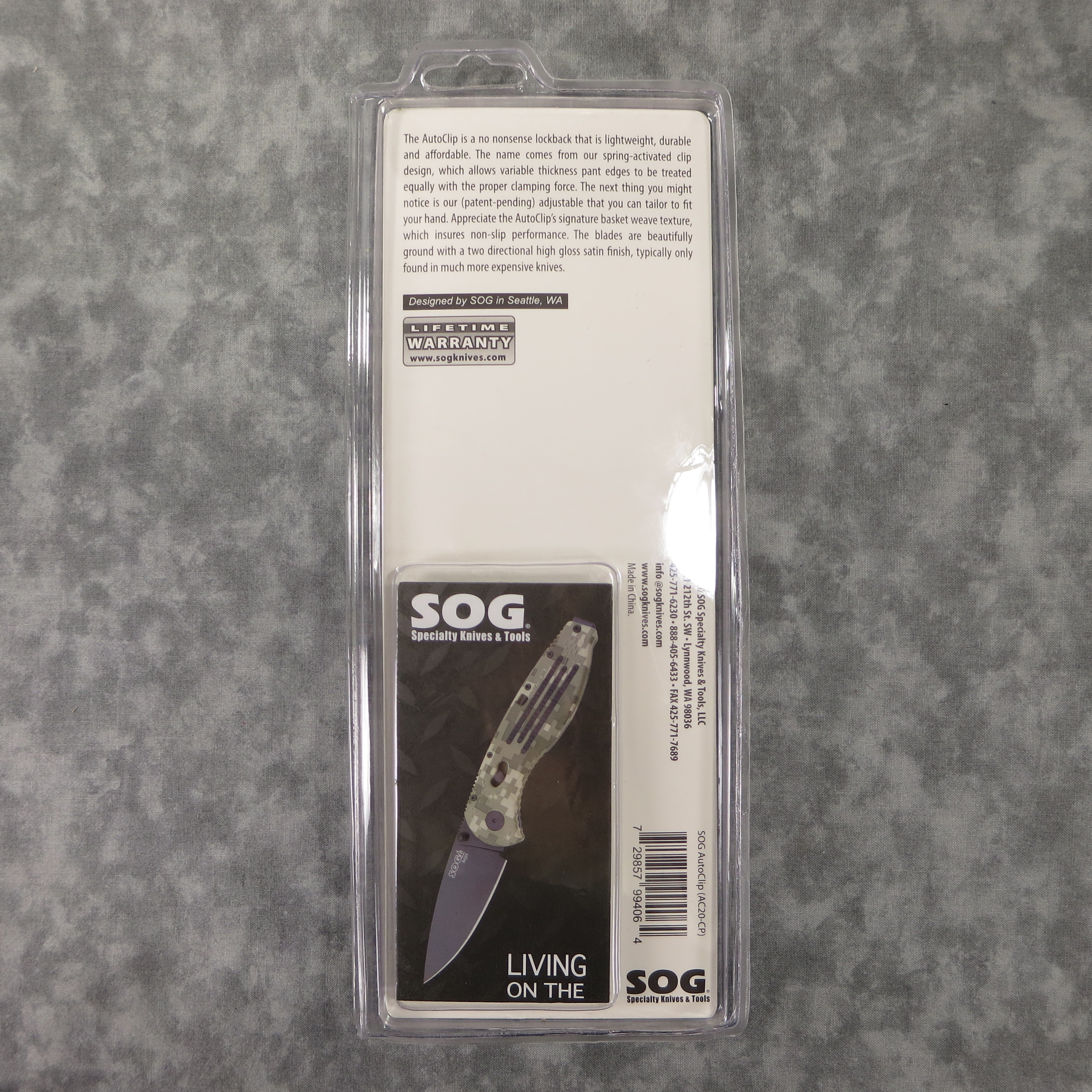 You have: SOG AUTOCLIP 3-1/2" Lockback Folding Tactical Knife