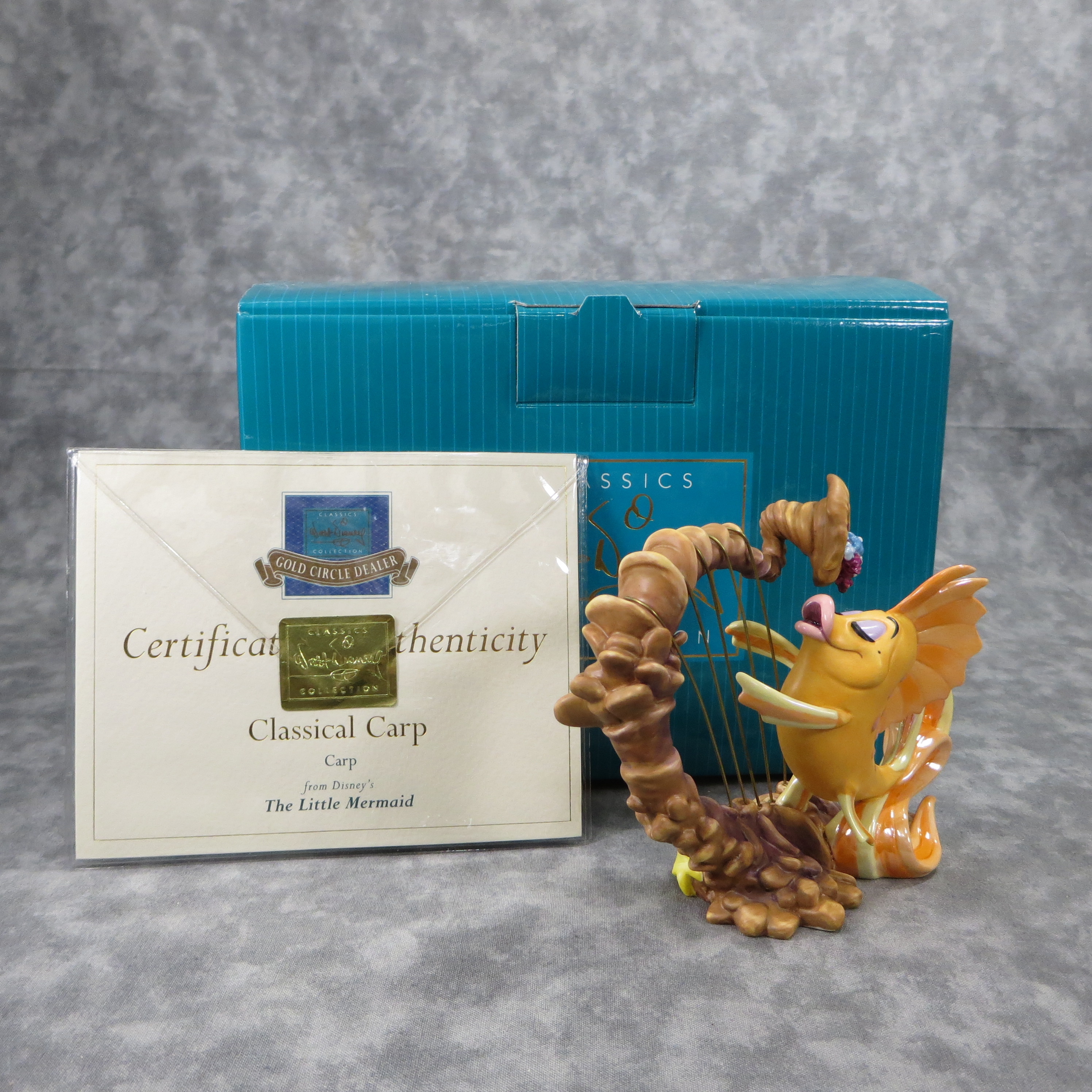 December 25, 2025 - Walt Disney Classics Collection. Carp Figurine. Classical Carp from the film Little Mermaid. Circa 1997-1999. Original issue price: $150. Sculpted by Kent Melton. Gold Circle. 1998 Gold Circle Exclusive (2nd Issue) Limited Edition 10,000 pcs. 4-1/4 inches tall. 4-7/8 inches wide. 2-1/8 inches long.