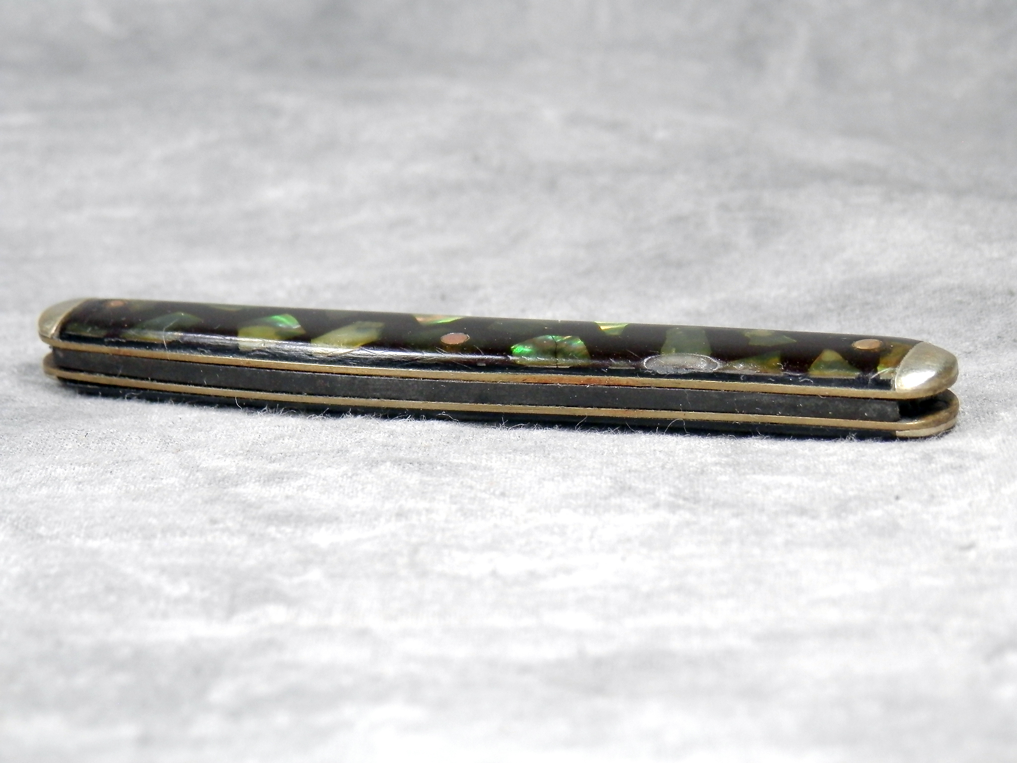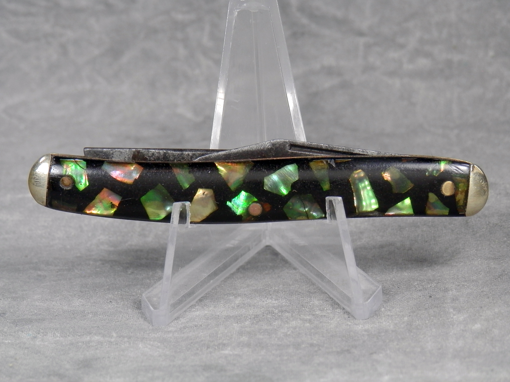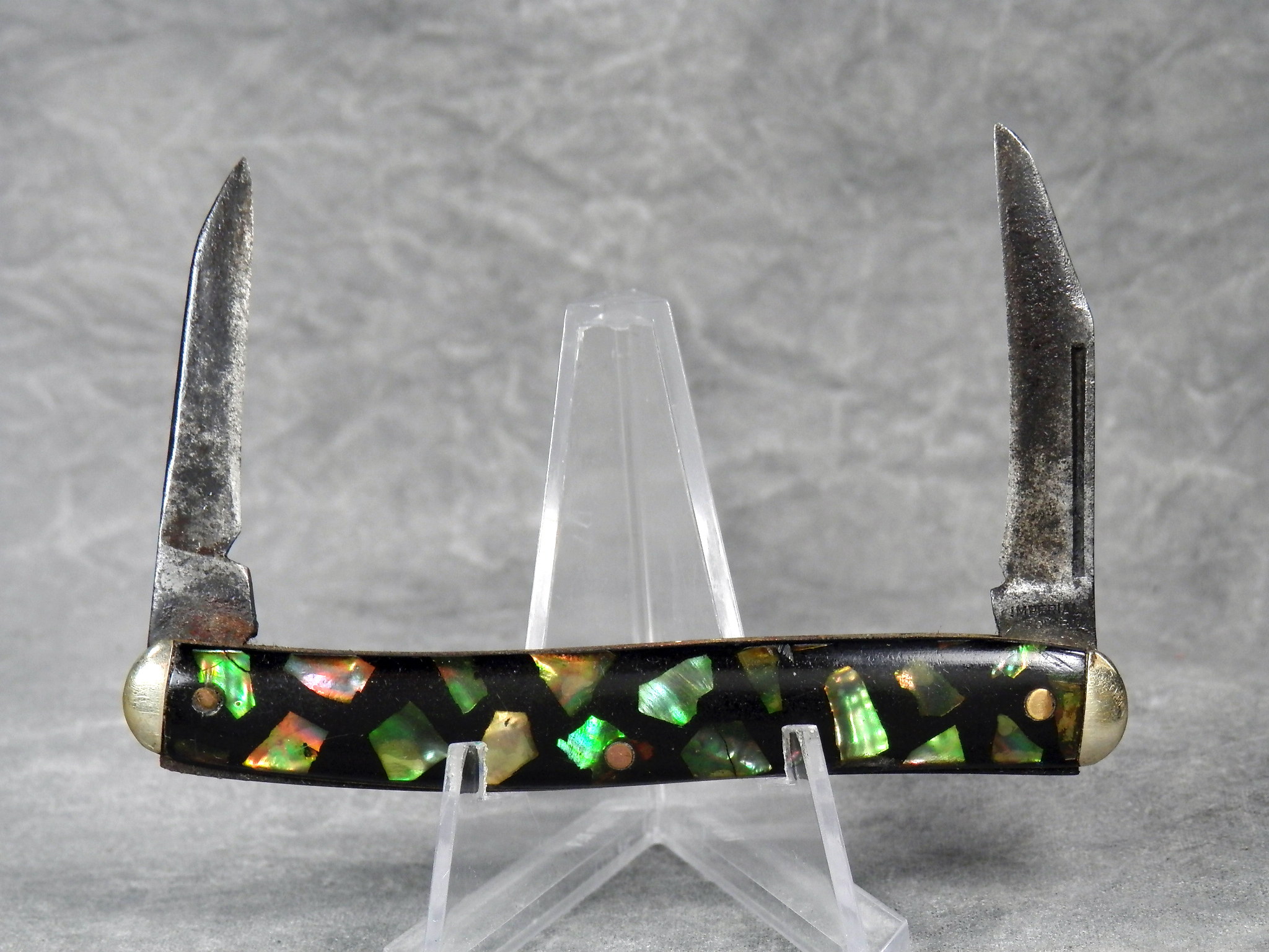 January 14, 2026 - 3-1/4 inches closed. 4-7/8 inches open. "IMPERIAL PROV. R.I." tang stamp. Synthetic handle. Nickel Silver bolsters. Brass liner.