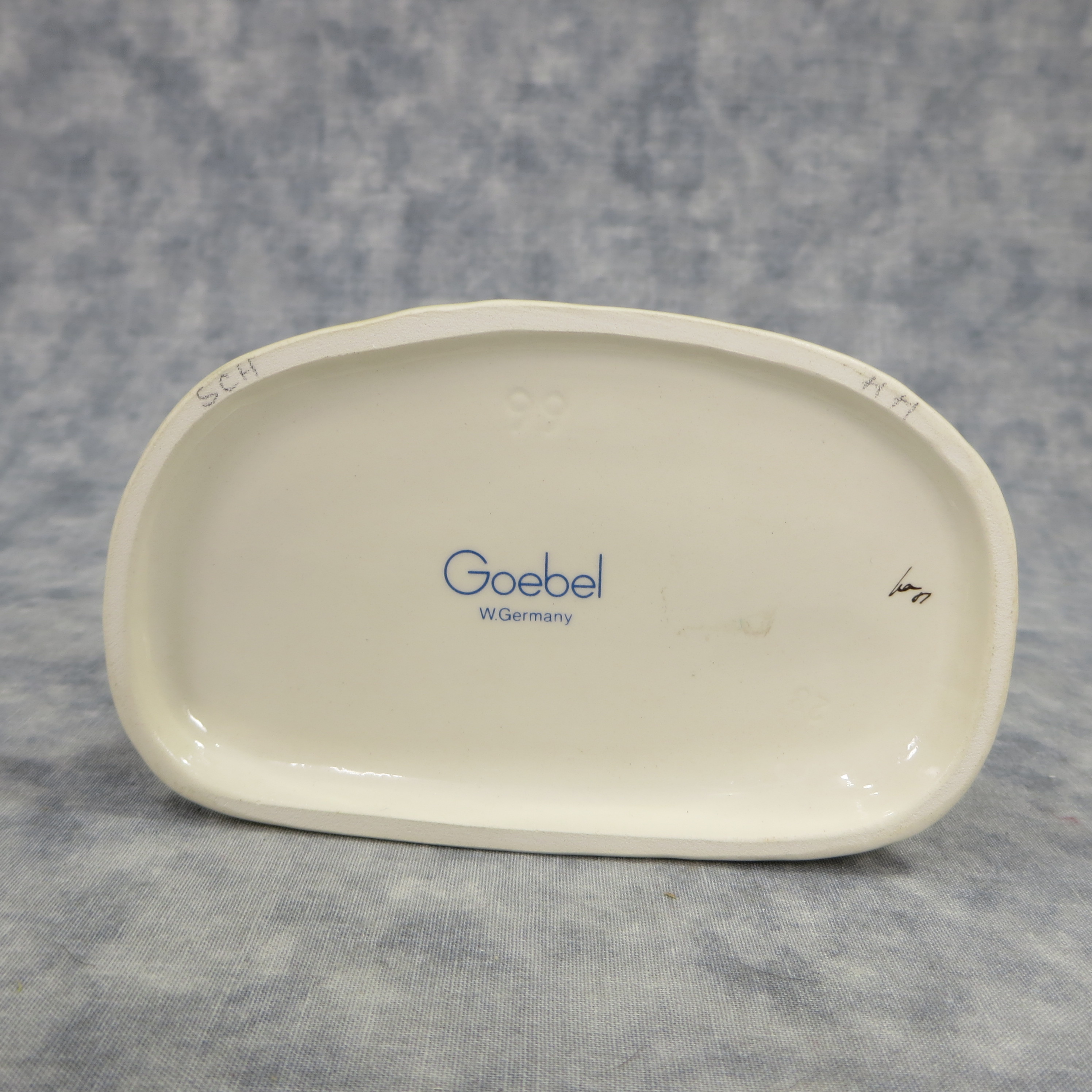 April 25, 2026 - 4-1/2 inches tall. Base is incised 99. Goebel TMK 6 trademark imprinted in blue on bottom of base. Painter hand-initialed in black ink on bottom of base.
