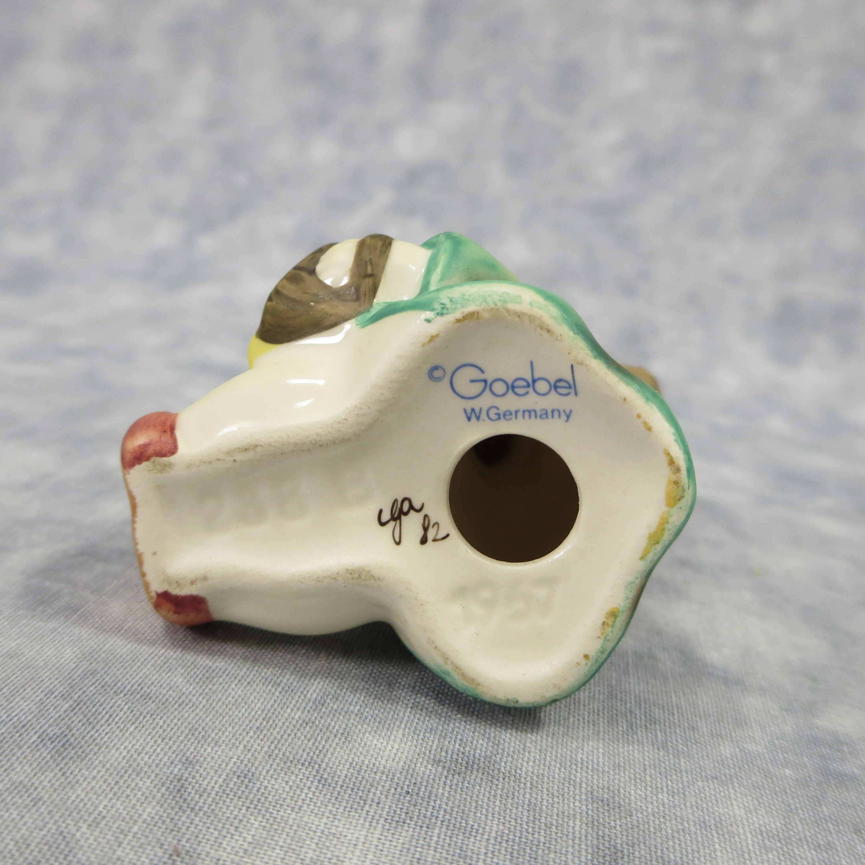 March 16, 2026 - 2-1/4 inches tall. Base is incised 238C. Goebel TMK 6 trademark imprinted in blue on bottom of base. Painter hand-initialed and dated in black ink on bottom of base.