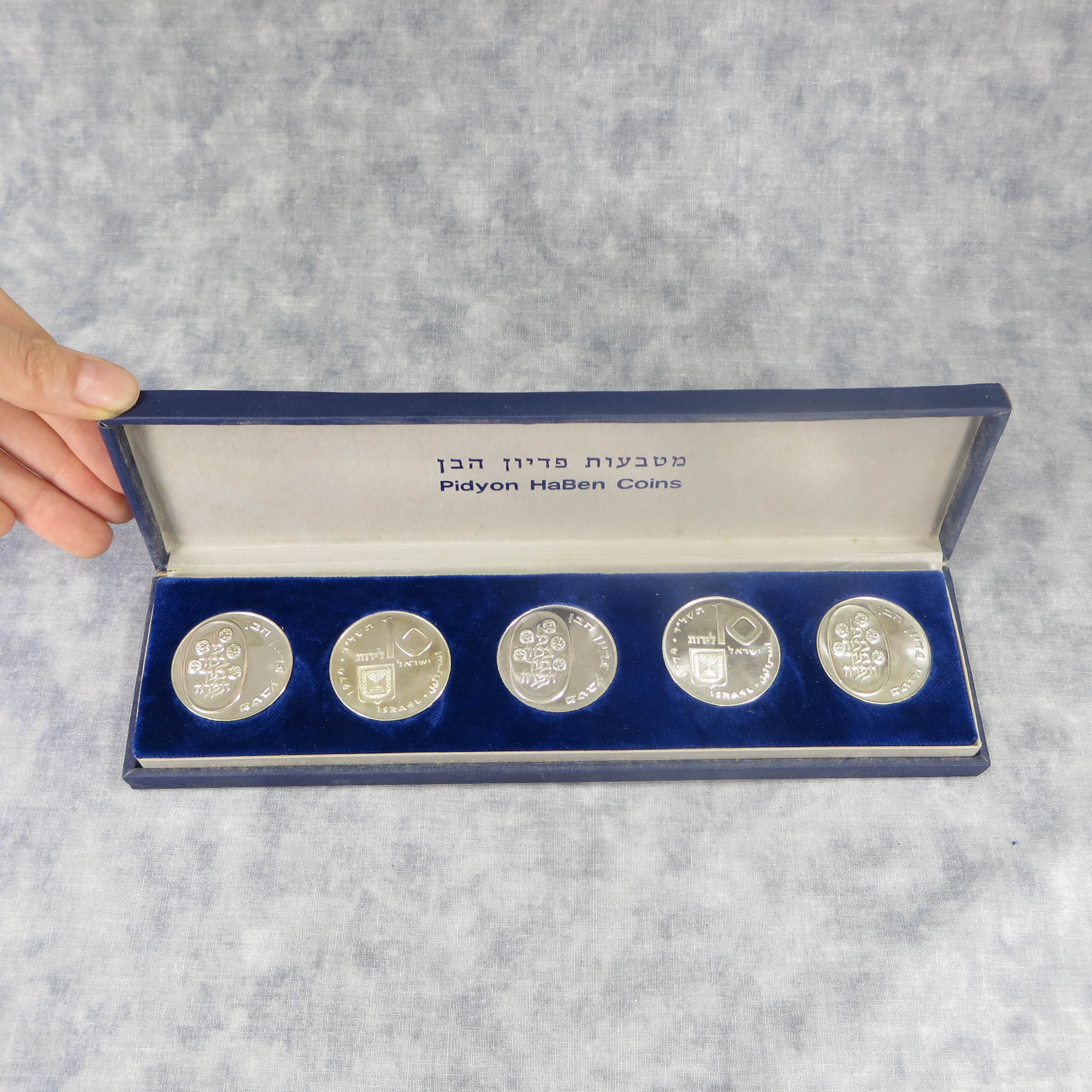 You have: ISRAEL Pidyon HaBen 5 Coins .900 Silver Proof Set (Jerusalem Government Bank,1974)