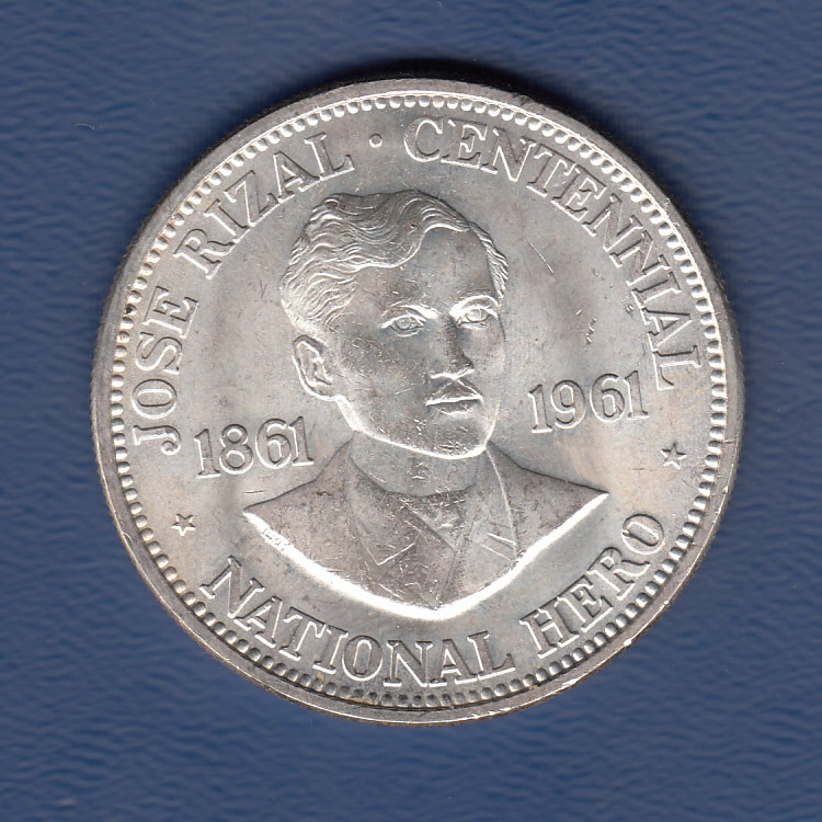 You have: PHILIPPINES 1961 Jose Rizal Centennial One Peso Silver Coin KM 192