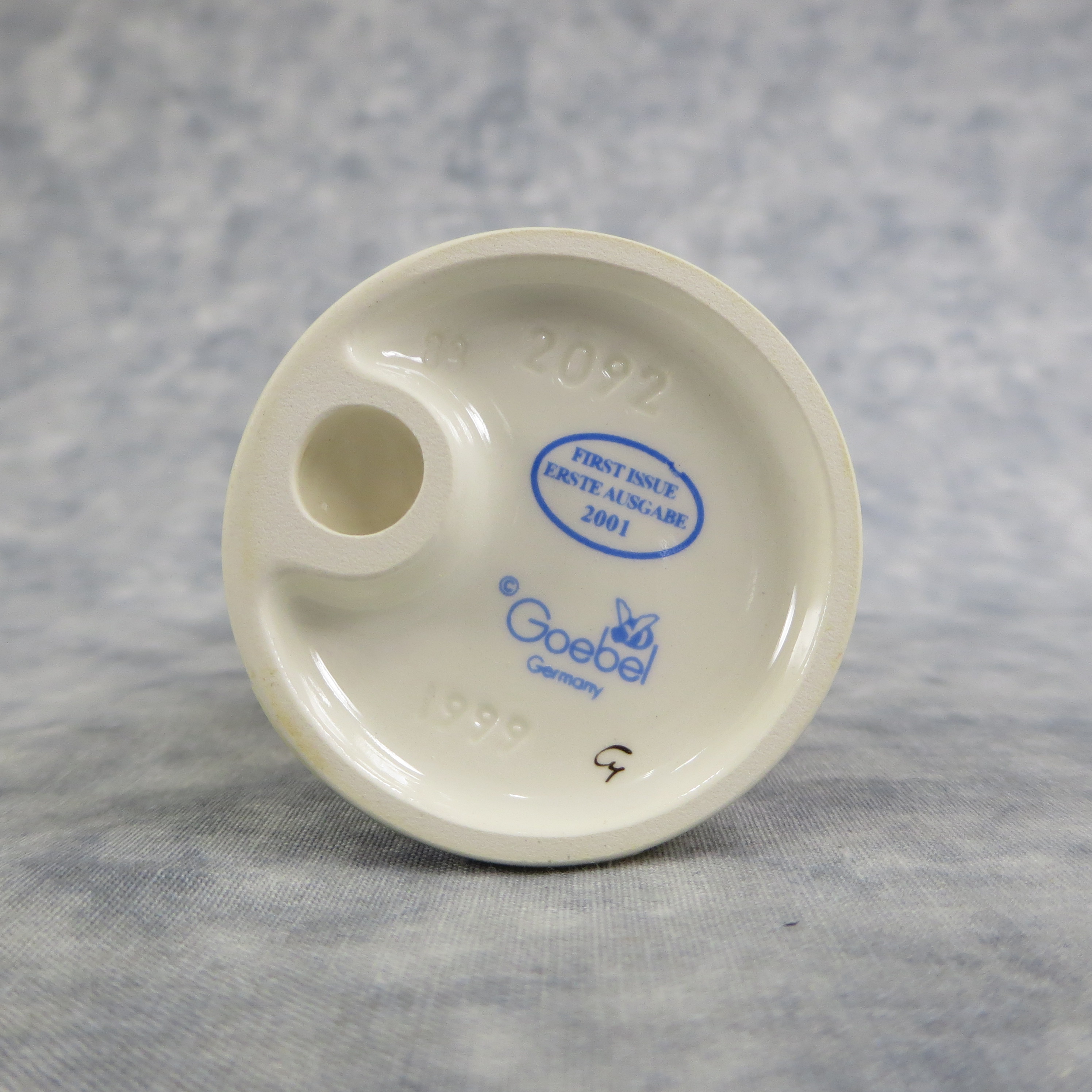 February 23, 2026 - 4-1/4 inches tall. Base is incised 2092 and 1999. Goebel TMK 8 trademark and 'FIRST ISSUE 2001' imprinted in blue on bottom of base. Painter hand-initialed in black ink on bottom of base.