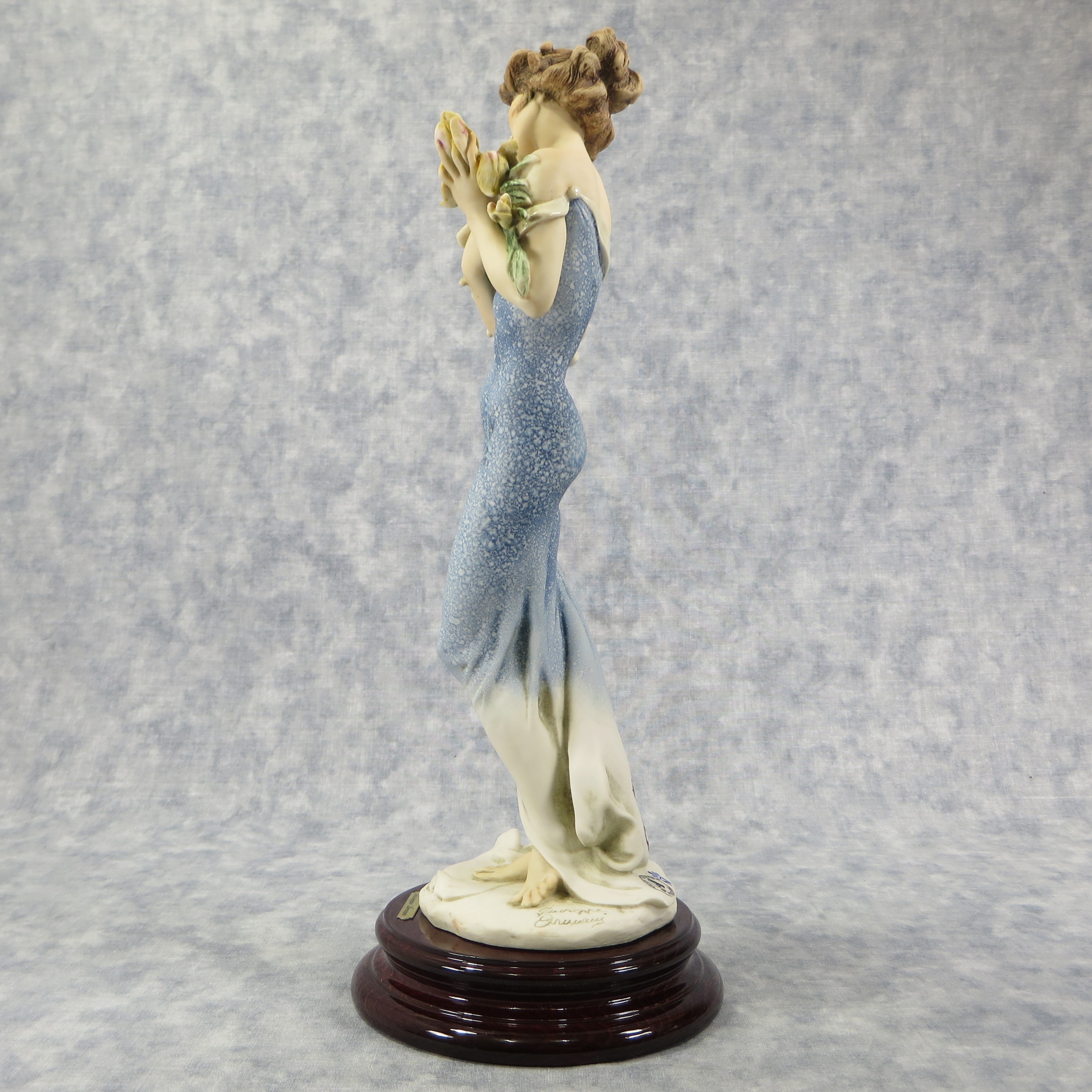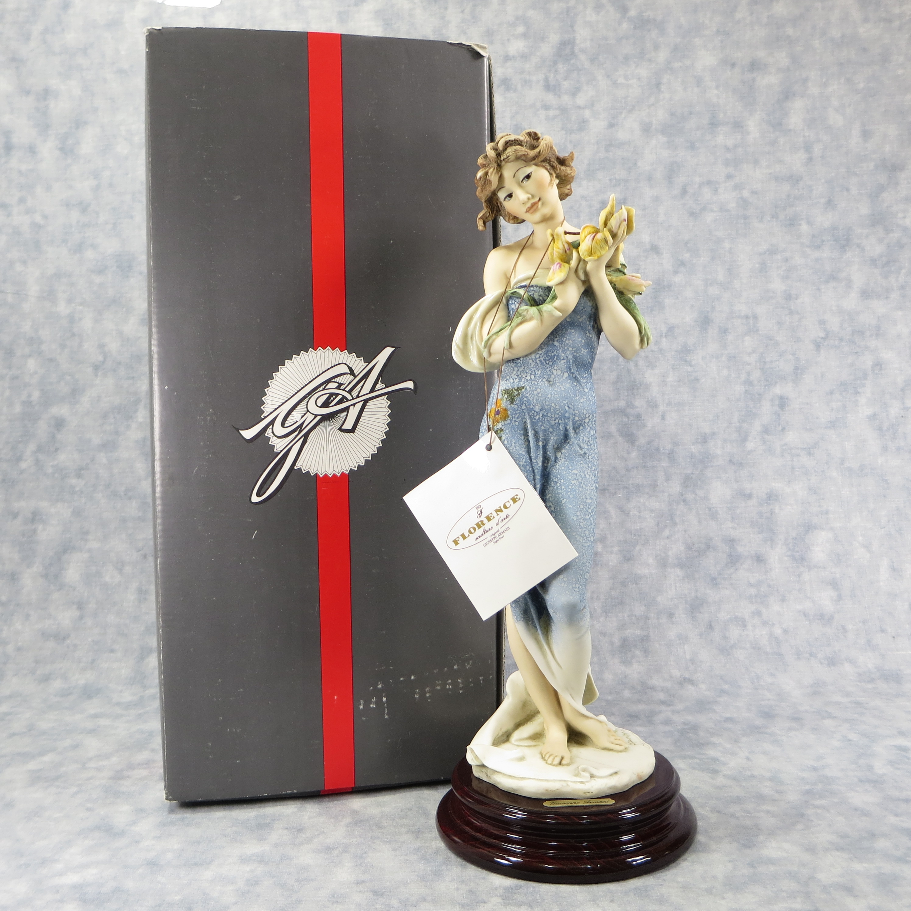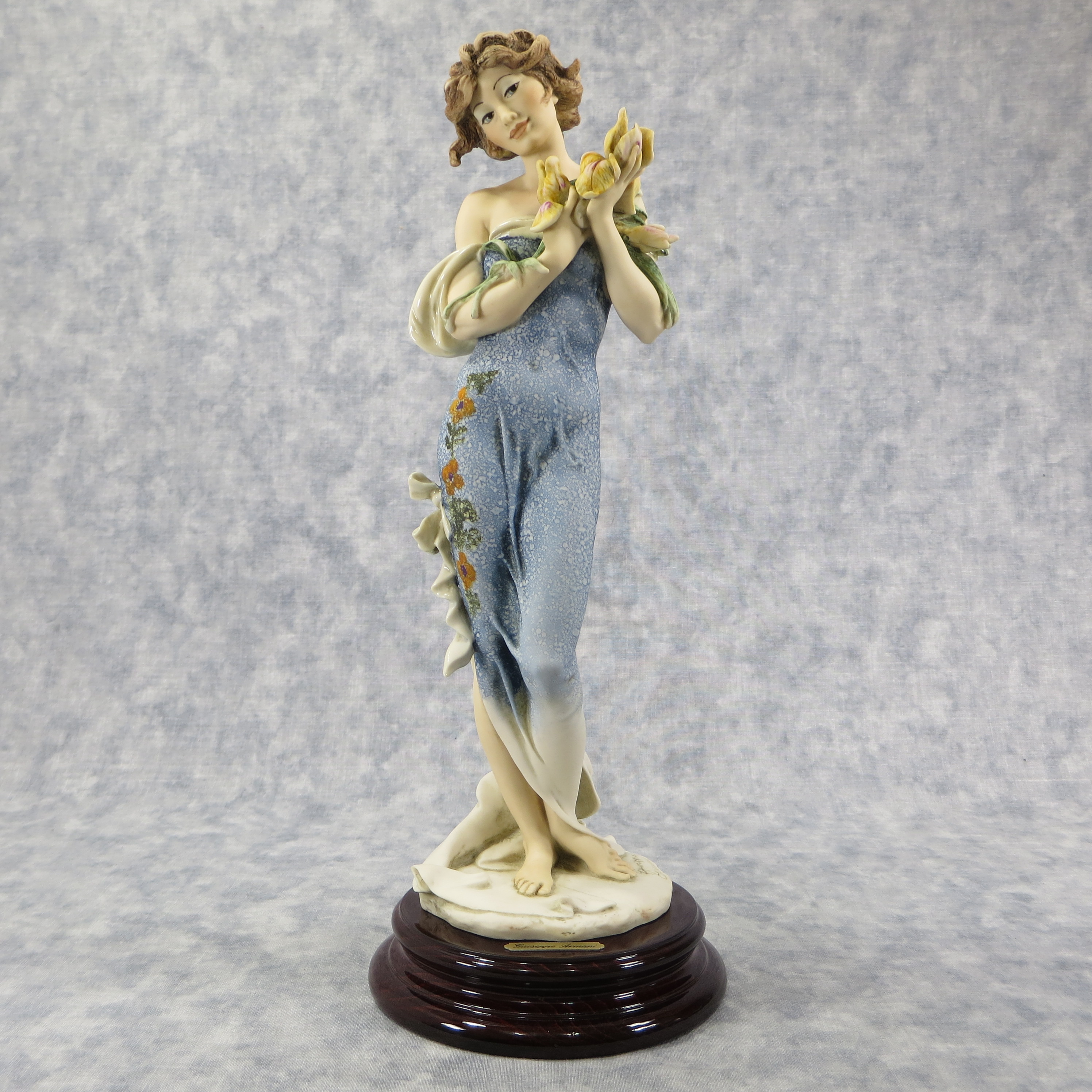 December 14, 2025 - Iris Statue on a mahogany plinth by Sculture d'arte of Florence, Italy. Circa 1994. 1995 event piece from the My Fair Lady collection. Giuseppe Armani designed and hand-painted in Tuscany in 'E' finish with original patterns which gives the sculpture charming beauty.