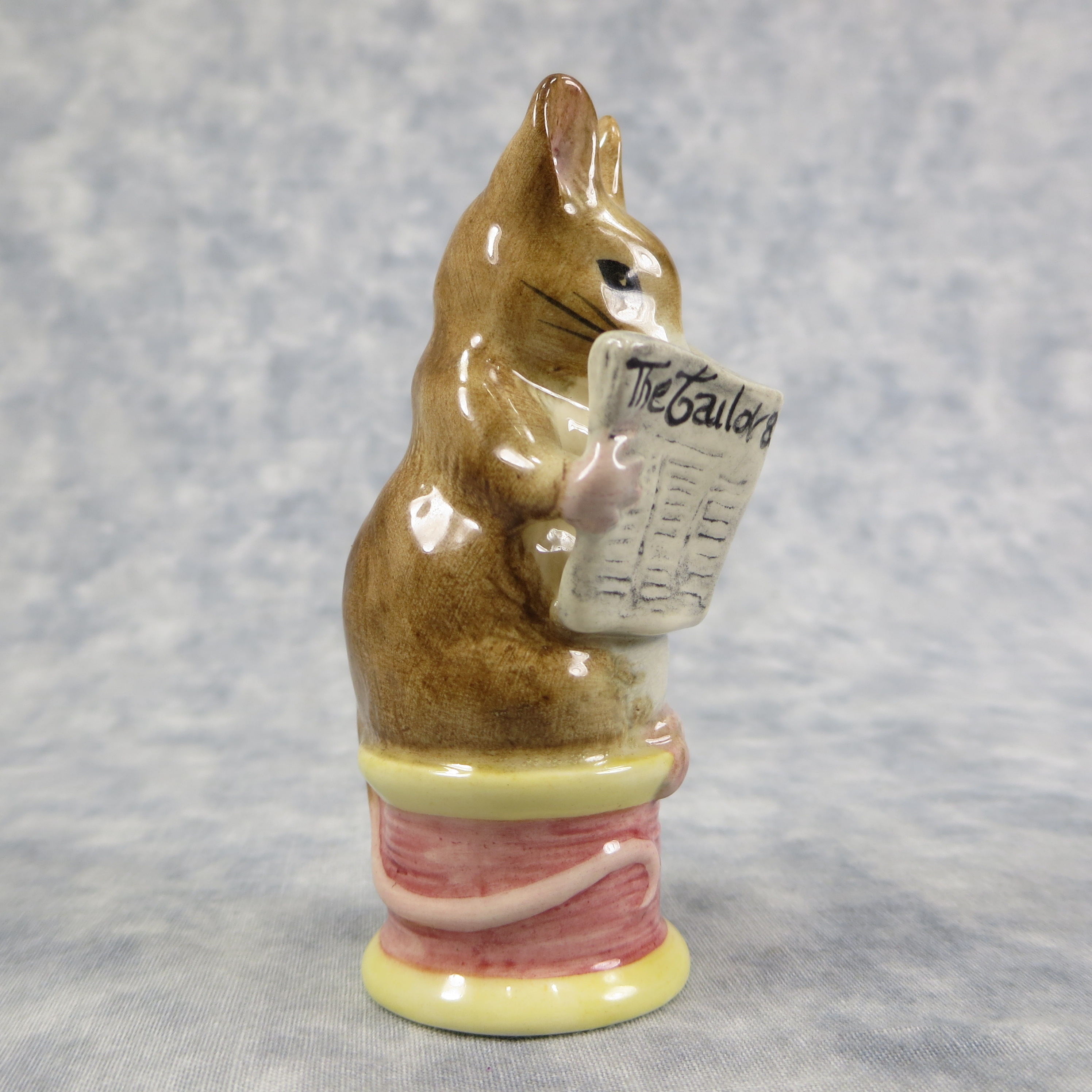 February 23, 2026 - 3-3/4 inches tall by 1-1/2 inches wide by 1-1/2 inches long. Shape Number: 1108. Modelled by Arthur Gredington. First issued in 1948 and never withdrawn from production. Manufactured by Frederick Warne & Co, Royal Albert (a.k.a. Beswick, England) with the BP-6a backstamp used from 1989-1998.