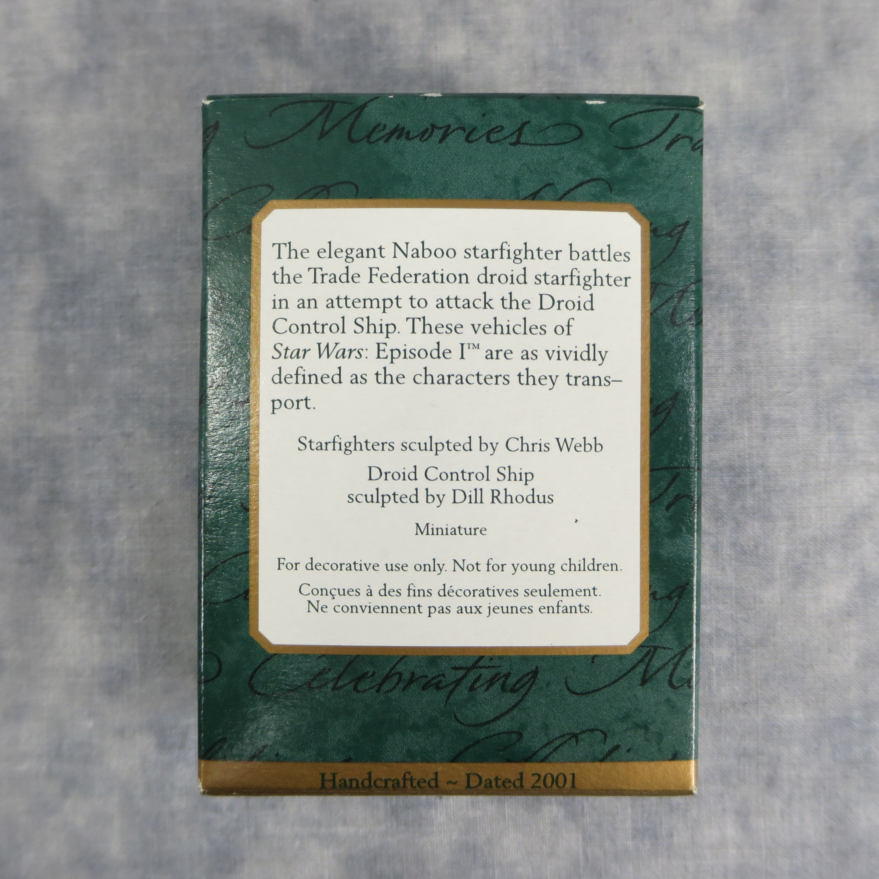 February 03, 2026 - Trade Federation Droid Control Ship is 2-1/4 inch wide, sculpted by Dill Rhodus. Starfighters are approximately 1-1/8 inches wide, sculpted by Chris Webb. Original issue price: $14.95.