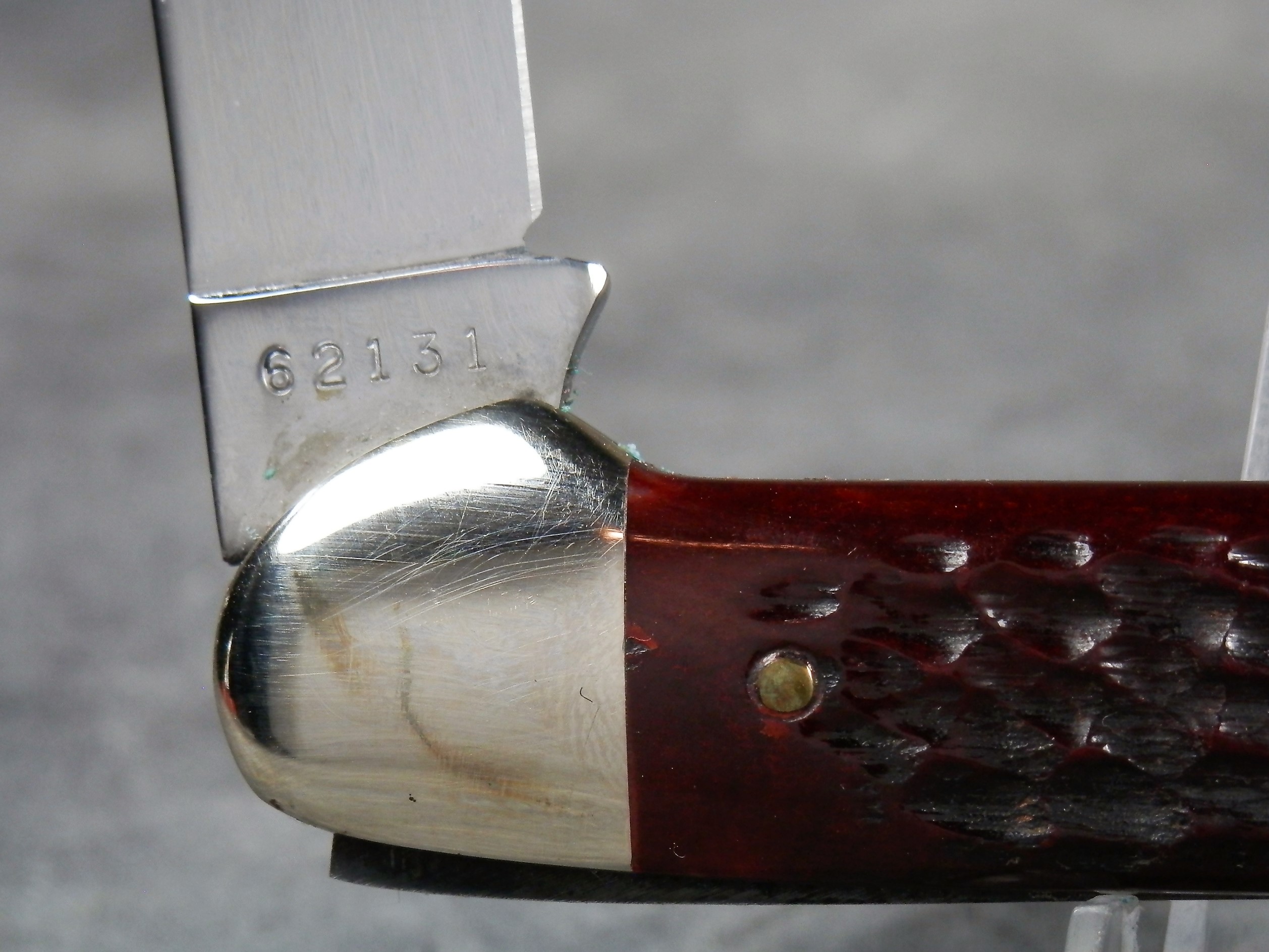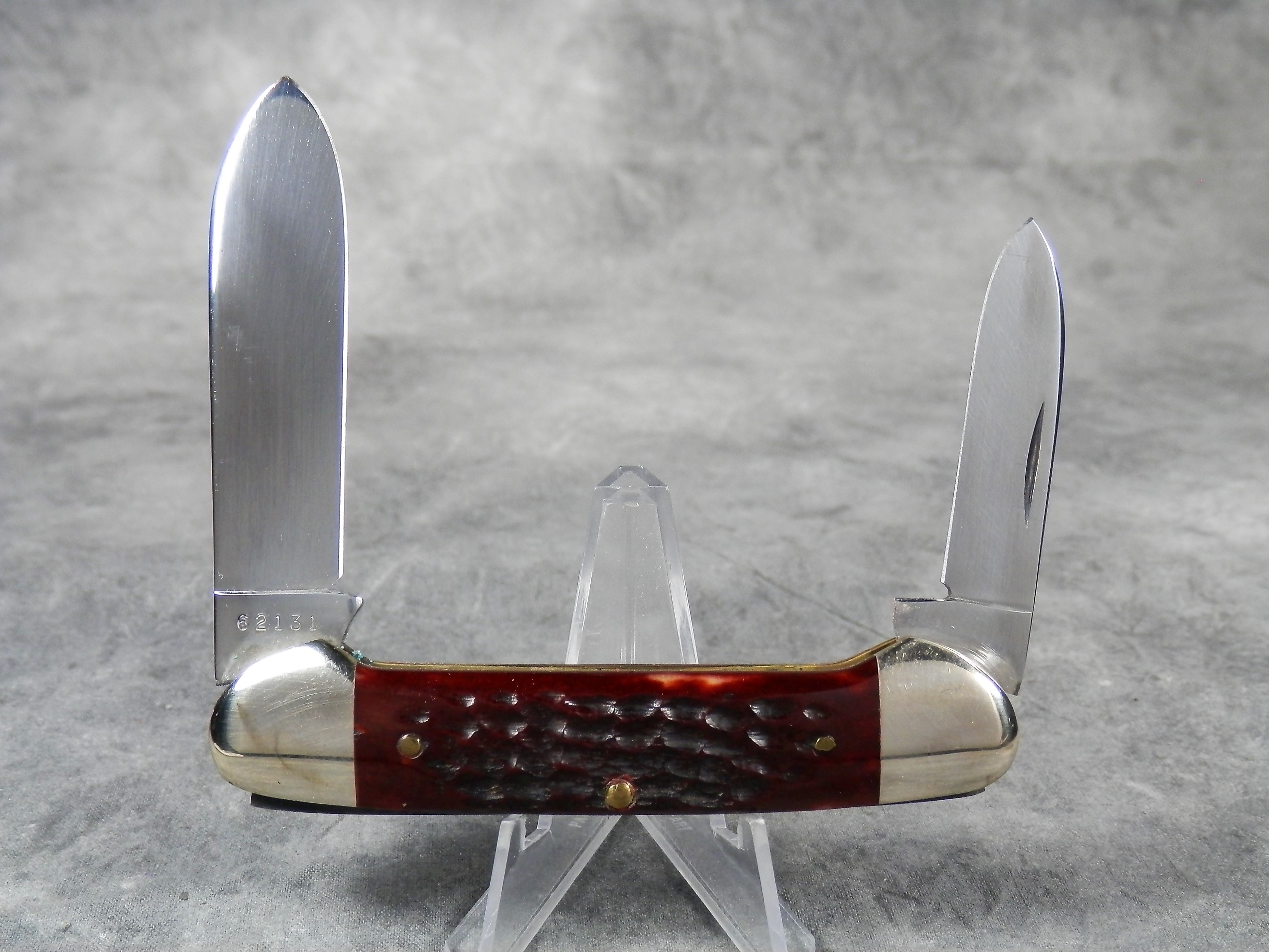 October 26, 2025 - 3-5/8 inches closed. 6-1/4 inches open. Made in USA. "Case XX U.S.A. ** " (2 Dot - dots are not completely visible but it appears to be a 1978 2-dot knife) and "62131" tang stamps. Double Oval 'Open C' Case shield. Chrome Vanadium blades. Brown Jigged Bone handle. Nickel Silver bolsters. Brass liner.