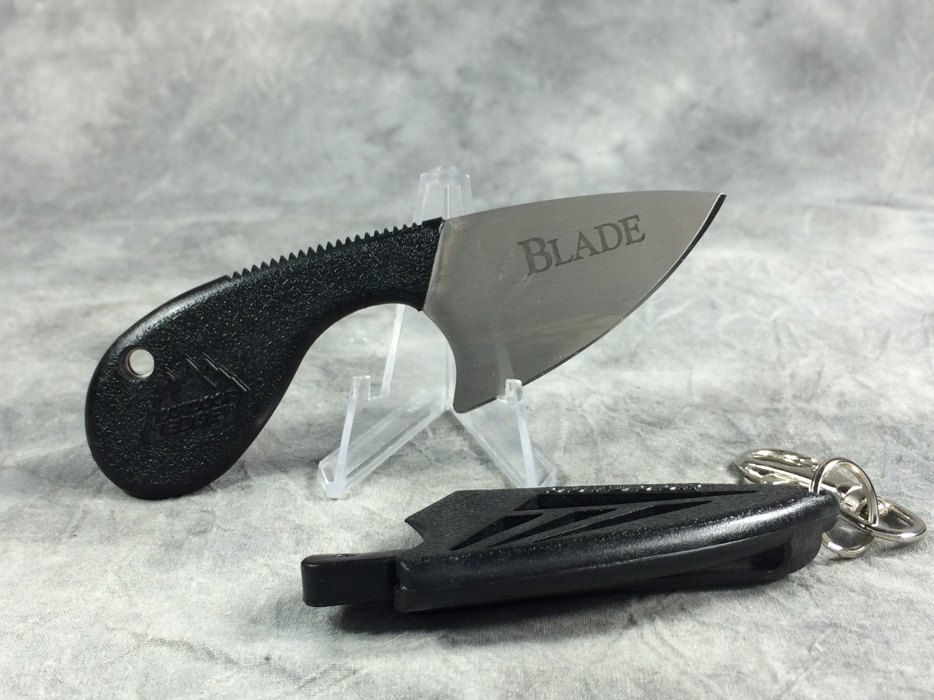 October 26, 2025 - Quick access knife for all outdoor activities. Blade is 2.38". Overall 5" long. Hand ground razor thin from 6M stainless steel blade. Tear drop Delrin handles for non-slip control. With a Swivel-Clip and Cord-Loop for a variety of attachments to a fishing or flotation vest, scuba-BC, belt loop, D-Ring, inside the pocket or around-the-neck carry.