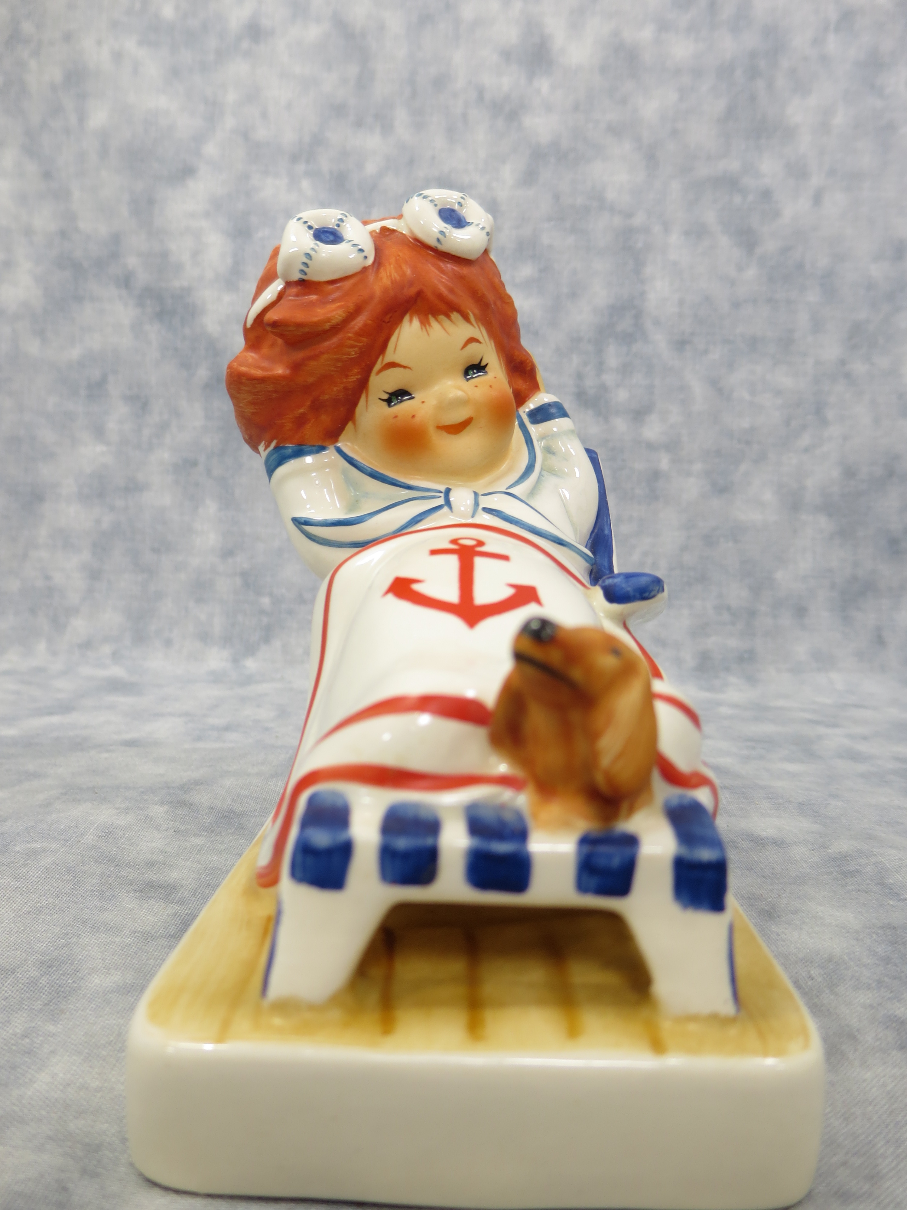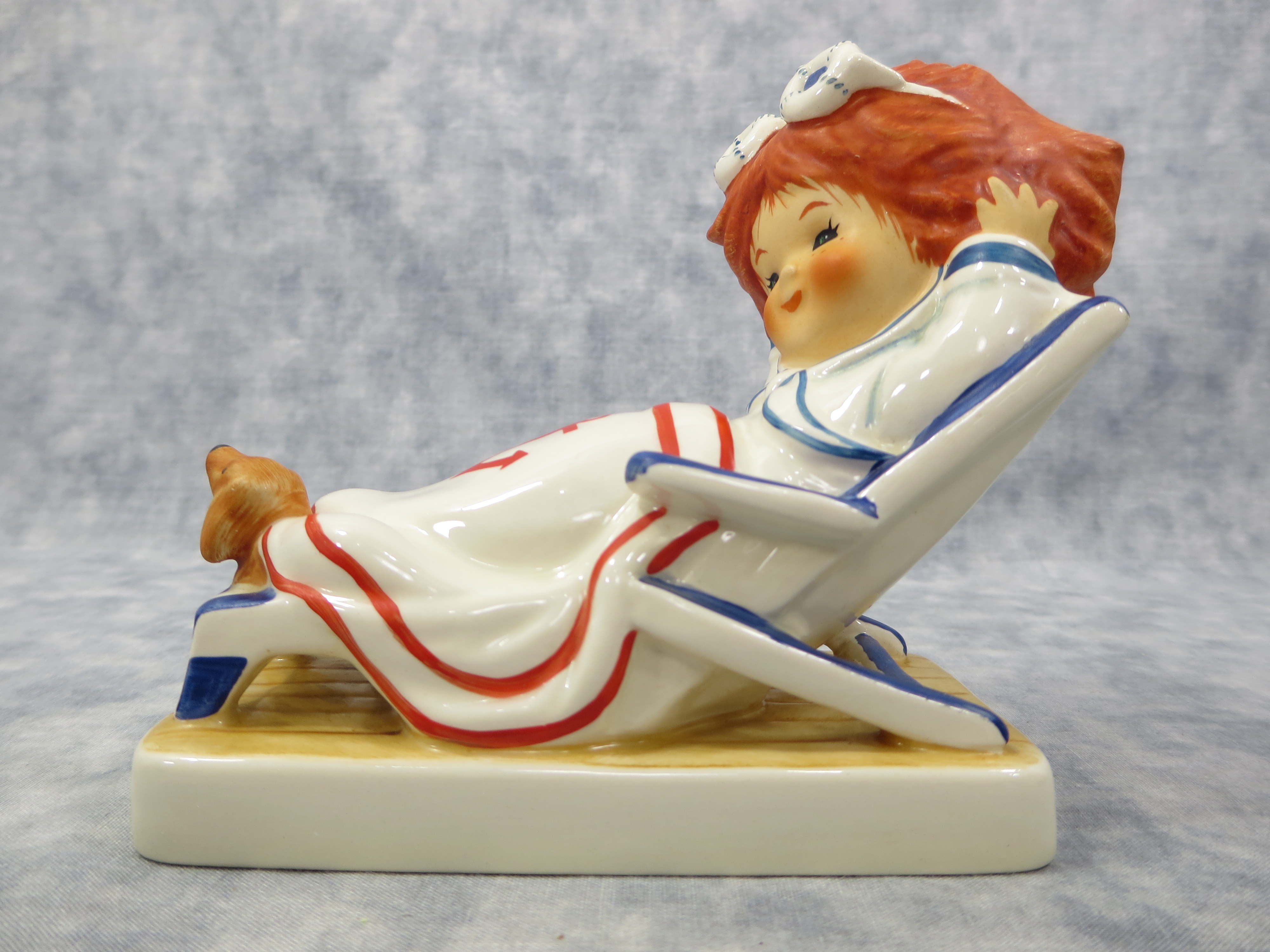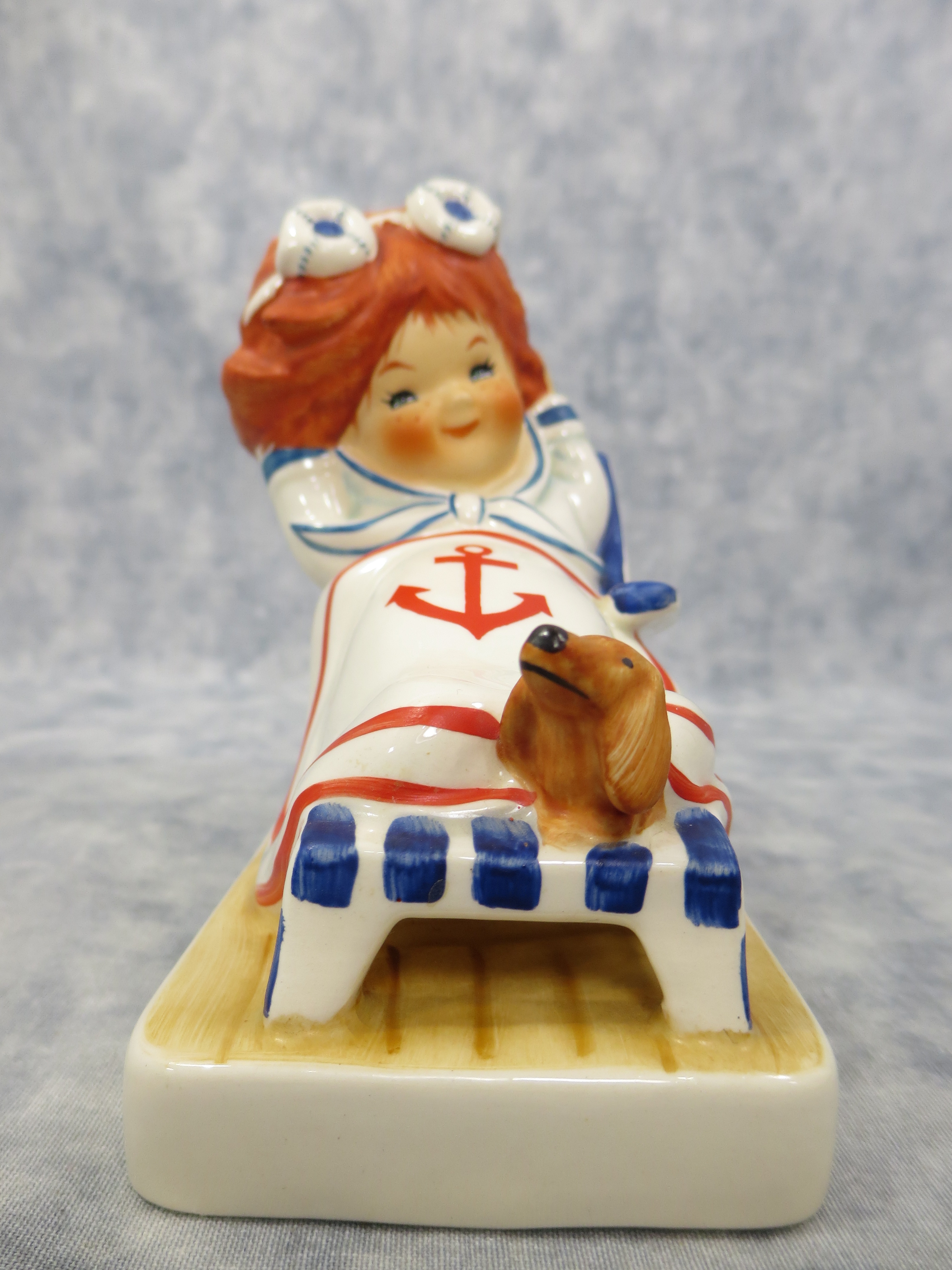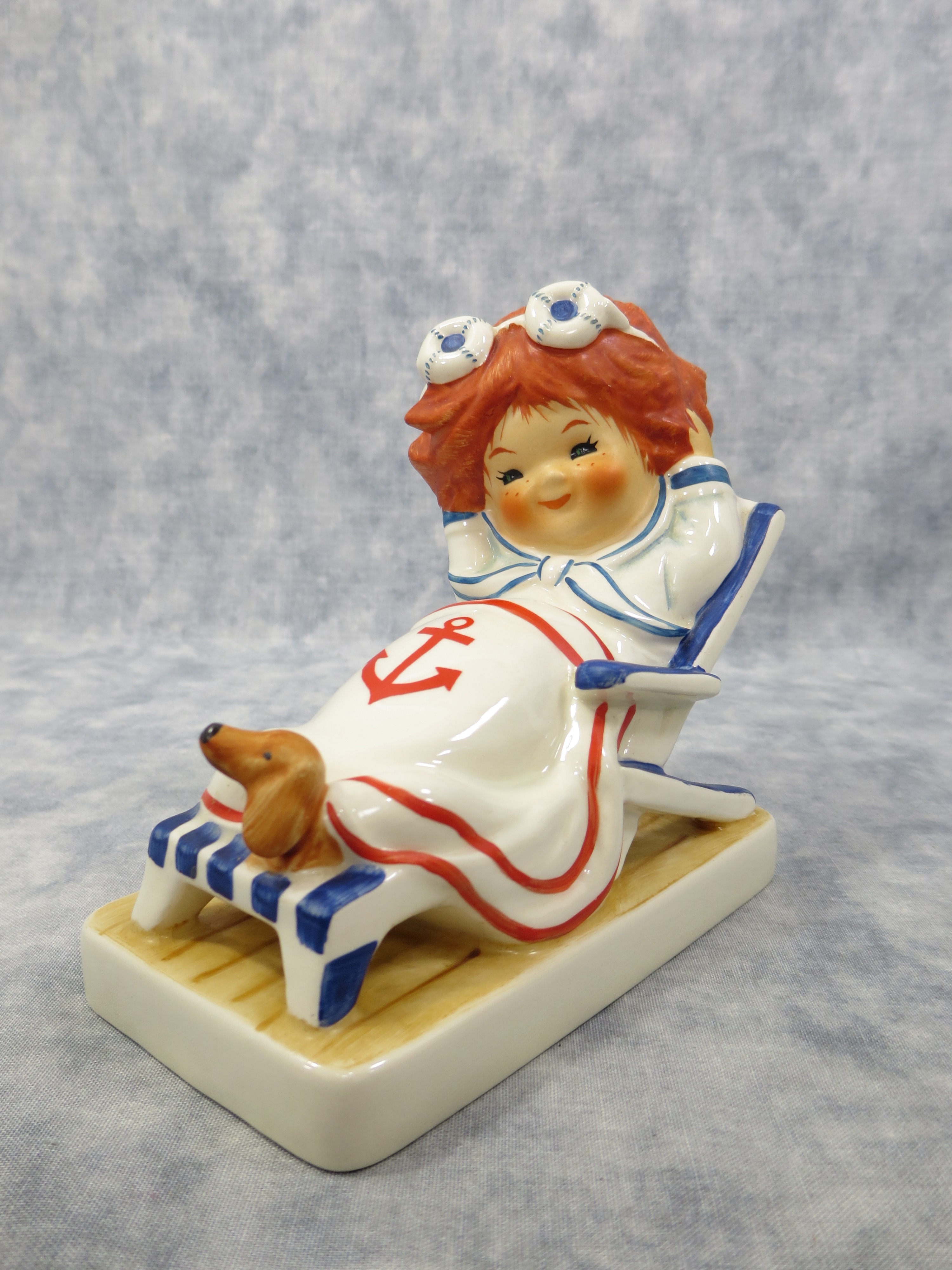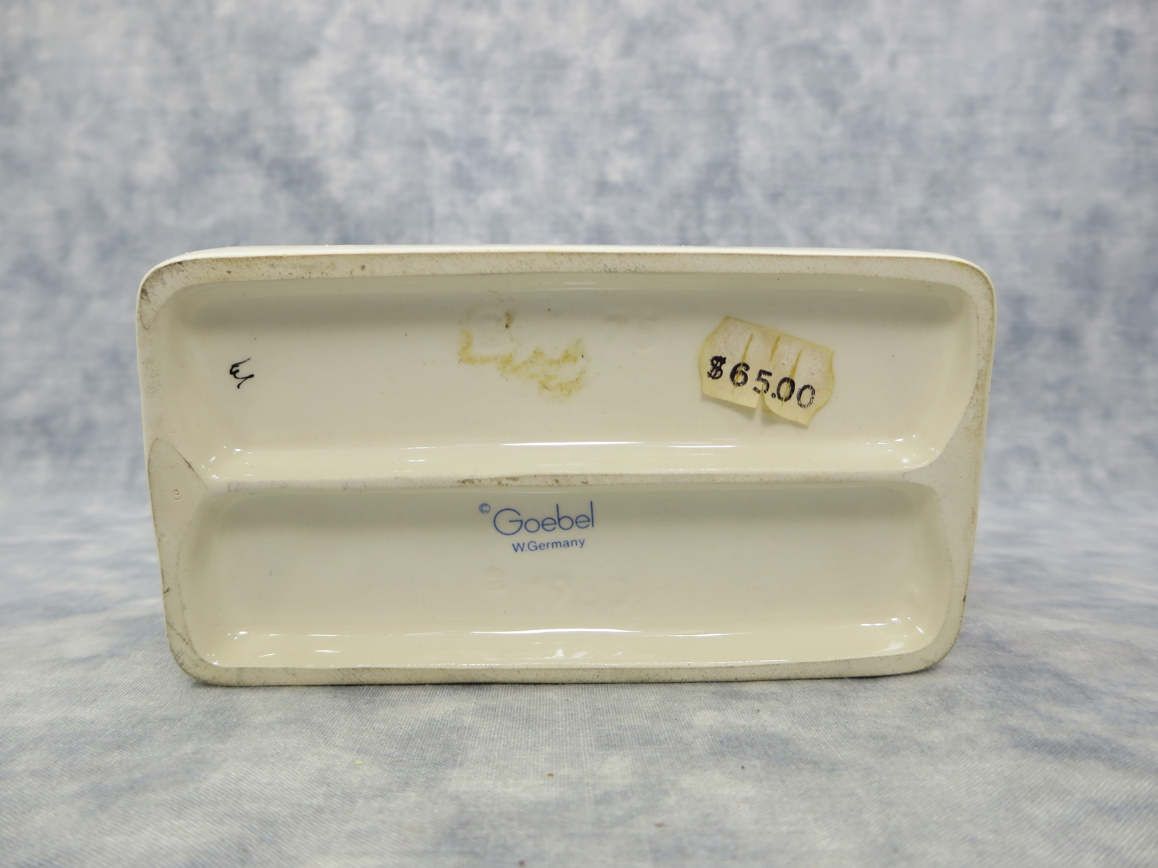 April 25, 2026 - Measures approximately 4-1/2" H x 2-1/2" W x 5-3/4" D. Base incised Byj 75 and 1980. Goebel TMK 6 trademark imprinted in blue on bottom of base. Painter hand-initialed in black ink on bottom of base.
