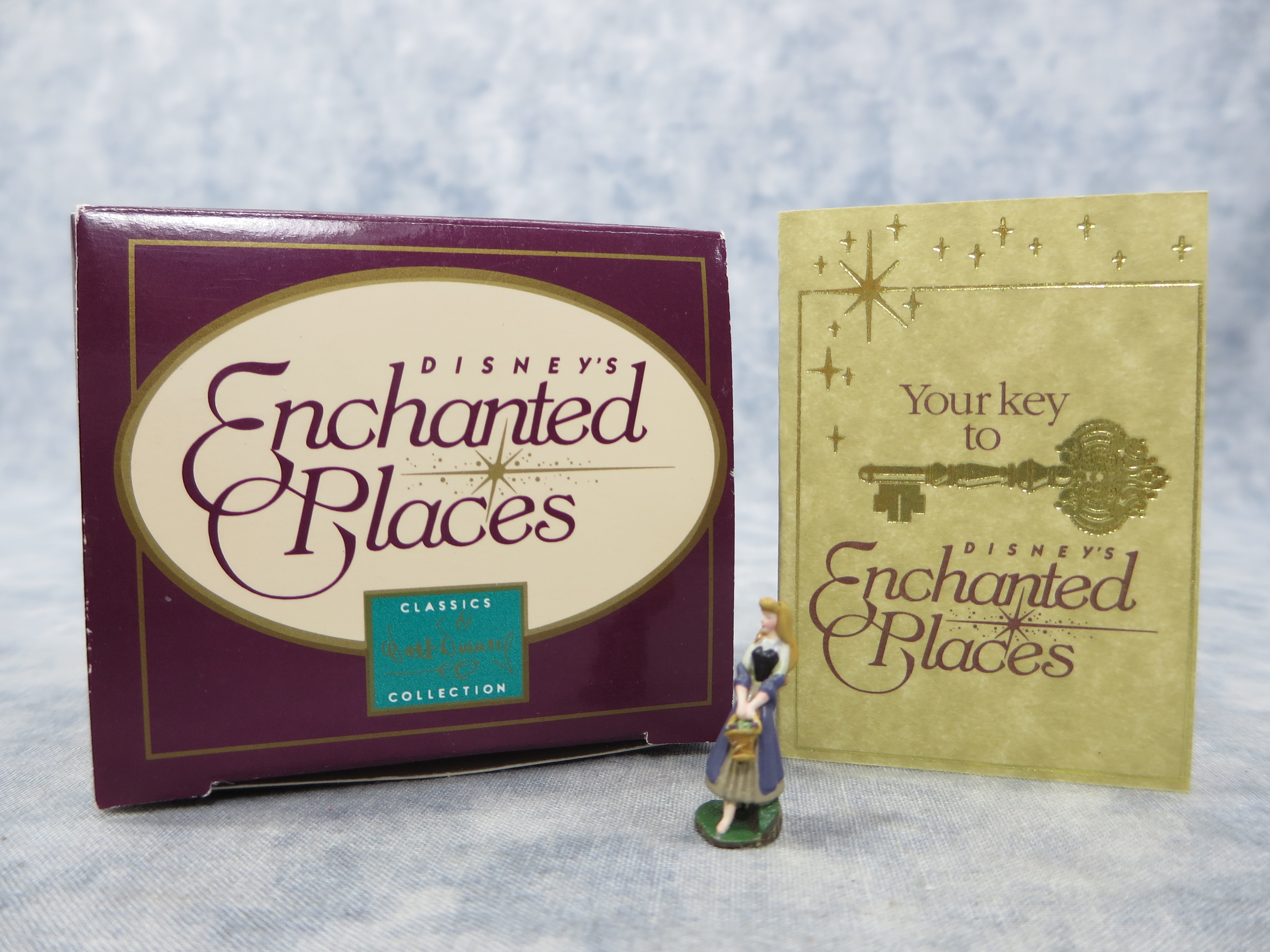 October 28, 2025 - 7/8 inch bronze, hand-painted, miniature. Base stamped: BRIAR ROSE / ENCHANTED PLACES / DISNEY. Designed by Robert Olszewski. Retired 09/1999. No mark. Includes original box and COA.