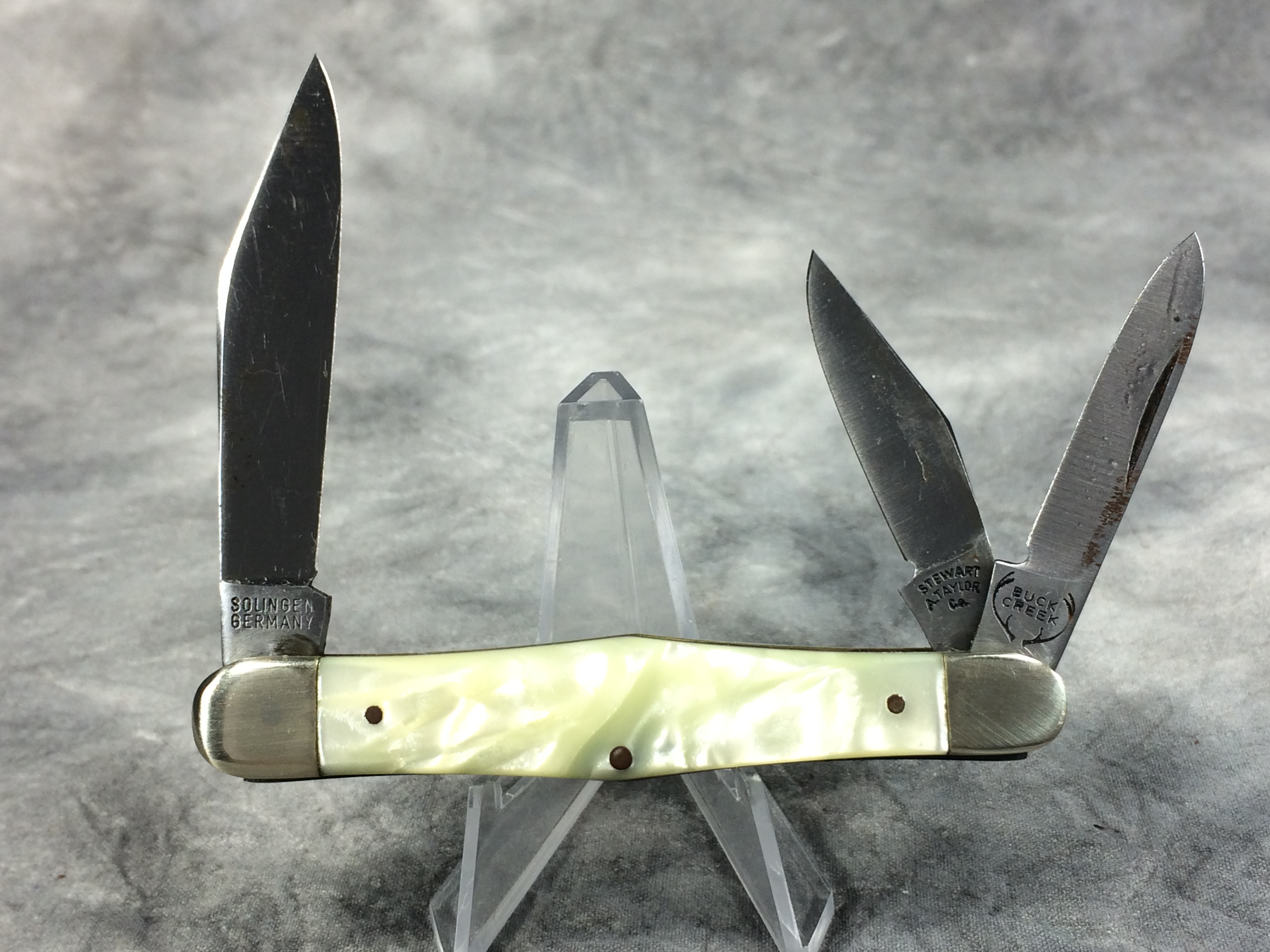You have: 1994 BUCK CREEK Stewart A Taylor Cracked Ice 3-Blade Whittler