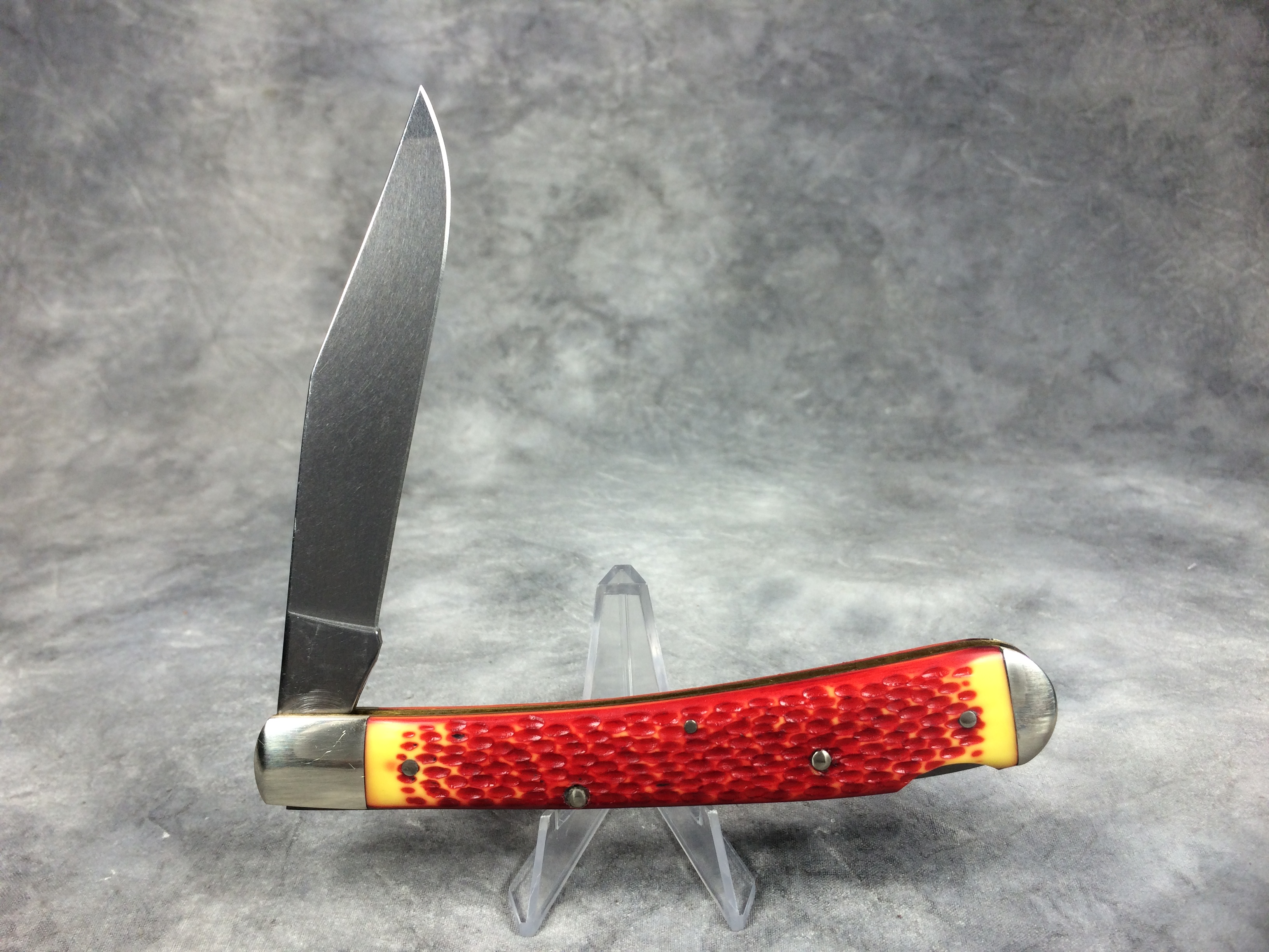 You have: REMINGTON NEW TANG Limited Edition Red / Orange Jigged Lockback Bullet Knife