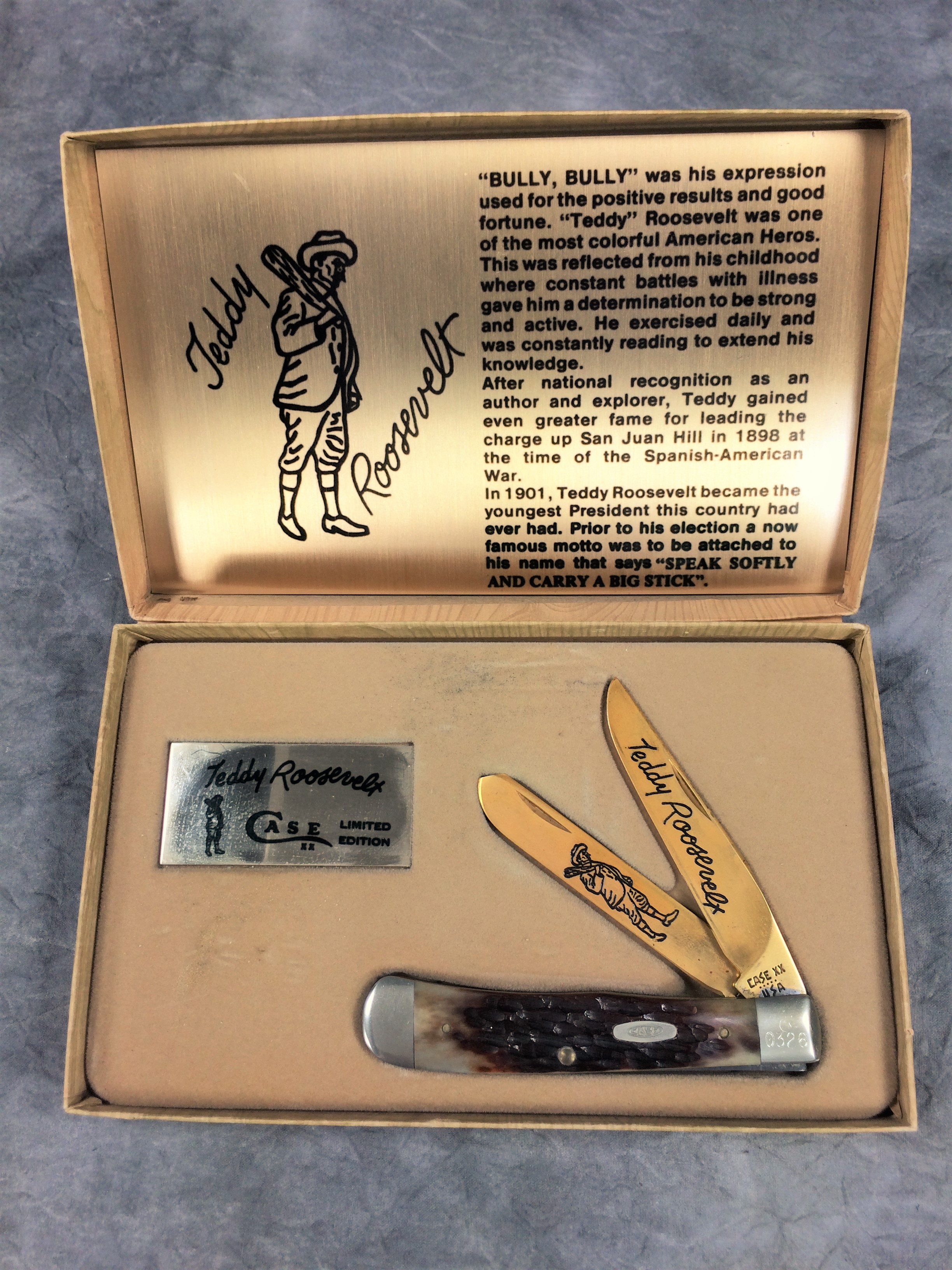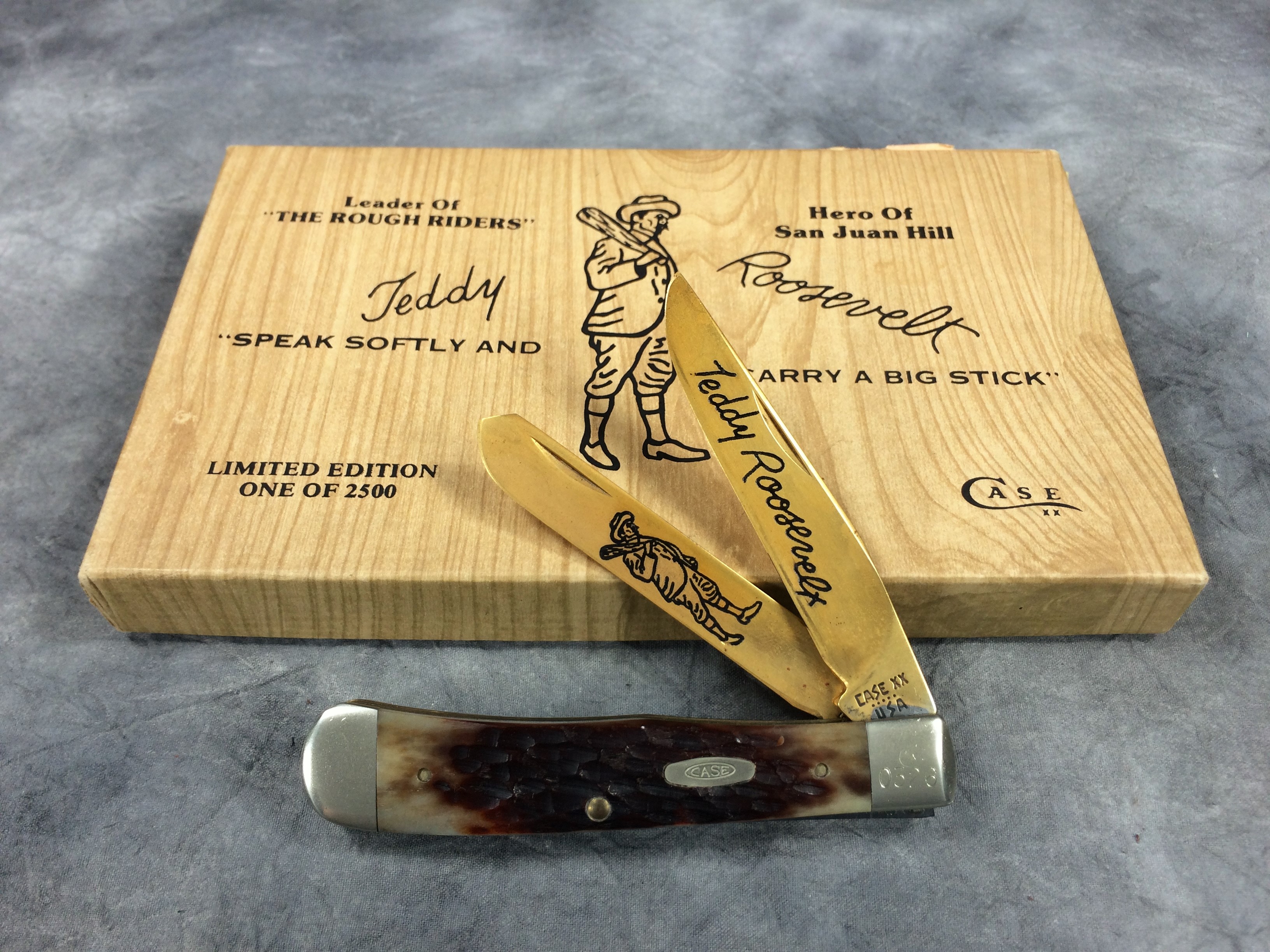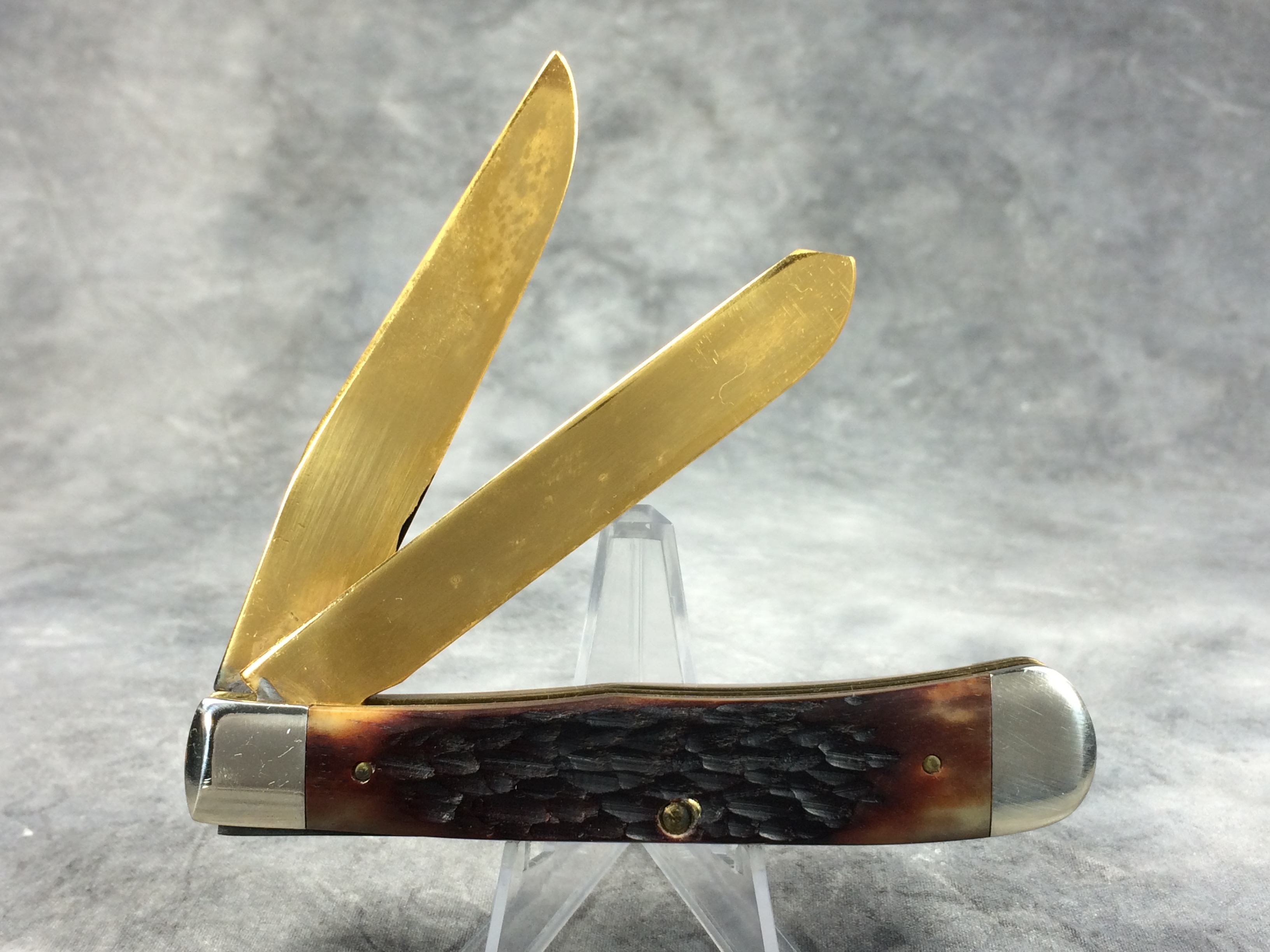 October 26, 2025 - Limited Edition of 2500. 4-1/8 inches closed. 7-3/8 inches open. Made in USA. "CASE XX ***** USA" (5 dot with lightning bolt S) and "6254" tang stamps. Double oval open C "CASE" shield. 24kt Gold Plated blades. Brown jigged bone handles. Nickel Silver bolsters. Brass liner.