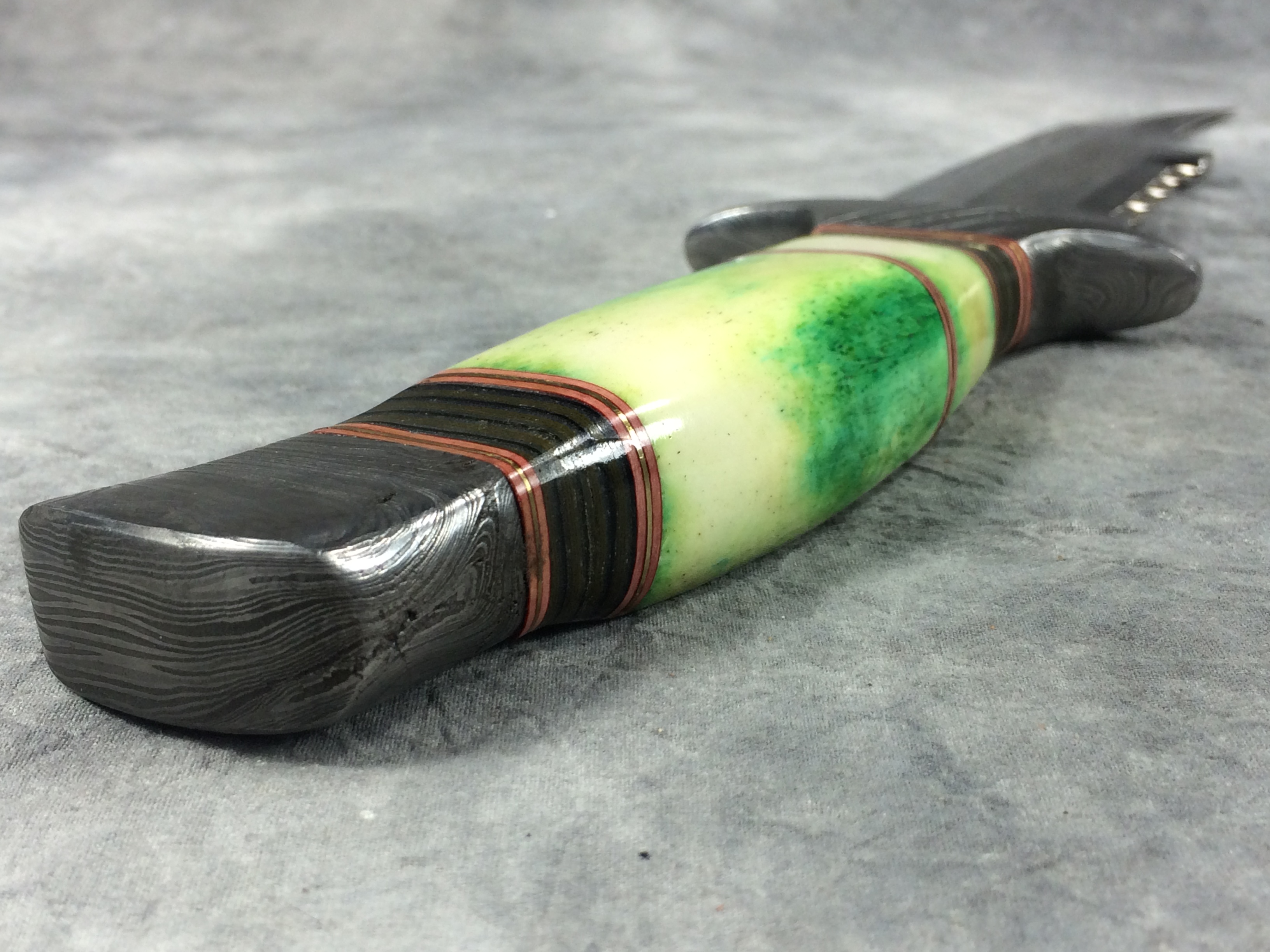 You have: OZAIR Custom Handmade 14-1/4" Green Bone Damascus Guard & Pommel Bowie Knife