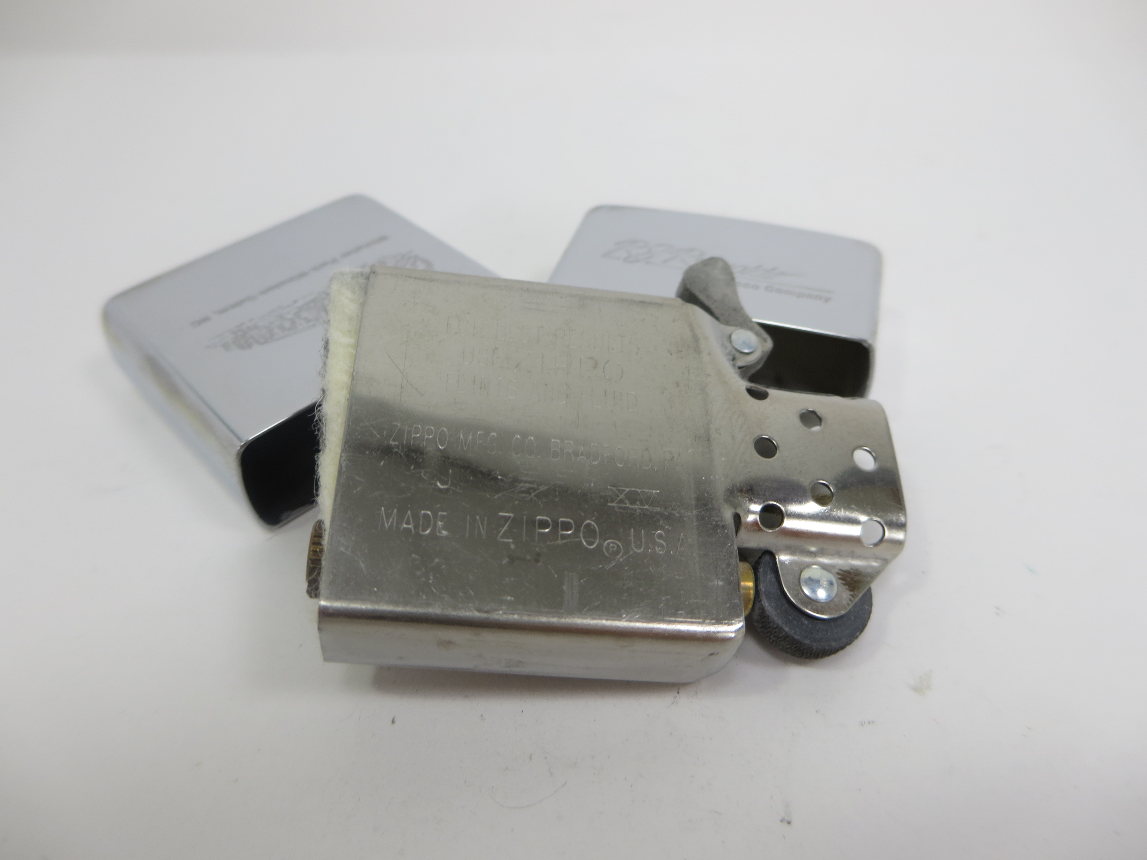 December 25, 2025 - ZIPPO R.J. Reynolds lighter circa 1999. Polished Chrome finish over solid Brass. Standard size 1-7/16 inches wide by 2-1/4 inches high. Bottom of lighter reads: K Zippo XV Bradford, PA. Made in U.S.A. Includes original J/XV insert.