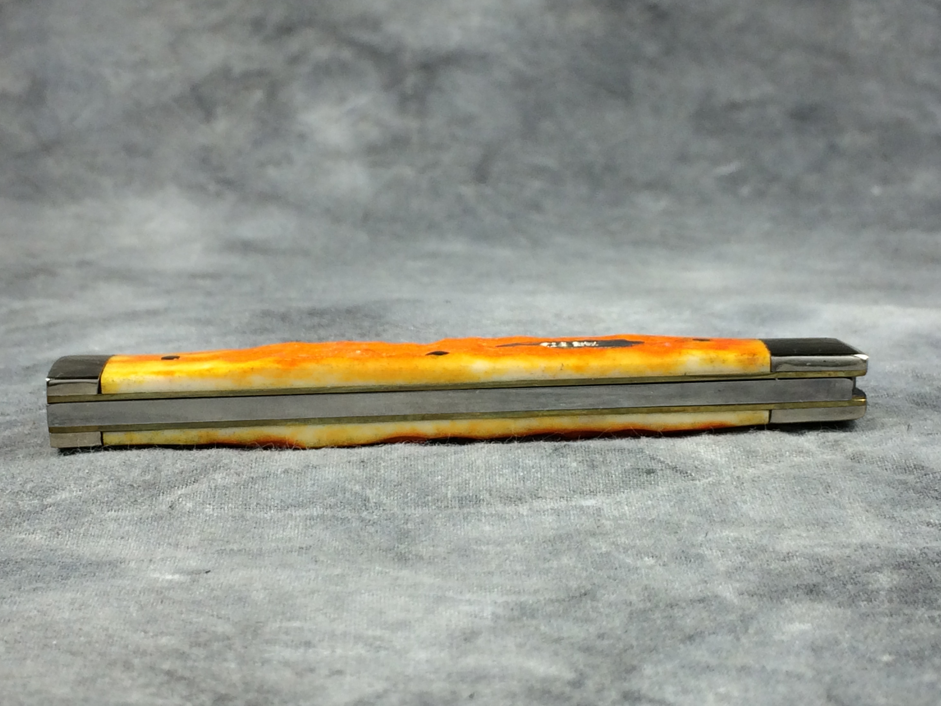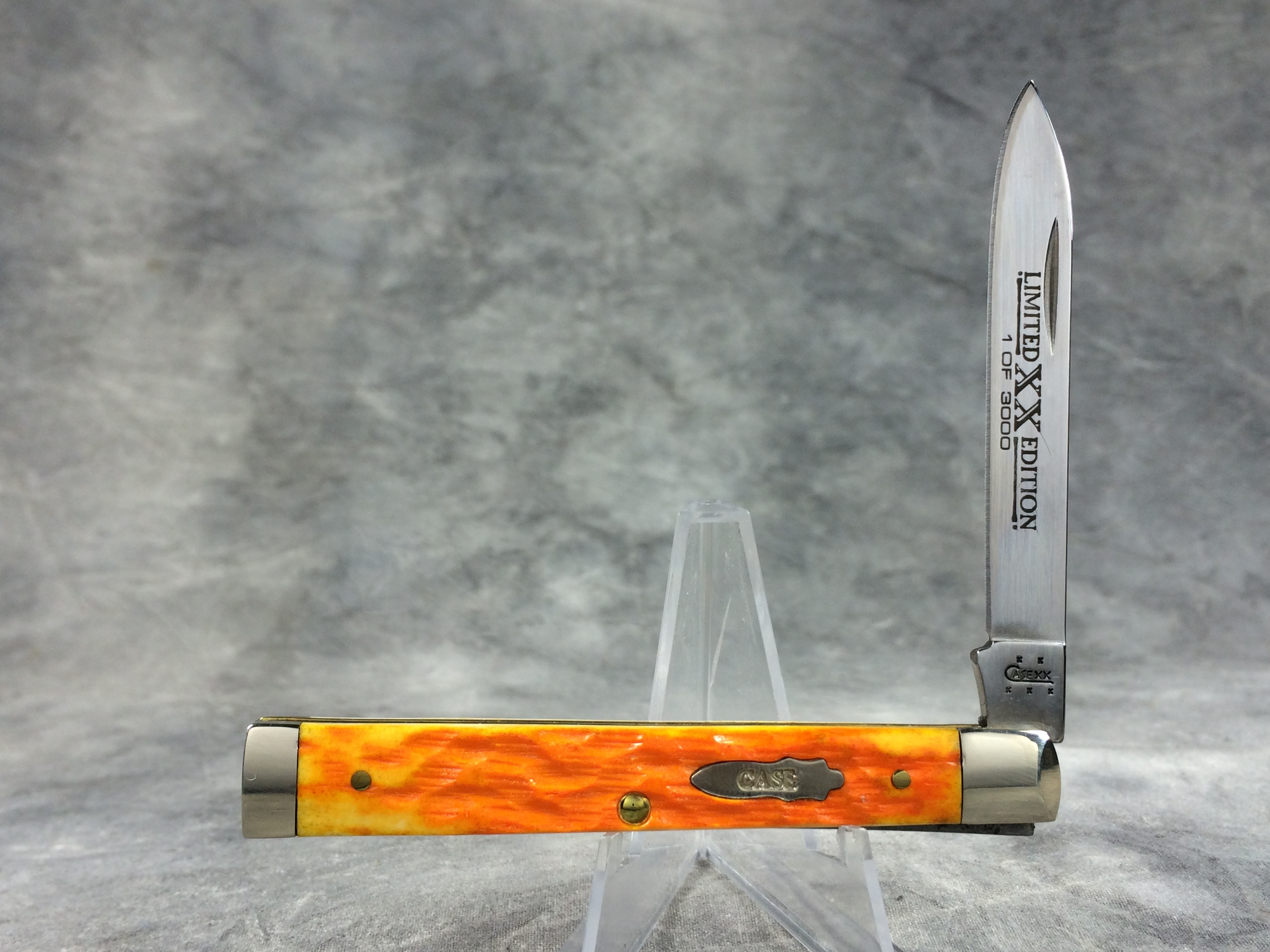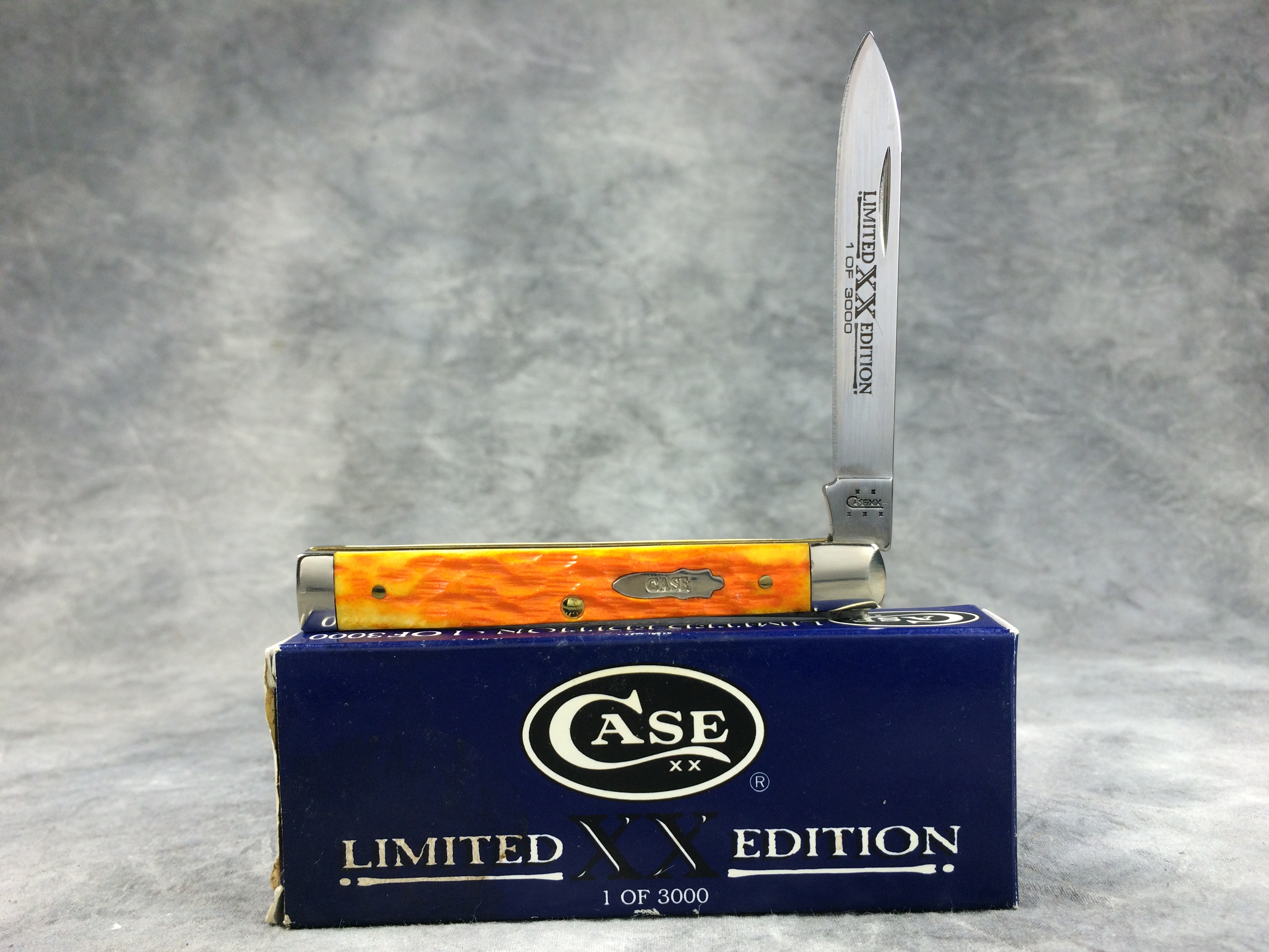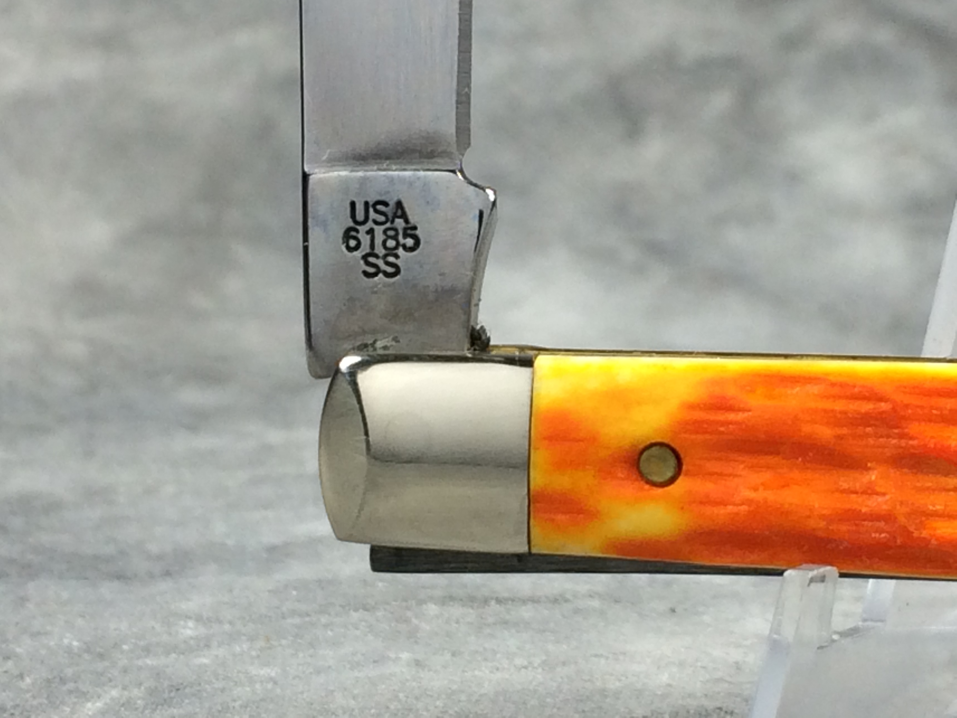 October 26, 2025 - Limited Edition 1 of only 3000 produced. 3-5/8 inches closed. 6-5/8 inches open. Made in USA. "    x x    CASE XX  x x x   " and "USA 6185 SS" tang stamps. Closed C "CASE" bomb shield. TruSharp Surgical Steel blades. Jigged orange peel bone handle. Nickel Silver bolsters. Brass liner. With original box and paperwork.