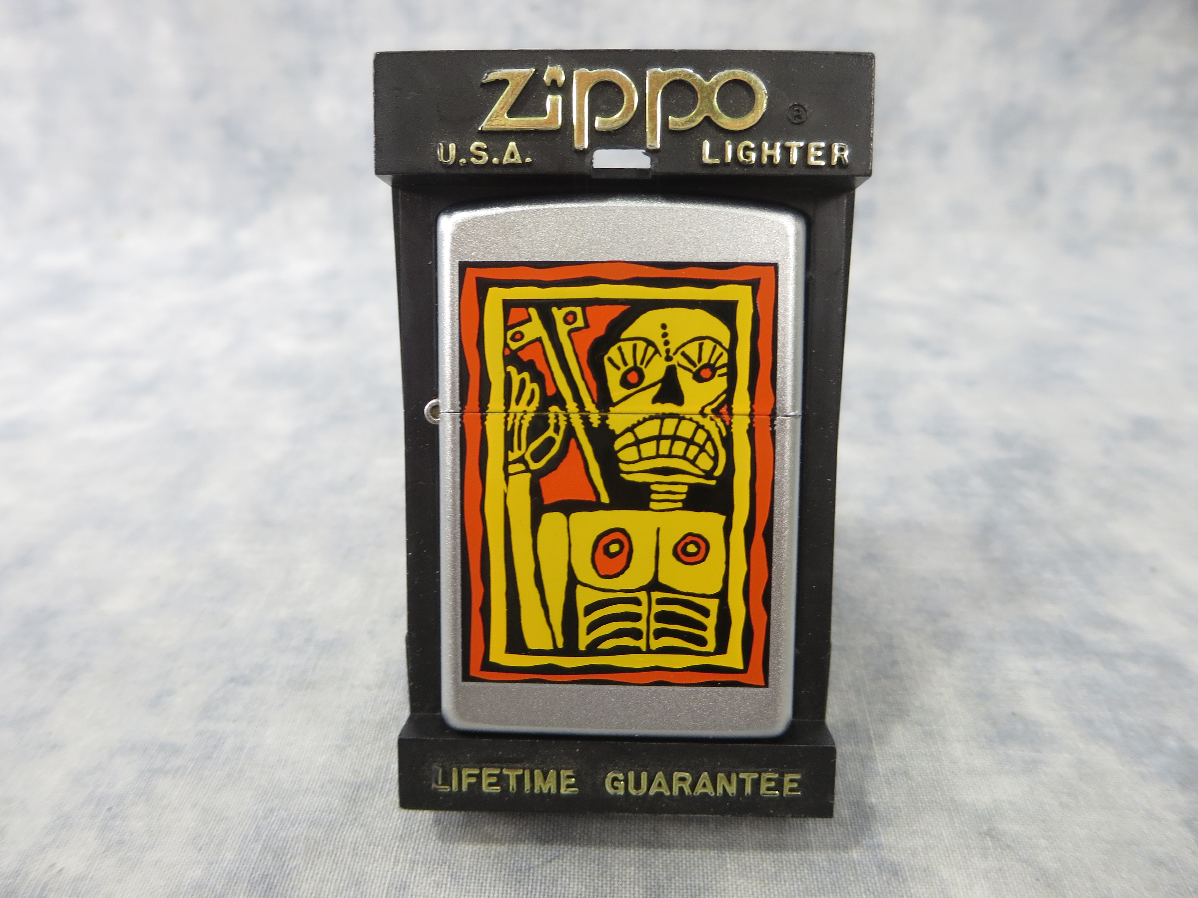 You have: SKELETON WITH SWORD Satin Chrome Lighter (Zippo, 2006)