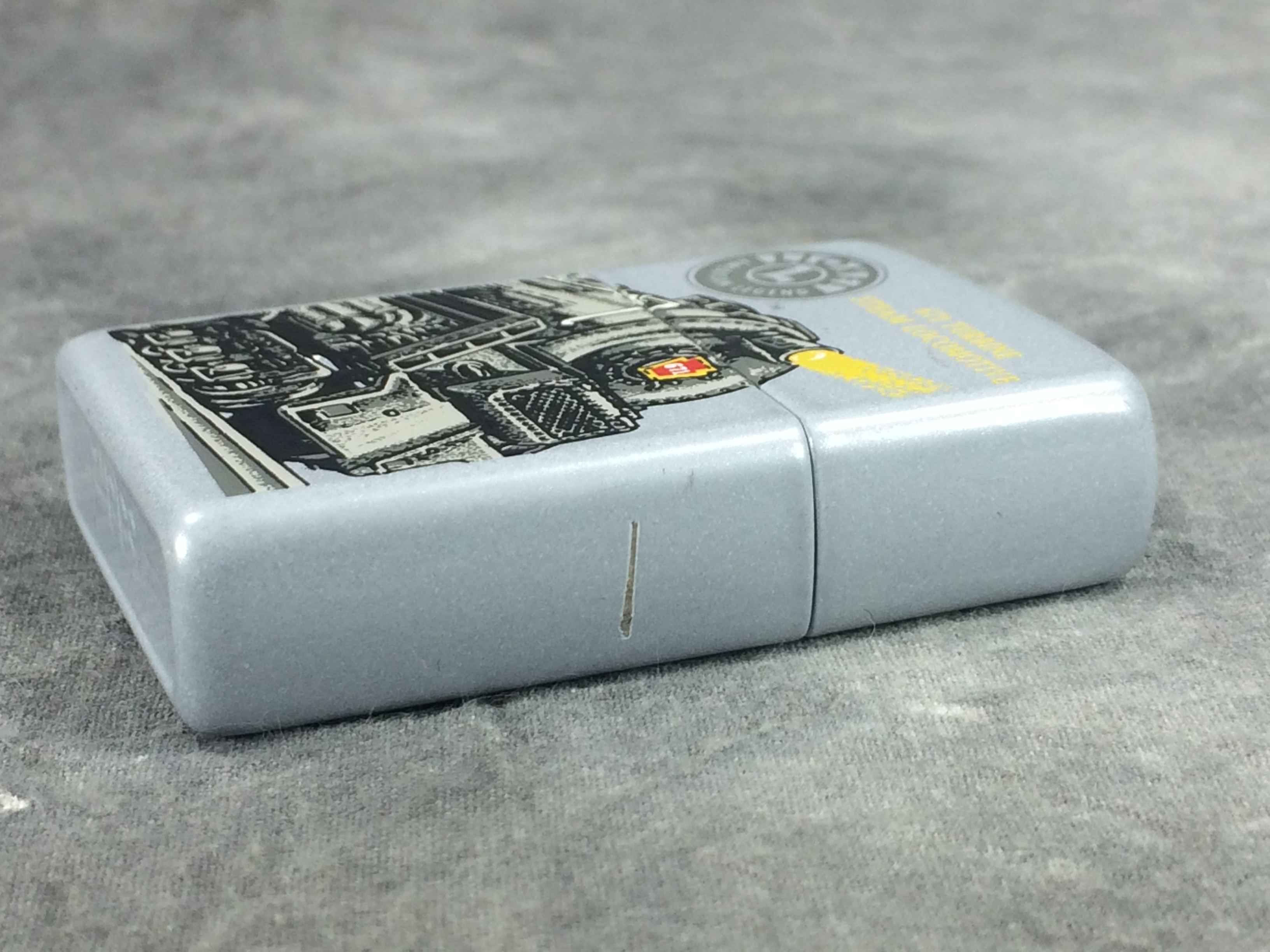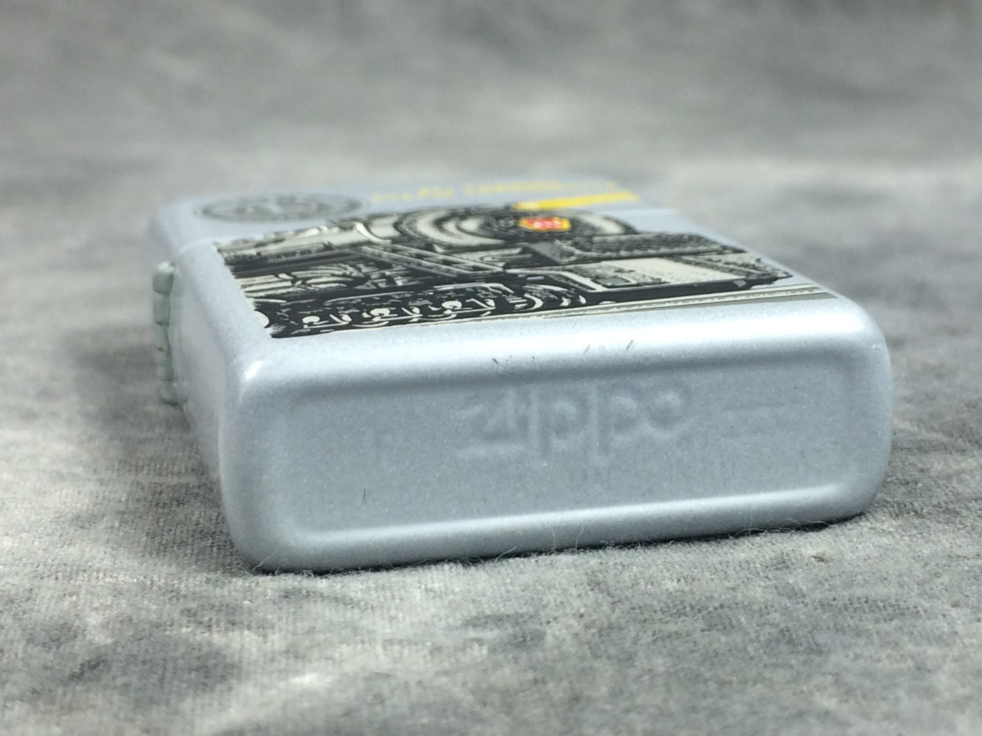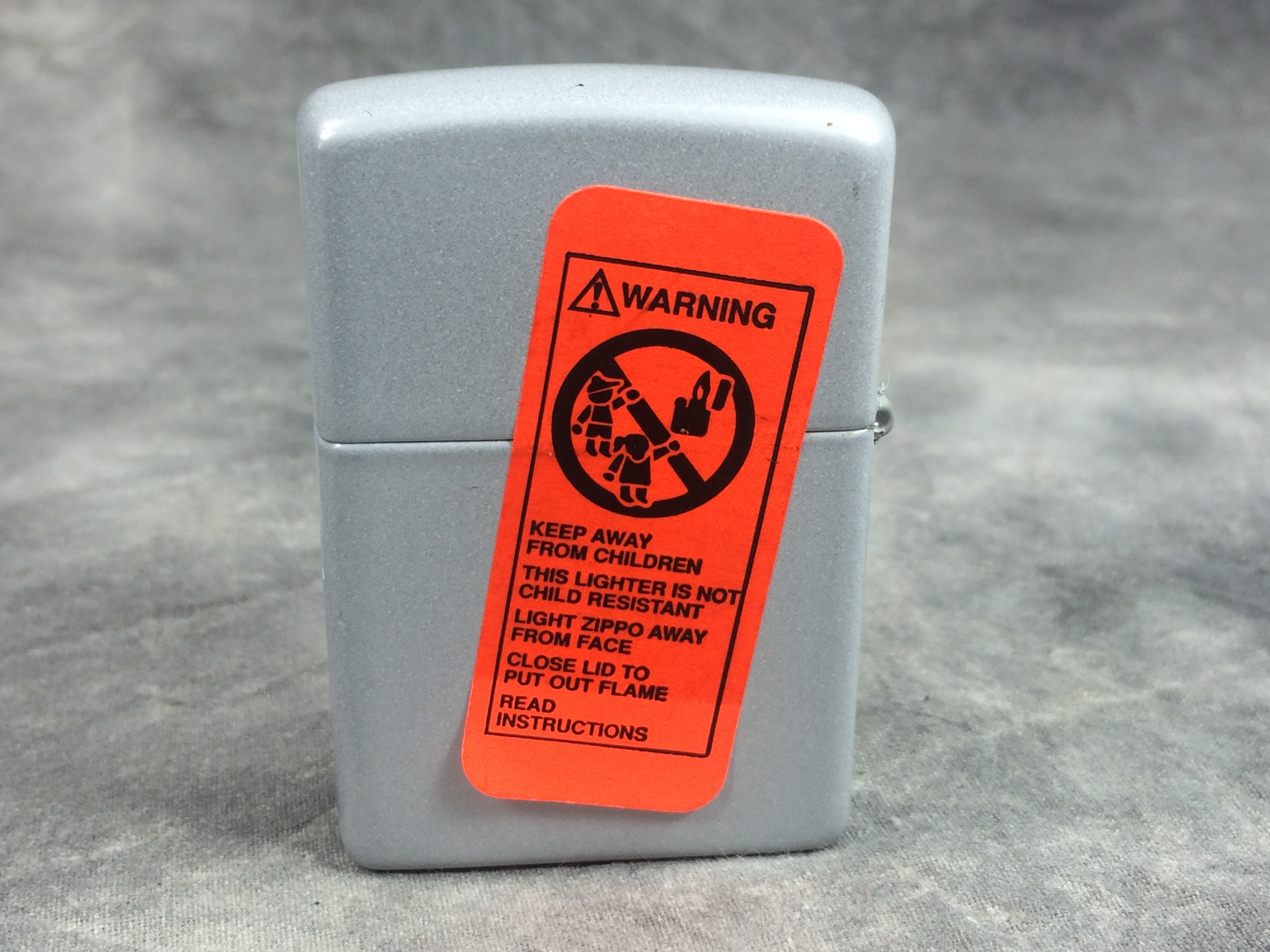 February 03, 2026 - ZIPPO lighter circa 1999. Gray / silver matte finish over solid Brass with color emblem. Standard size 1-7/16 inches wide by 2-1/4 inches high. Bottom of lighter reads: F Zippo XV Bradford, PA. Made in U.S.A. Includes original, unfired insert.