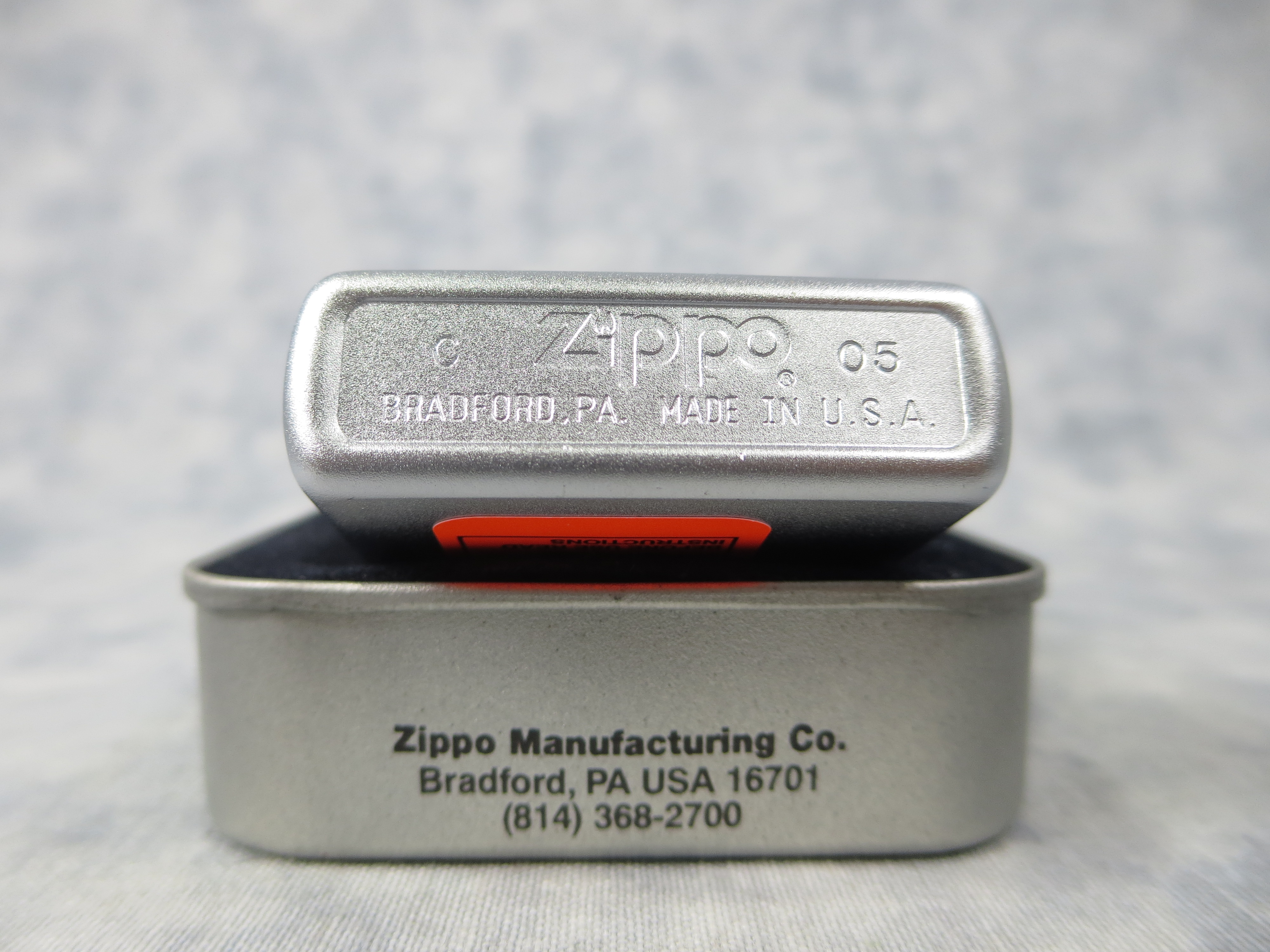 December 25, 2025 - ZIPPO Bettie Page Cheetah Swimsuit Lighter manufactured in 2005. Satin Chrome Finish over solid Brass with color printed front design. Standard size 1-7/16 inches wide by 2-1/4 inches high. Bottom of lighter reads: C Zippo 05 Bradford, PA. Made in U.S.A. Includes original, unfired insert.