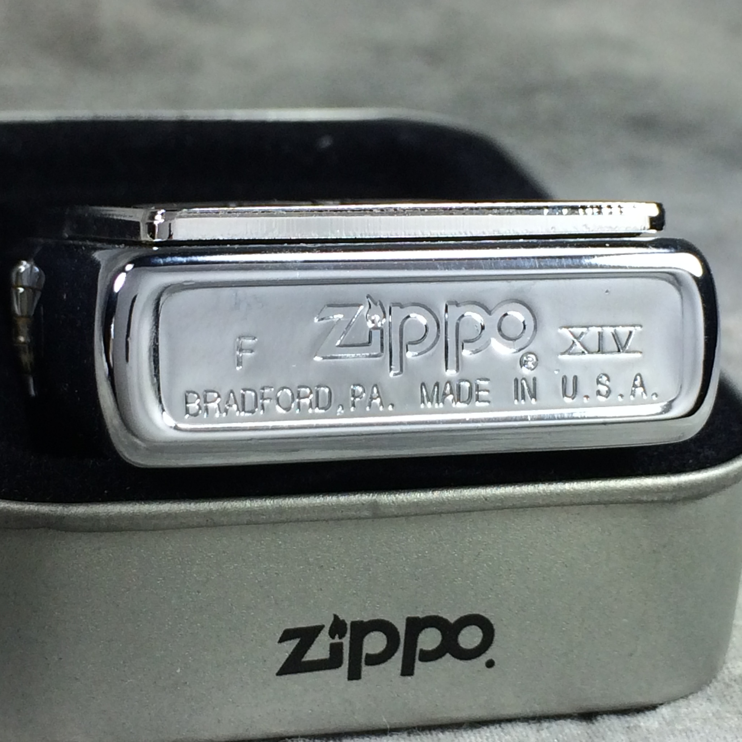 October 05, 2025 - ZIPPO lighter, 1998. Brushed chrome finish over solid Brass. Standard size 1-7/16 inches wide by 2-1/4 inches high. Bottom of lighter reads: F Zippo XIV Bradford, PA. Made in U.S.A. Includes original, unfired insert.