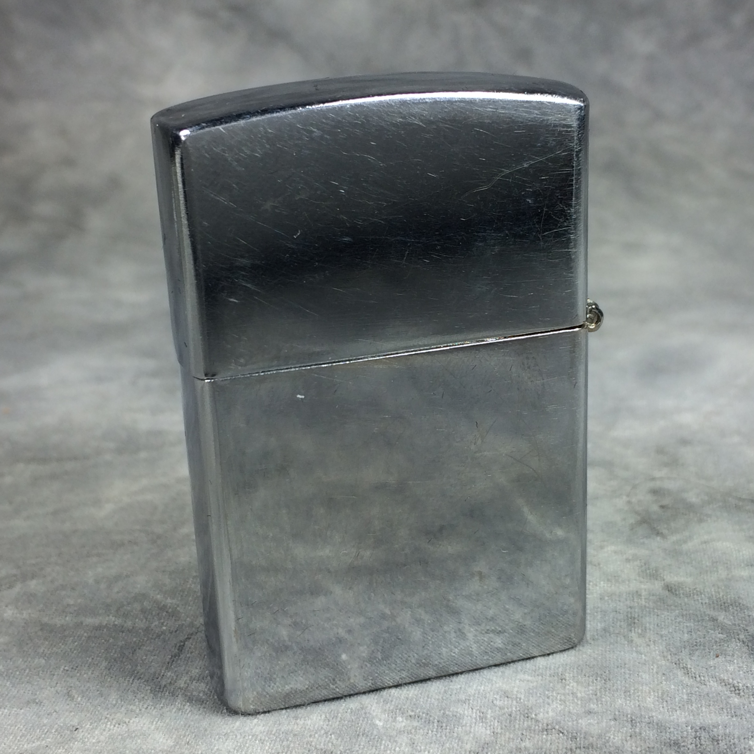 January 14, 2026 - KALAN Lighter, manufactured in 2002. Polished chrome finish. Standard size 1-7/16 inches wide by 2-1/4 inches high. Bottom of lighter reads: (c) KALAN MADE IN CHINA. Not sealed.