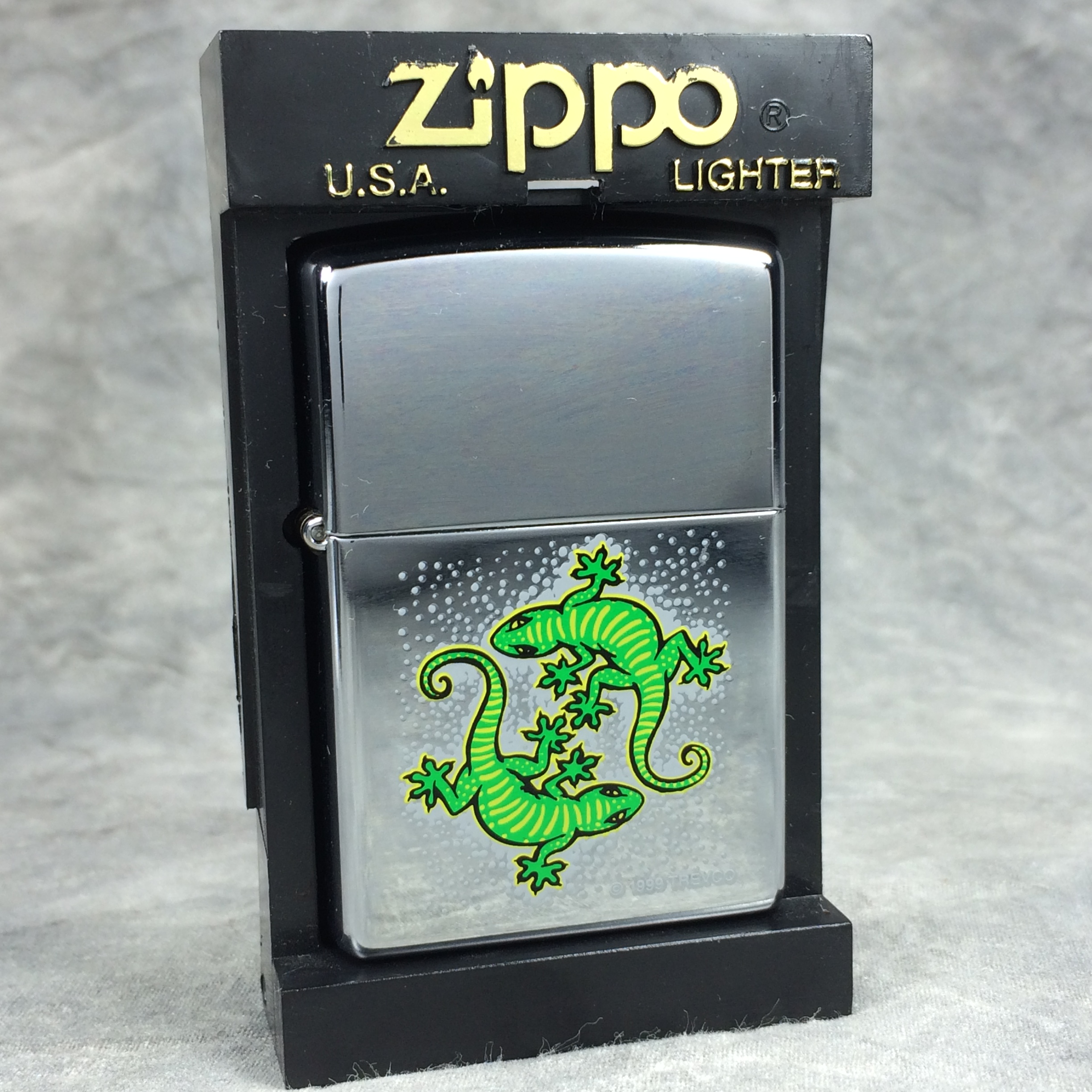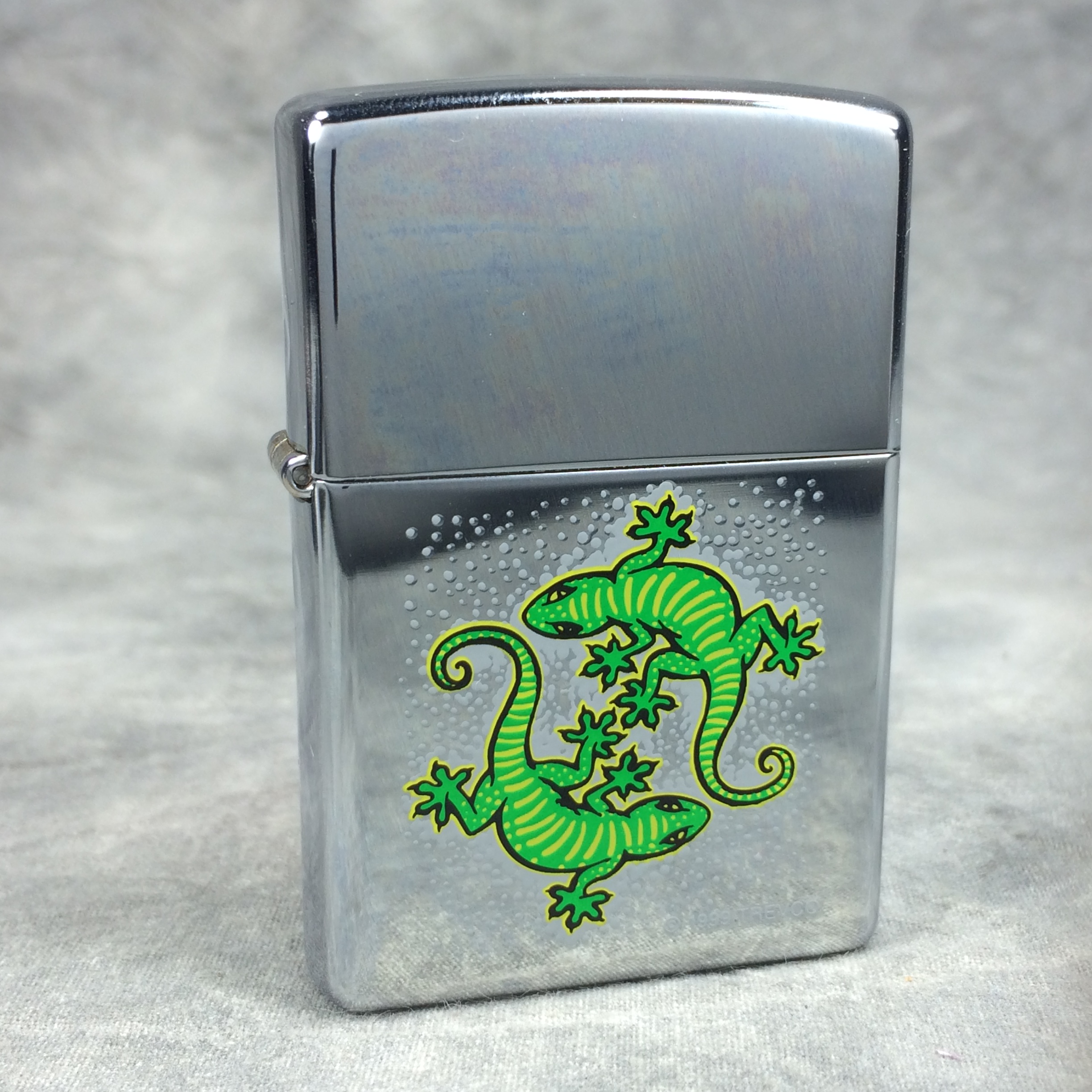 You have: TREVCO TWO GECKOS Polished Chrome Lighter (Zippo 250, 2001)