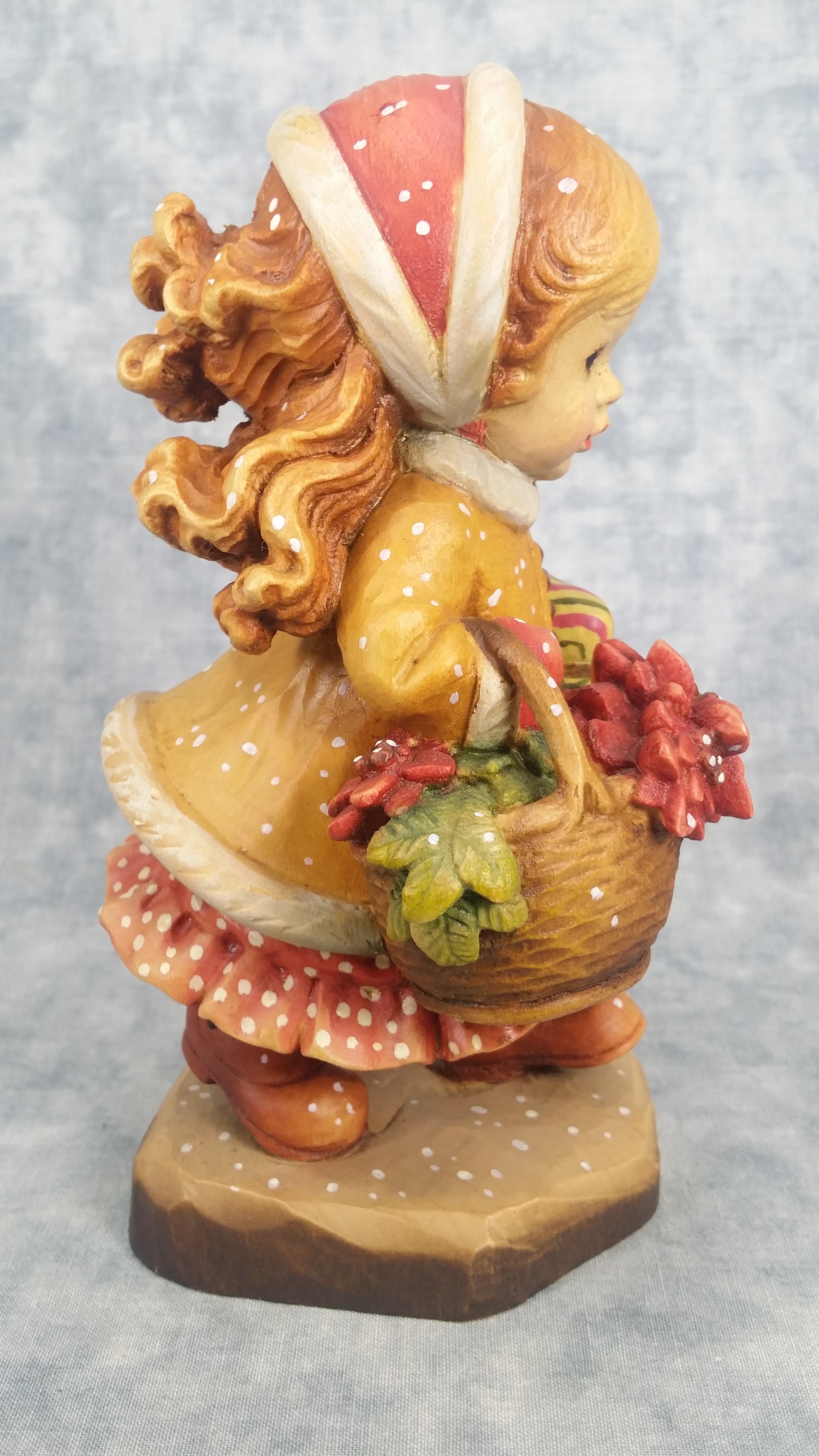 All items are hand painted. Trained painters use water colors and the finest brushes, as they allow the wood grain to remain visible. A specific follow-up treatment lends these figures the originality of a genuine and antique woodcarving.