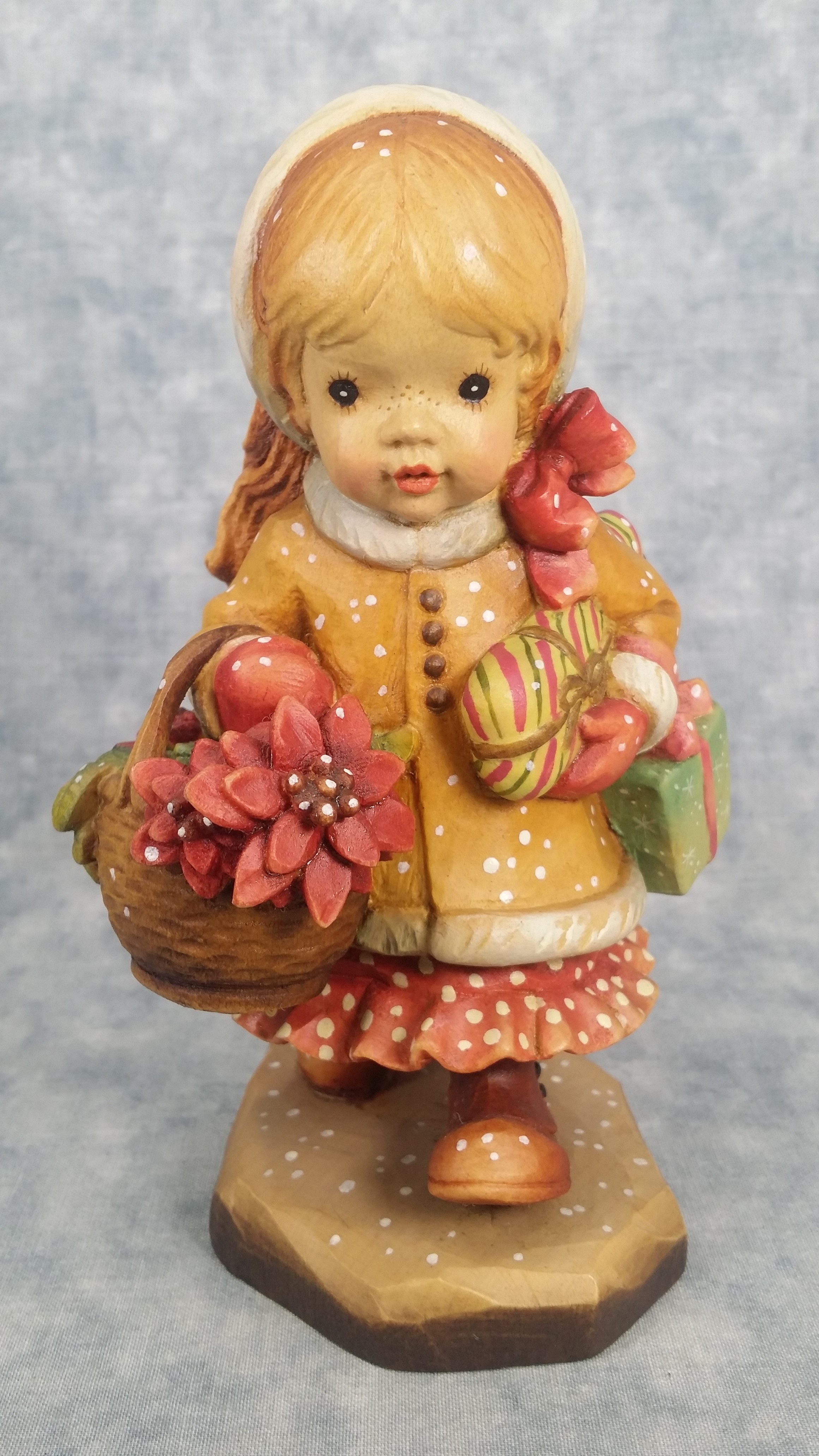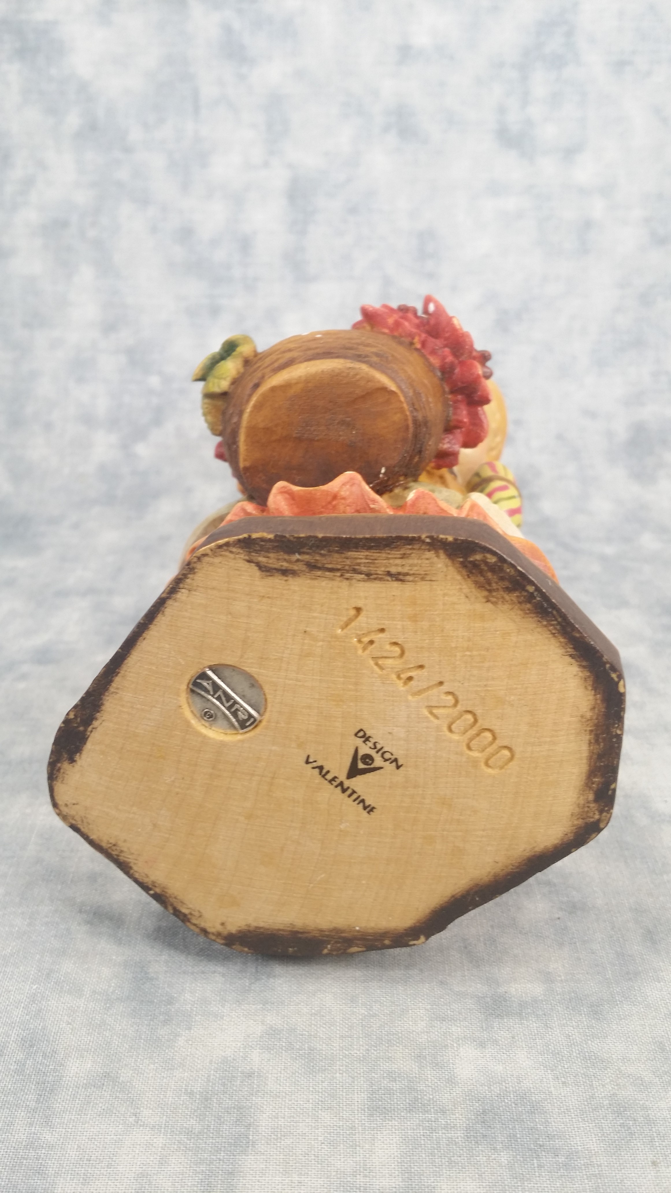 February 03, 2026 - Exact size: 6-1/2 inches tall. Sarah Kay Collection, Design Valentine. Bottom of base is stamped "Design Valentine" and incised with the limited edition number: xxxx/2000. Side of base is incised with the "Sarah Kay" signature. Anri medal disk trademark (used from 1982-1988) is present on bottom of base as a mark of origin and genuinity. Made in Italy.