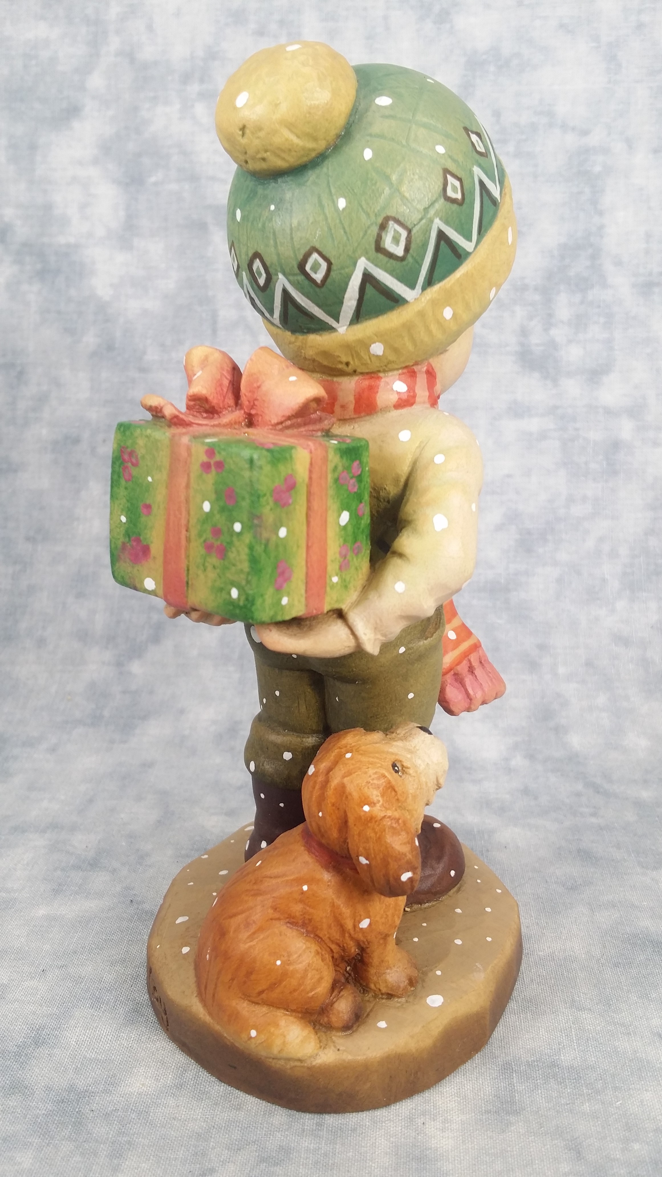 All items are hand painted. Trained painters use water colors and the finest brushes, as they allow the wood grain to remain visible. A specific follow-up treatment lends these figures the originality of a genuine and antique woodcarving.