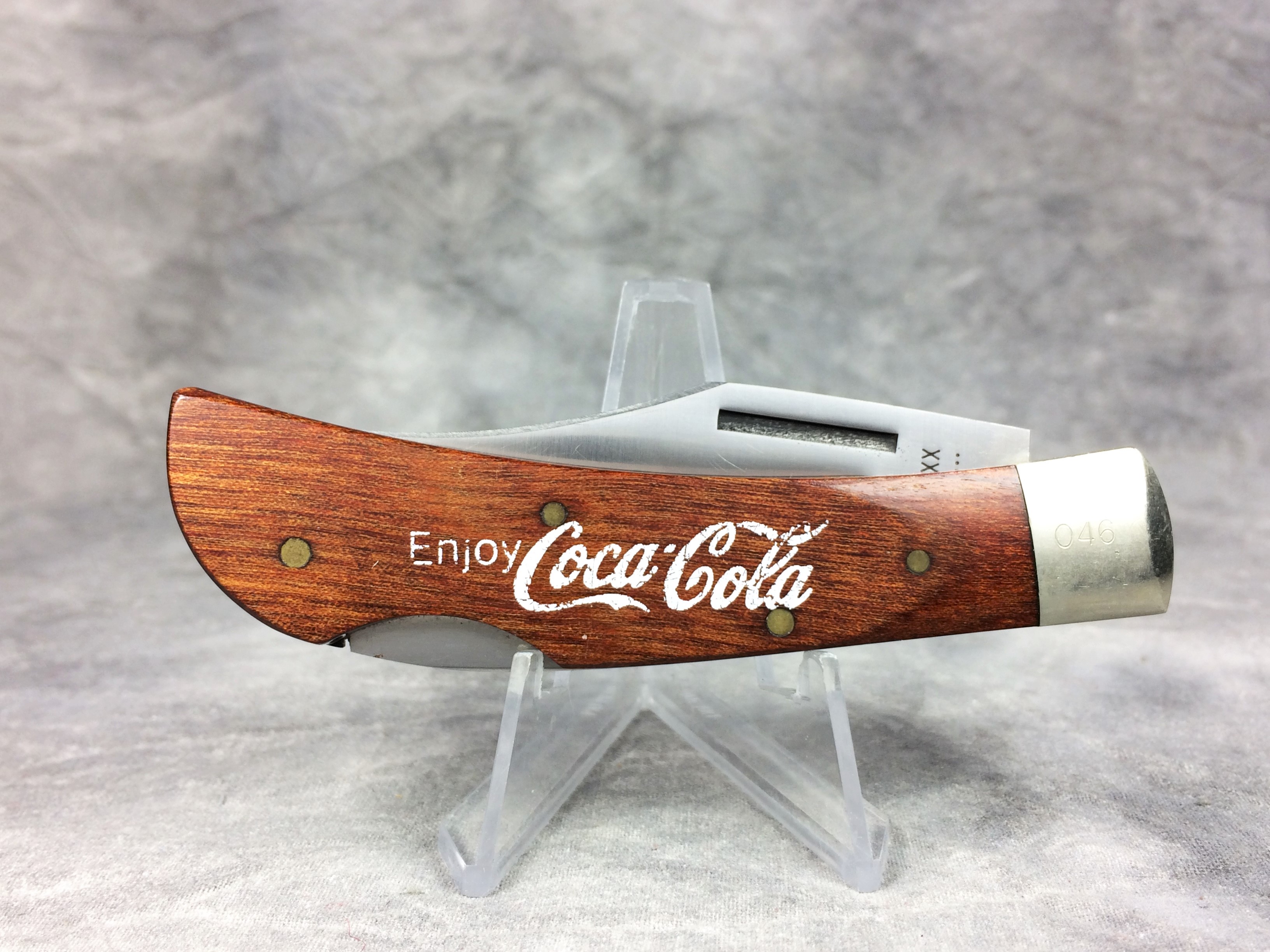 April 05, 2026 - Limited Edition. 3-5/8 inches closed. 6-1/4 inches open. Made in USA. "CASE XX *****SS**** USA" (9 dot with lightning bolt S) and "P1051-1/2 L SSP" tang stamps. Stainless Steel blade. Pakkawood handle etched "Enjoy Coca-Cola" and "GAINESVILLE, GEORGIA 1981". Nickel Silver bolsters. Front bolster etched with serial. Brass liner.