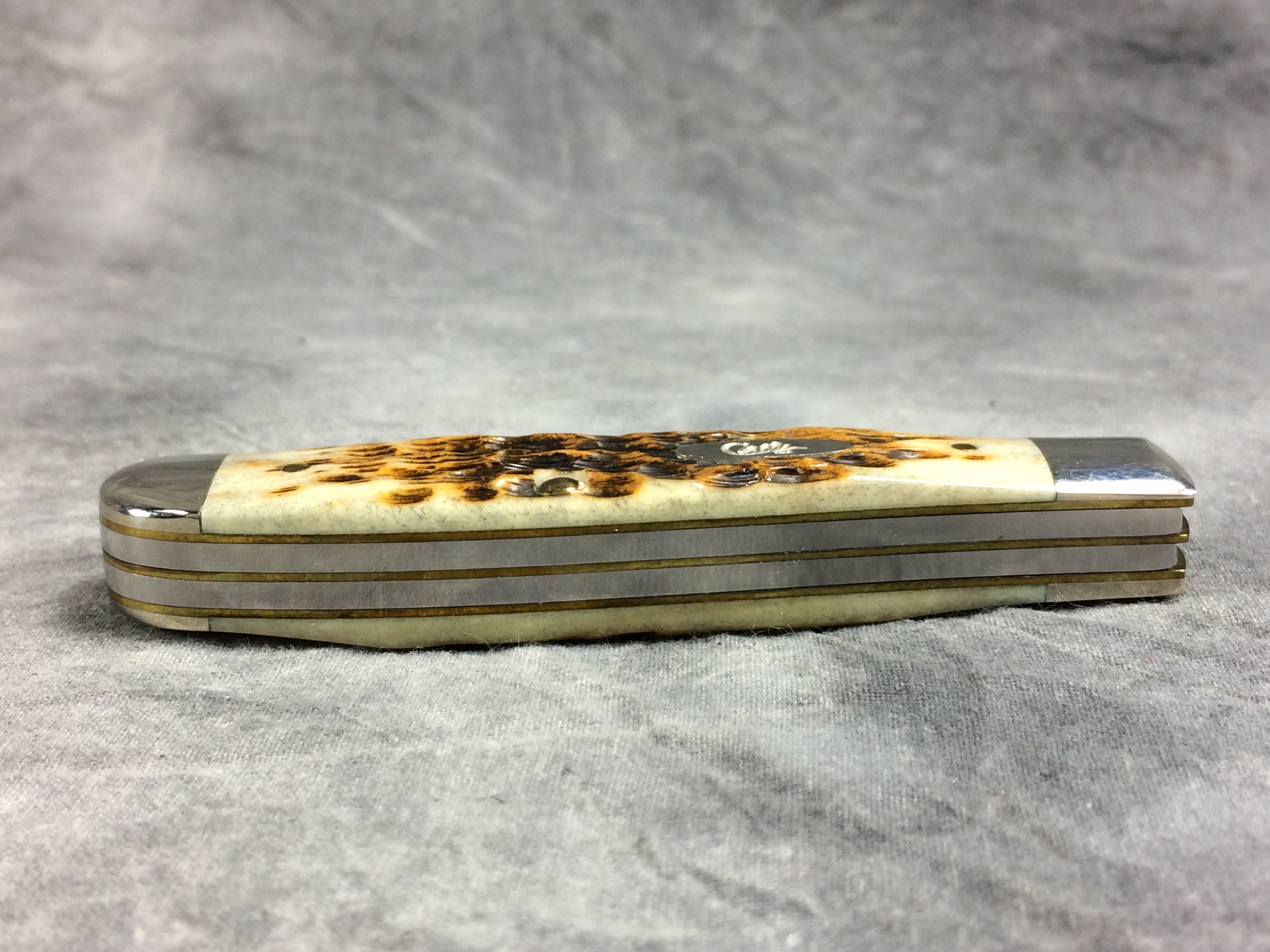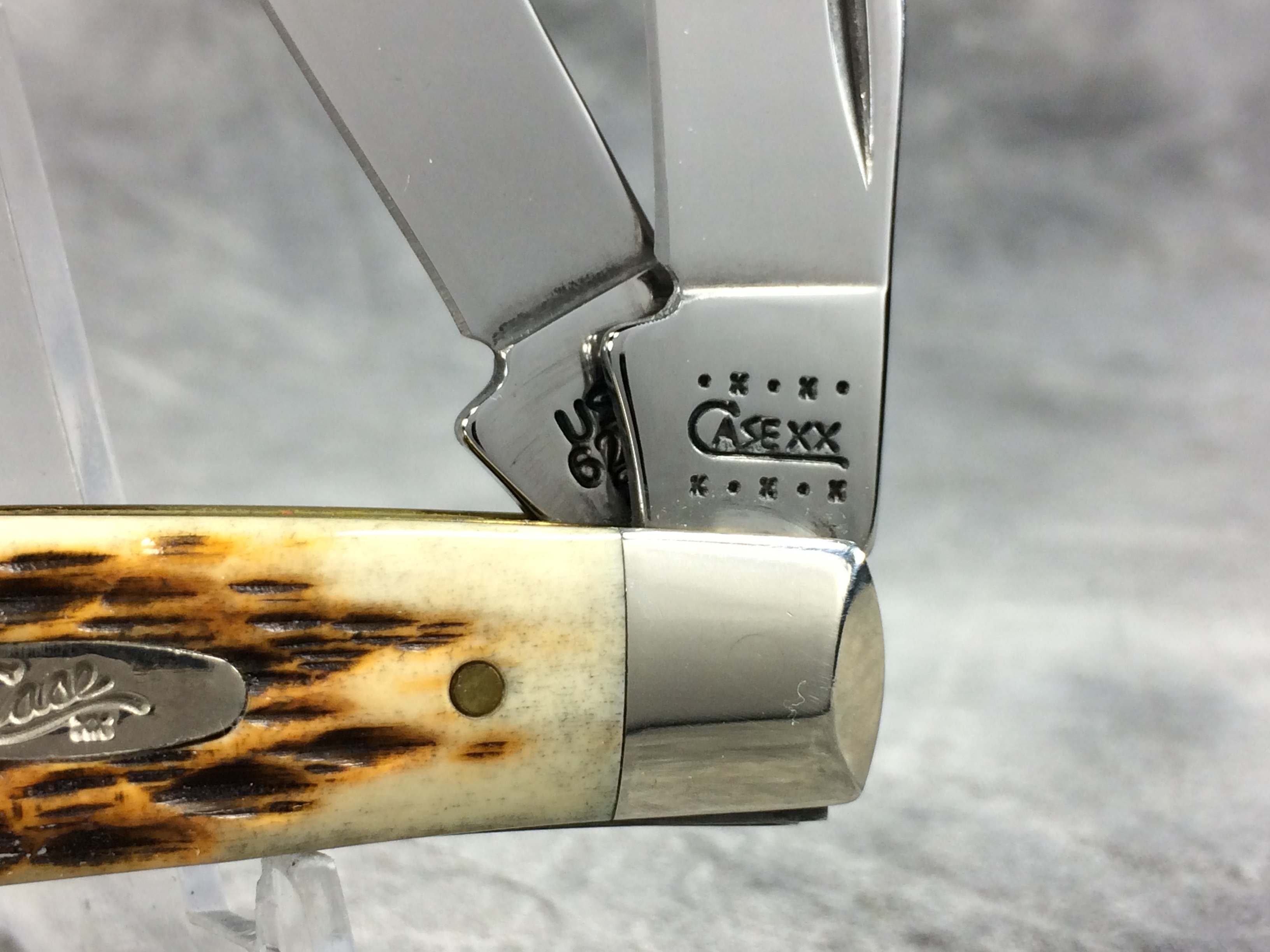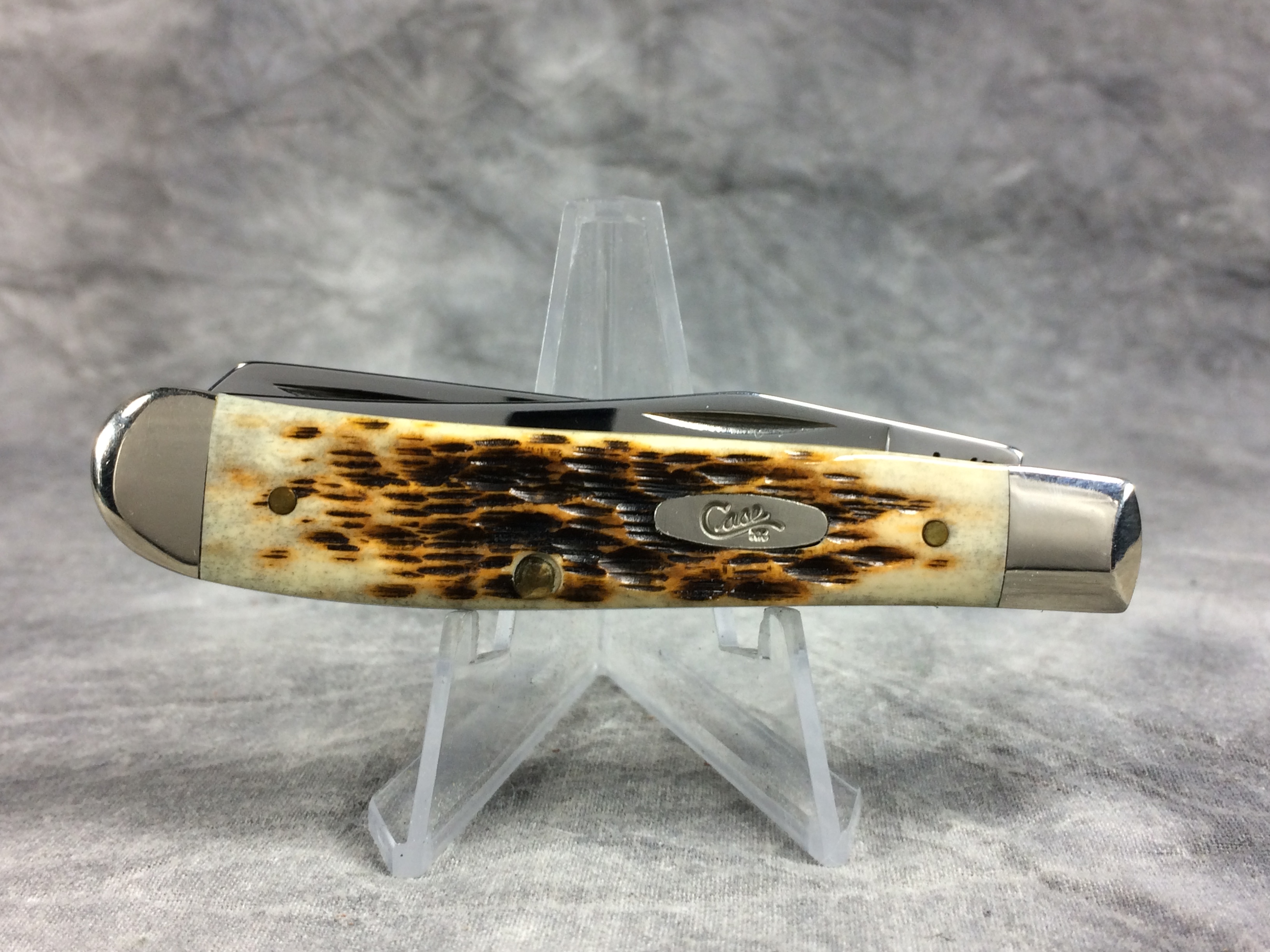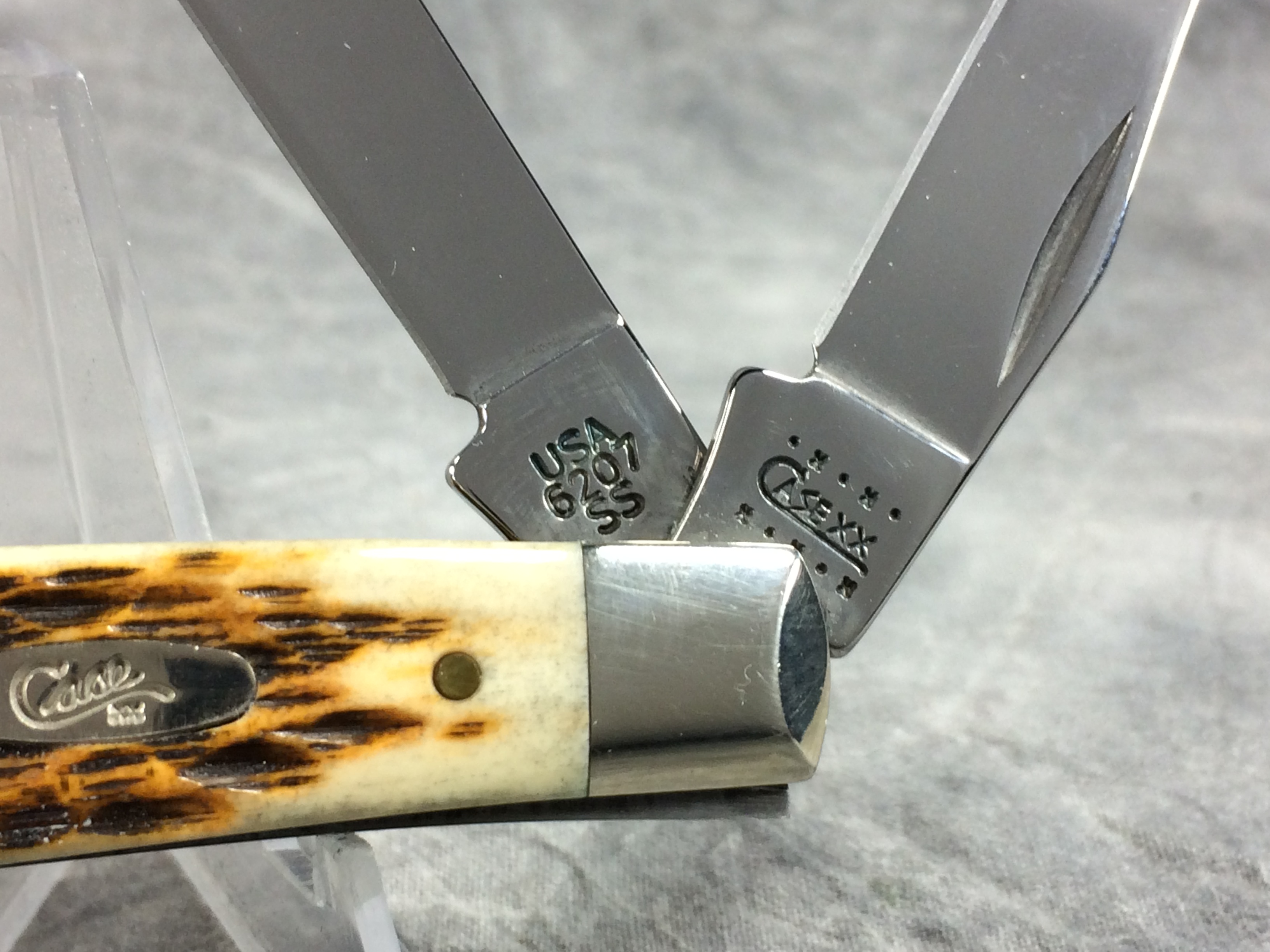 October 26, 2025 -   3-1/2 inches closed. 6-1/8 inches open. Made in USA. ' *x*x*  CASE XX  x*x*x  ", "USA", and "USA 6207 SS" tang stamps. Oval long-C script "Case xx" shield. Stainless Steel blades. Amber Peachseed Jigged Bone handle. Nickel Silver bolsters. Brass liner.