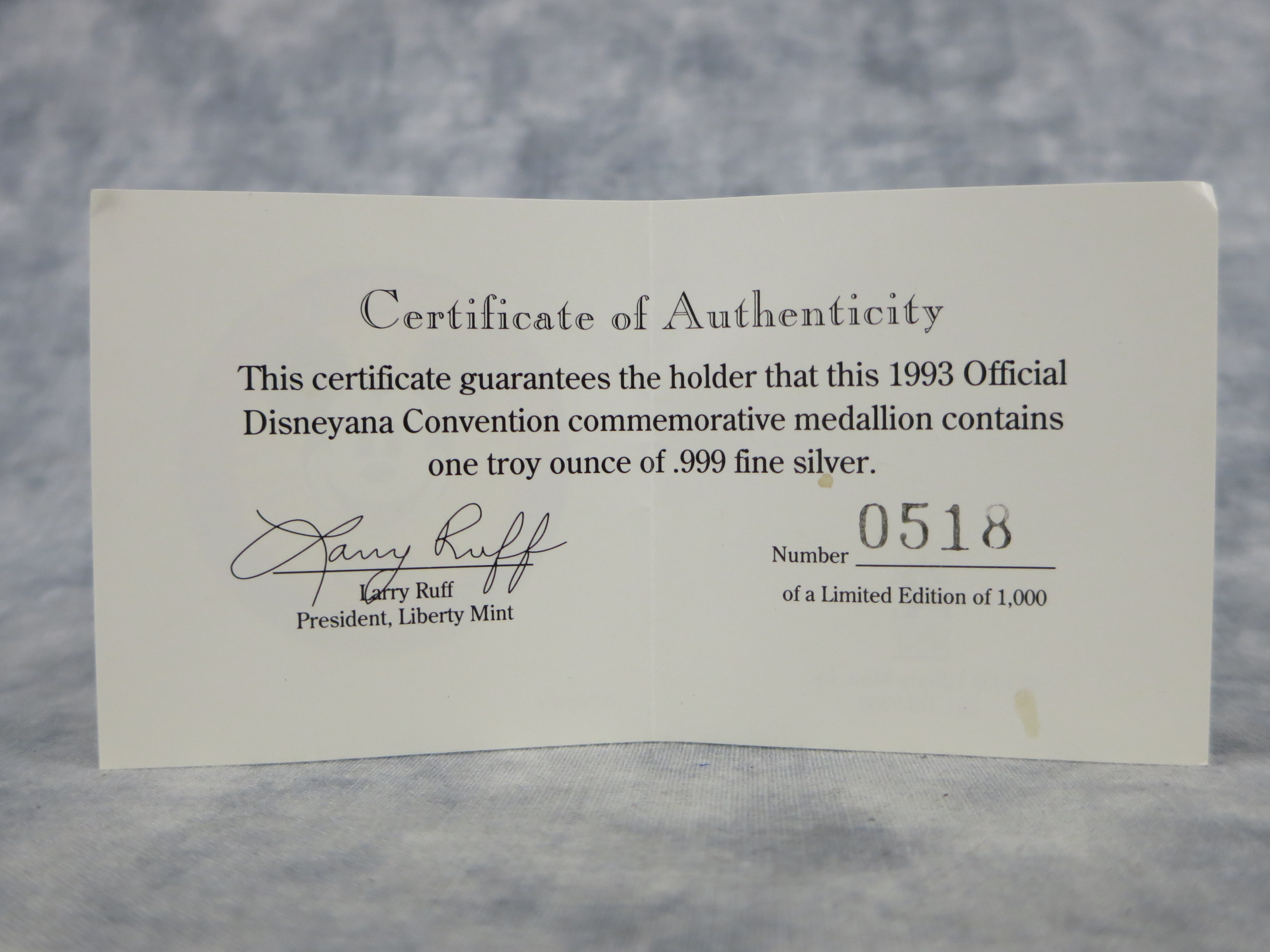 You have: 1993 Liberty Mint Official Disneyana Convention Commemorative Silver Medal