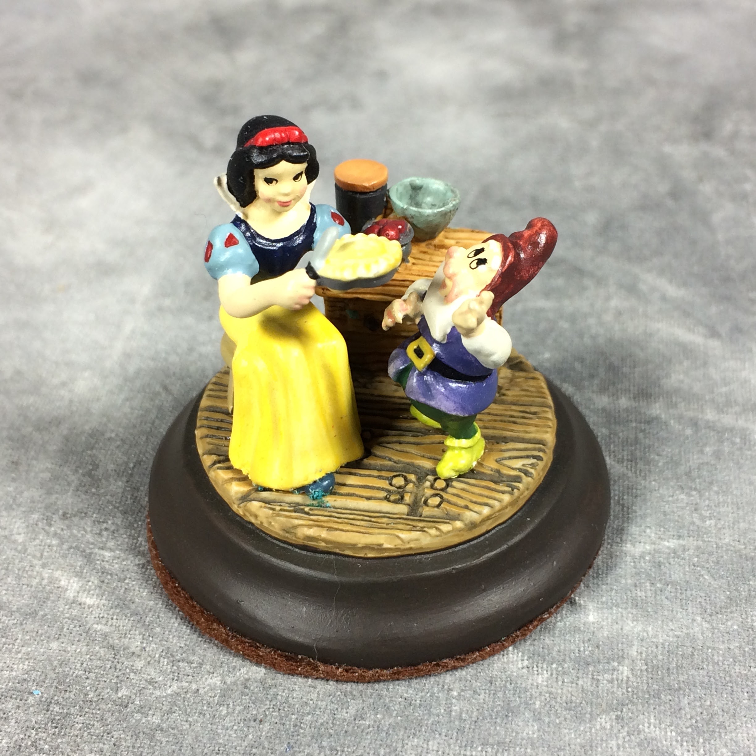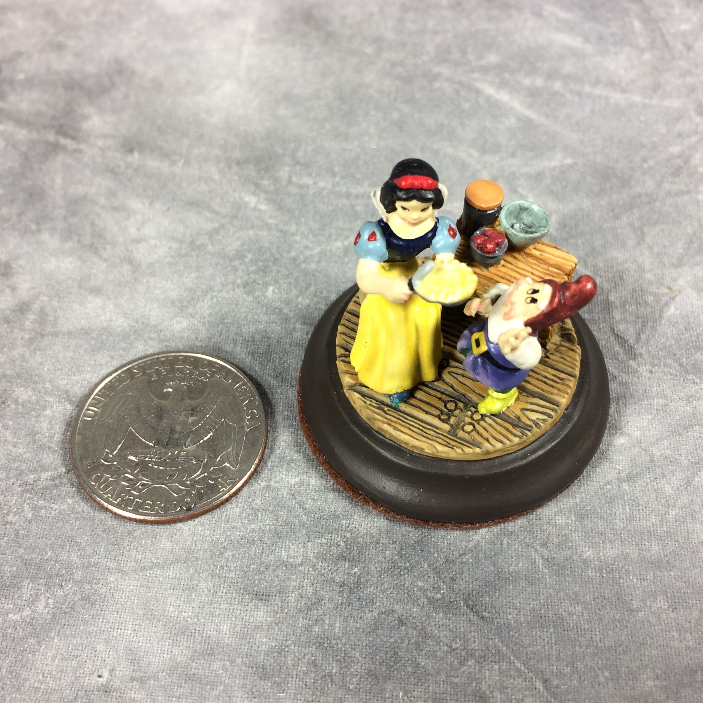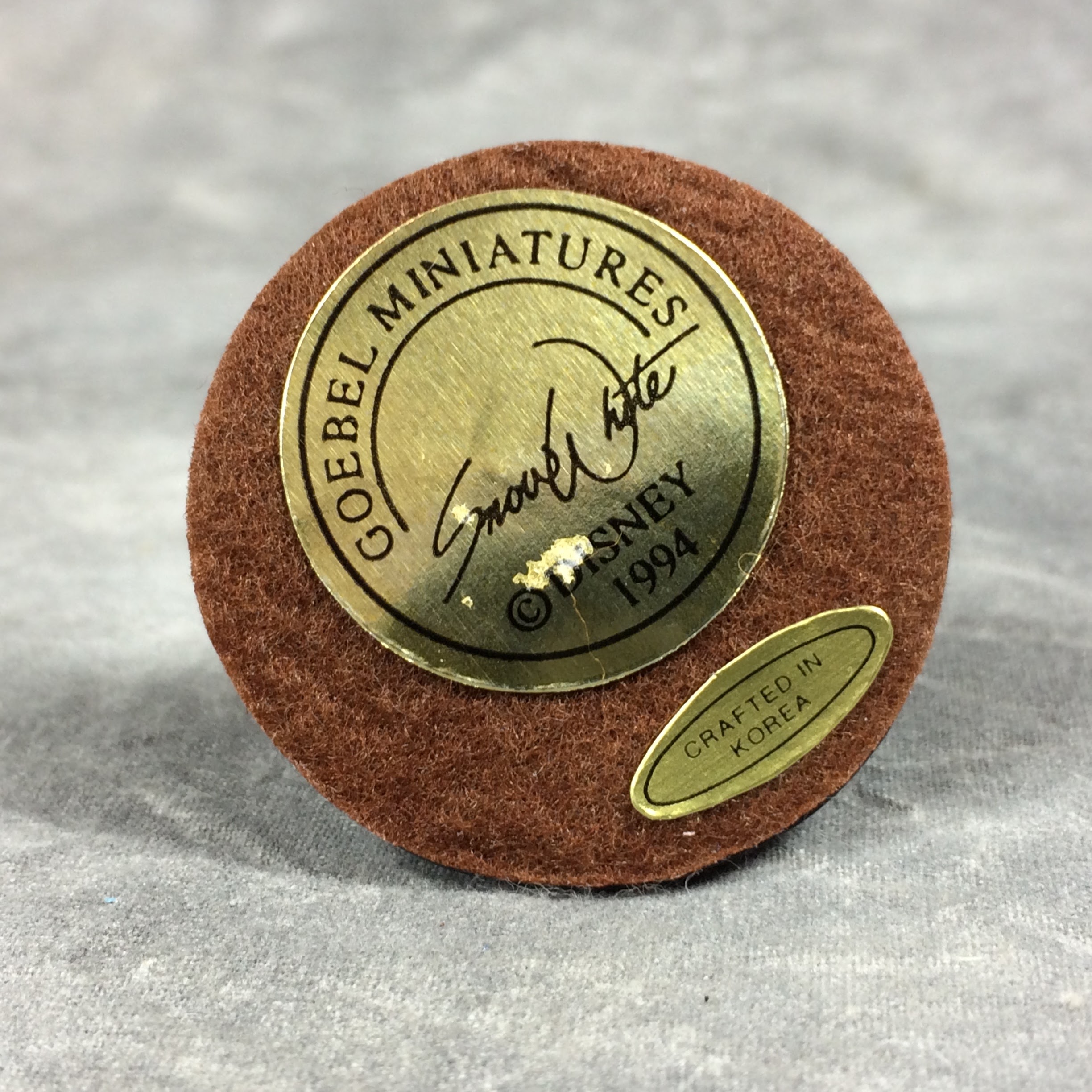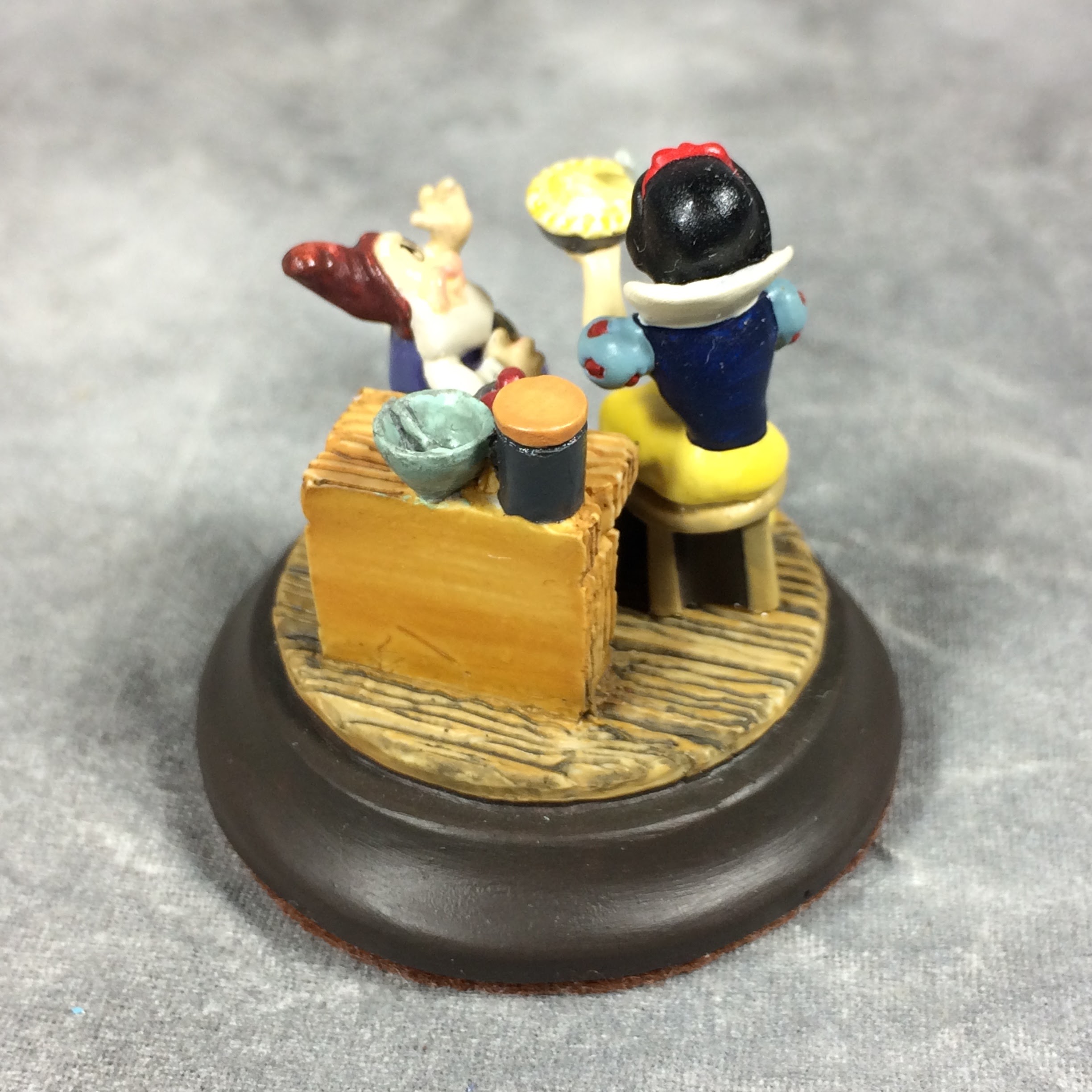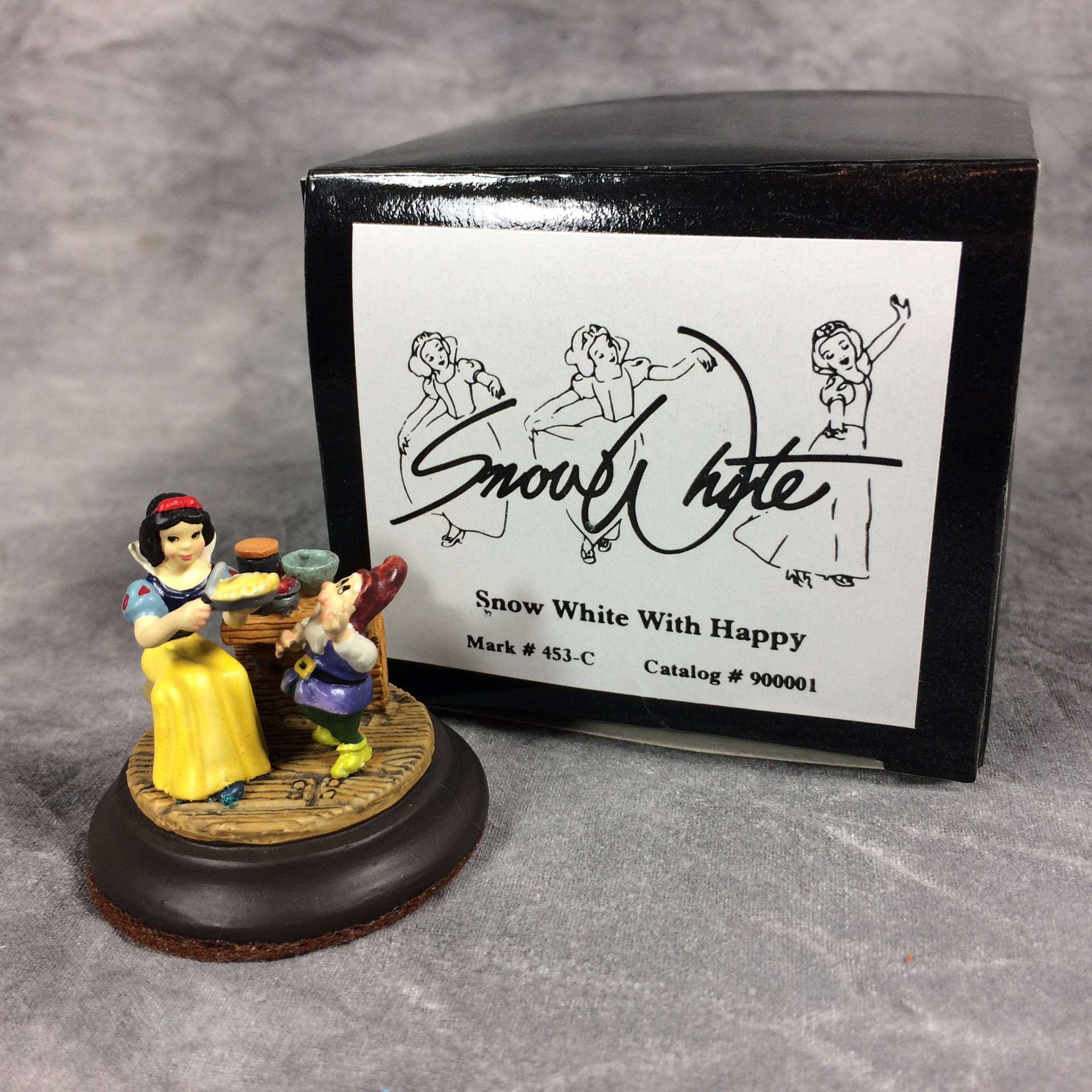 December 14, 2025 - Goebel Miniatures, mark #453-C. 1-3/8 inch, hand-painted miniature figurine of Disney's SNOW WHITE WITH HAPPY. Non-slip, felt-covered base. Sticker on base reads: GOEBEL MINIATURES / Snow White / c DISNEY / 1994. Includes original box.