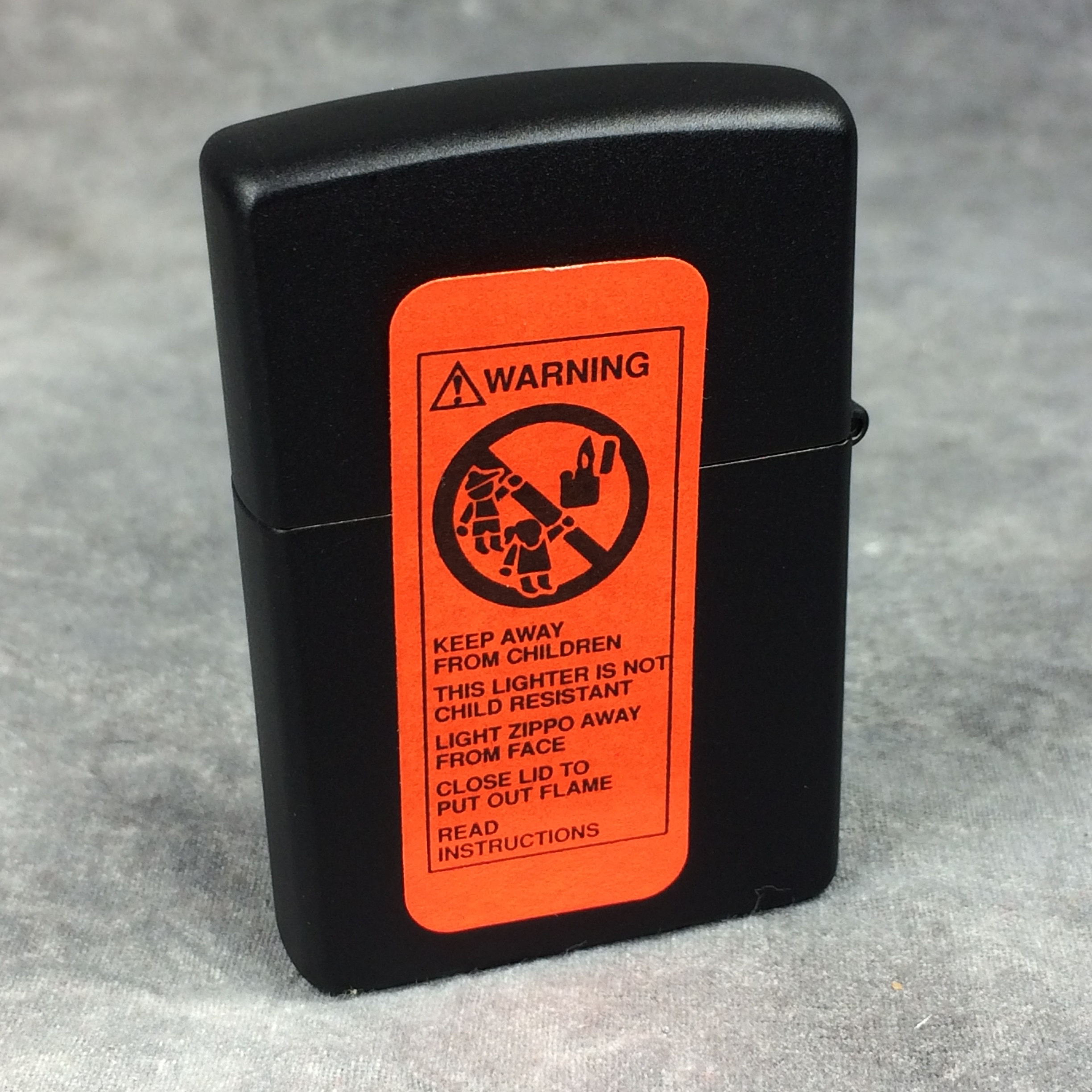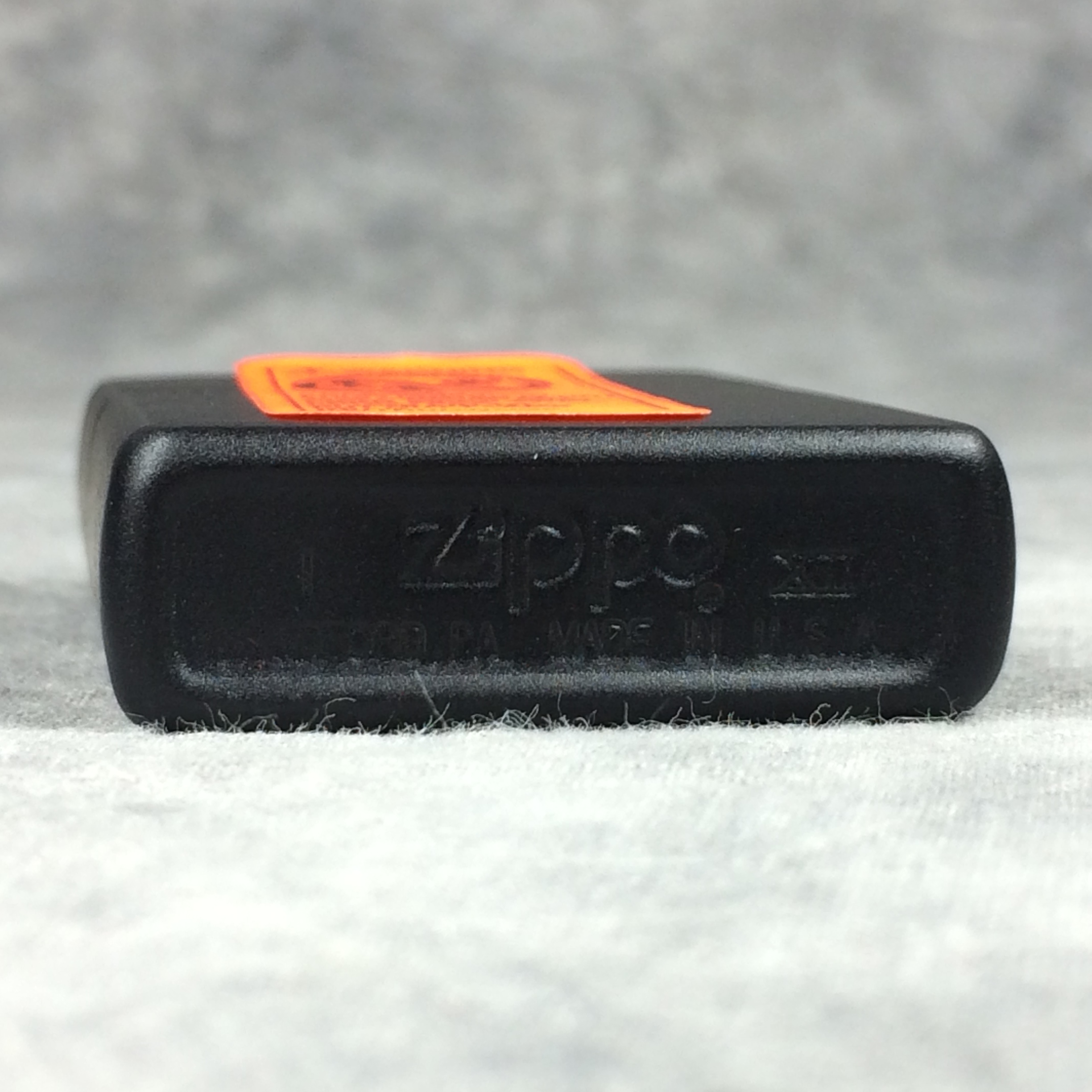 October 28, 2025 - ZIPPO Lighter, 1996. Black matte finish with artwork on front. Standard size 1-7/16 inches wide by 2-1/4 inches high. Bottom of lighter reads: I Zippo XII Bradford, PA. Made in U.S.A. Sealed.
