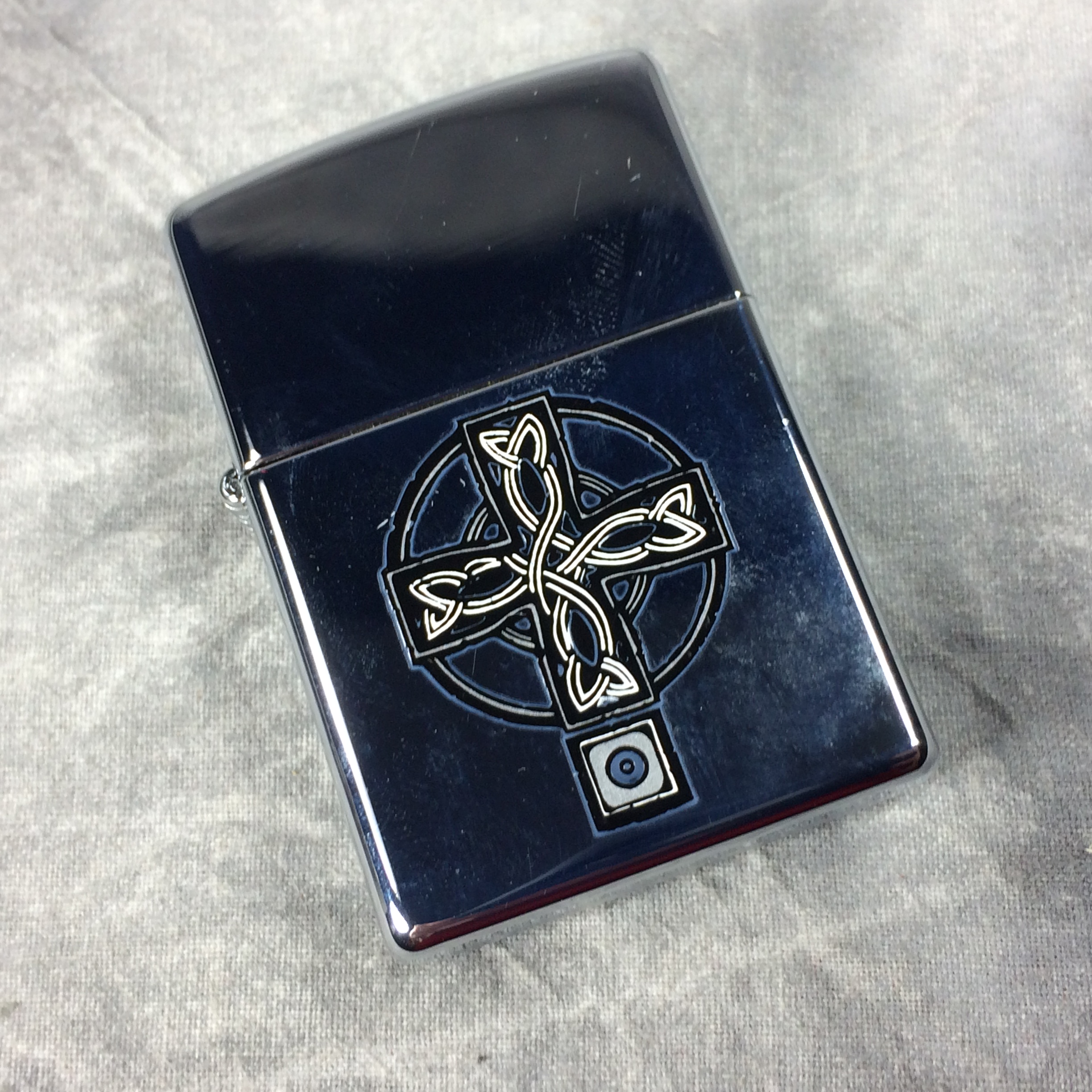 You have: ZIPPO CELTIC CROSS Polished Chrome Lighter (Zippo, 2005) SEALED