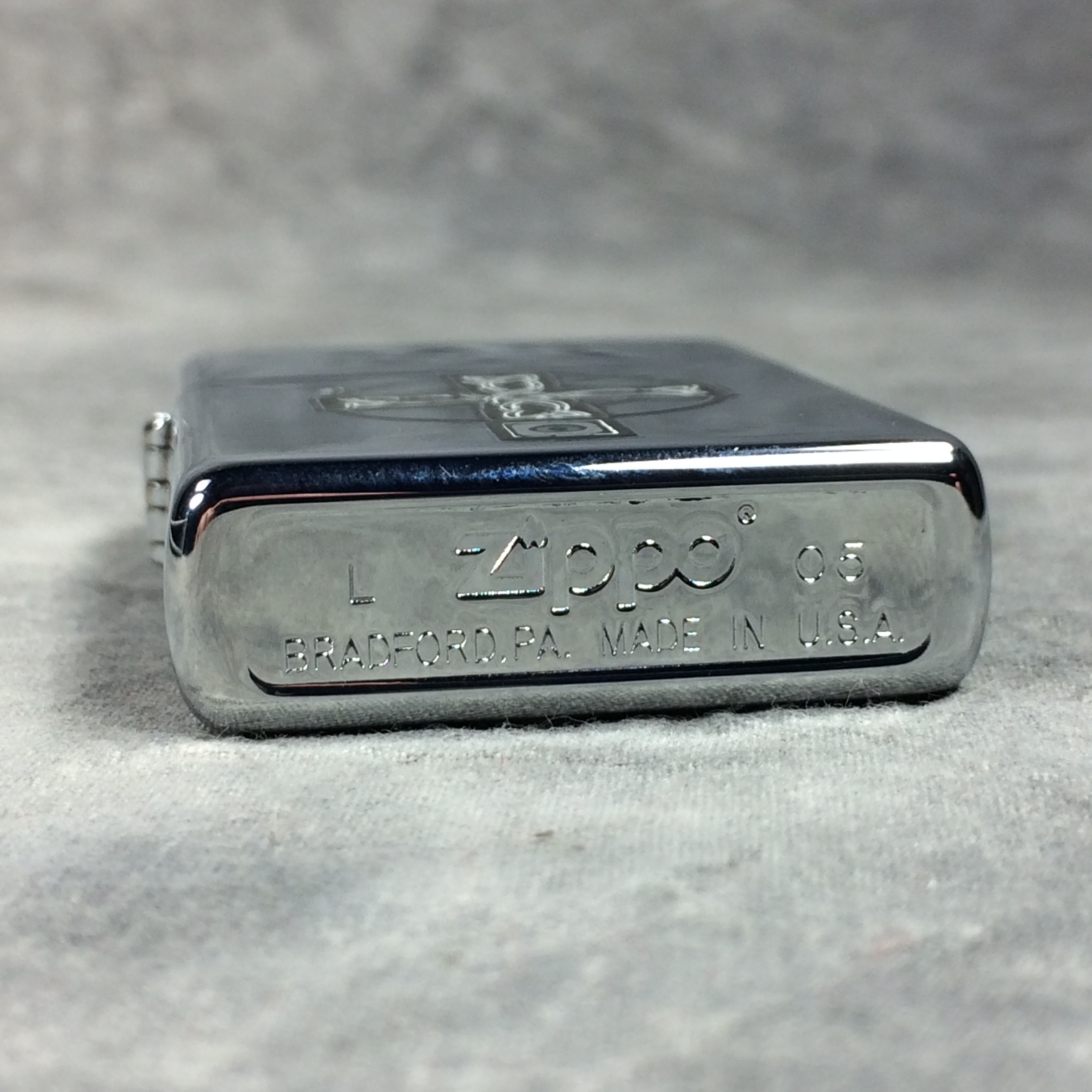 February 23, 2026 - ZIPPO Lighter, 2005. Polished Chrome Finish over Brass. Standard size 1-7/16 inches wide by 2-1/4 inches high. Bottom of lighter reads: L Zippo 05 Bradford, PA. Made in U.S.A. Sealed.